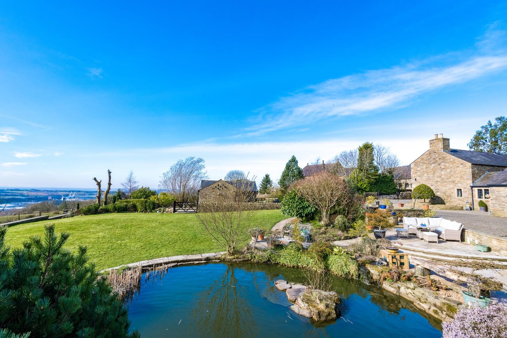 The Grounds - With gardens to make you as proud as a peacock this wonderful five-acre setting has ample areas to enjoy, all surrounded by a mature woodland backdrop. As you sit upon your lounging furniture on the patio and light up the firepit BBQ, cast your eyes down the lawn as it blurs into the distant countryside views, the reservoir glistening royal blue as you try to spot Jodrell Bank on a clear day.