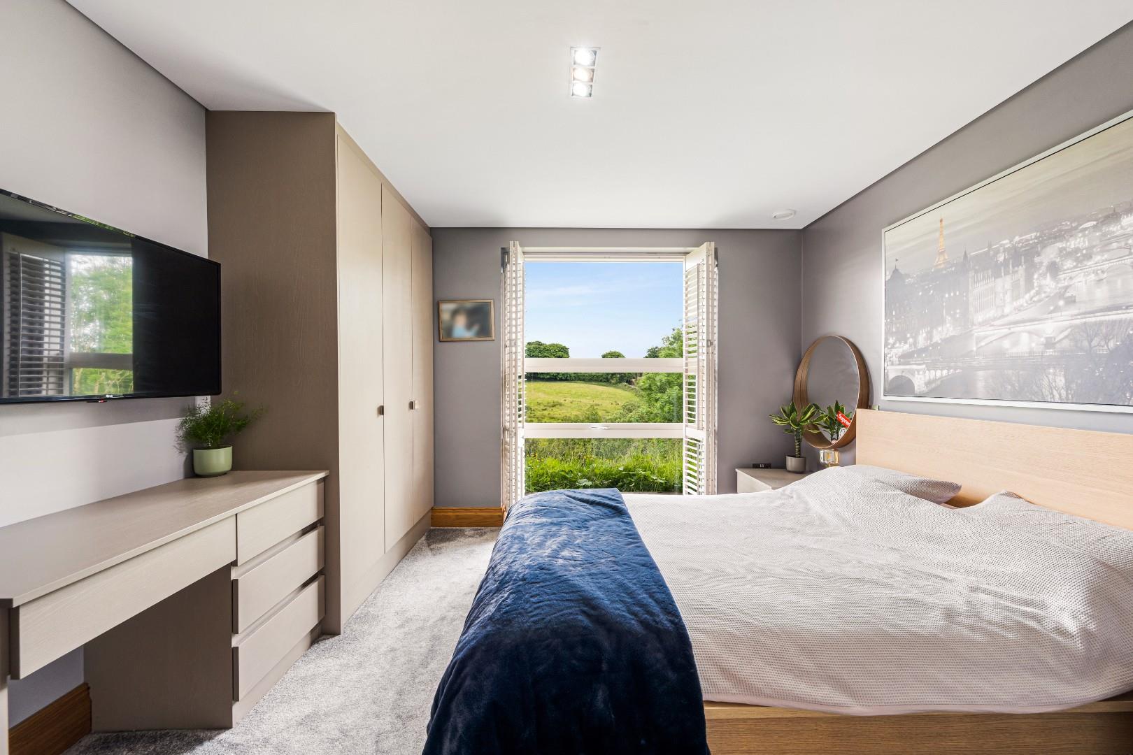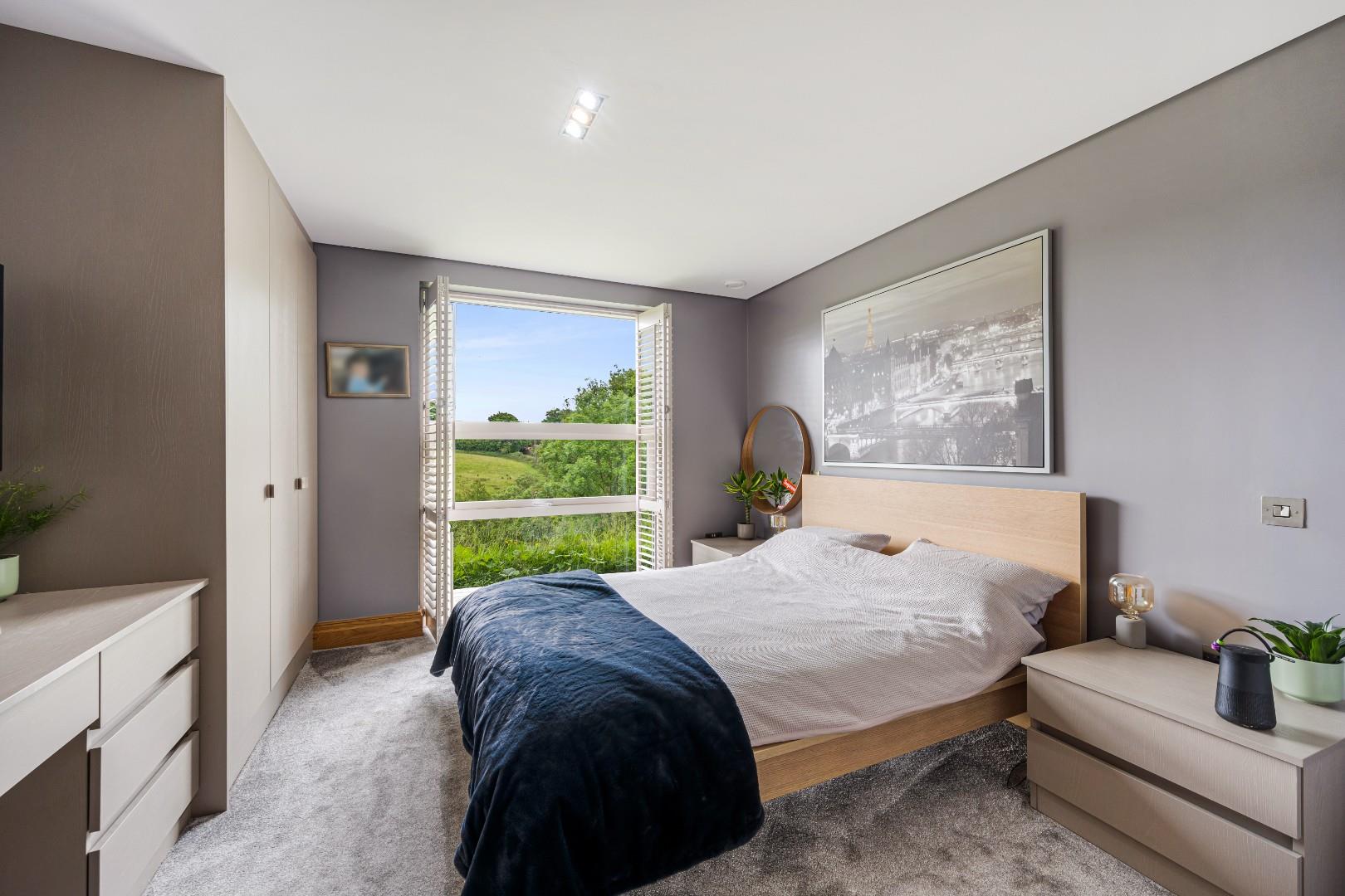 The master bedroom has direct access onto the external elevated decking and the floor to ceiling windows give yet more lovely green views you can wake up to every morning! As well as its large footprint, the master comes complete with a dressing room featuring fitted wardrobes and a three-piece en-suite featuring modern tiling to the floor and walls, a large walk-in shower with feature tiled surrounds, Duravit feature wash basin with integral storage and WC.