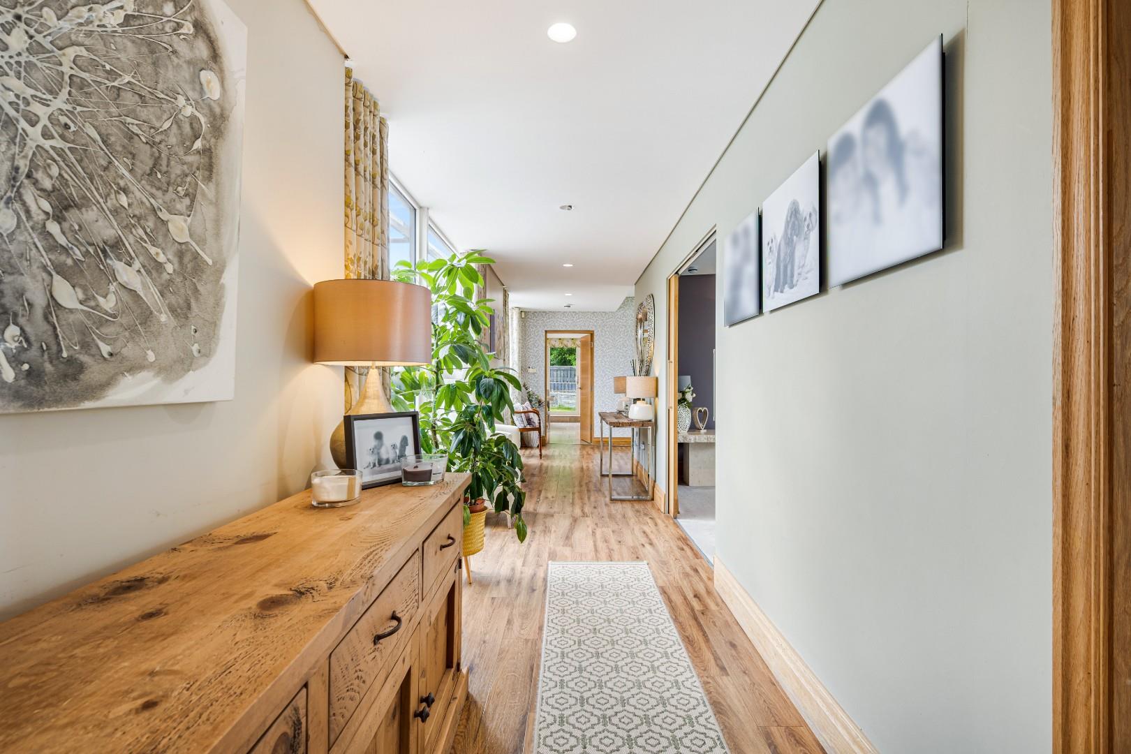 The bedrooms are connected with a central corridor that also provides access to a storage room and the main bathroom which includes another three-piece shower suite with feature wash basin and walk-in shower.