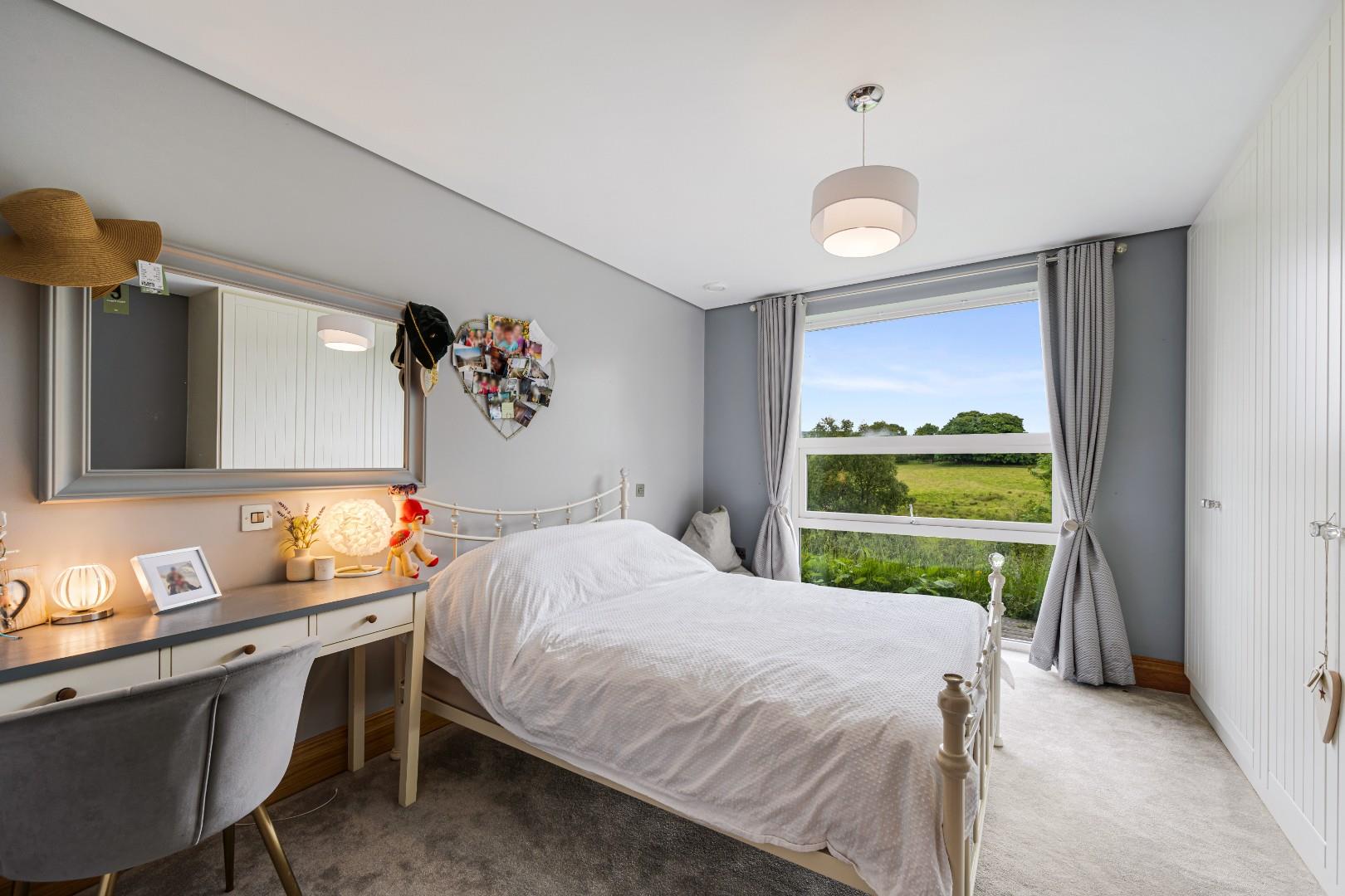 This standout property sits on an equally standout plot with remarkable views of the serene rural surrounds. The plot itself is split over two levels, with the upper level accommodating the house, private drive, and landscaped gardens to front and rear, while the lower level is an additional green space suitable for a variety of uses.