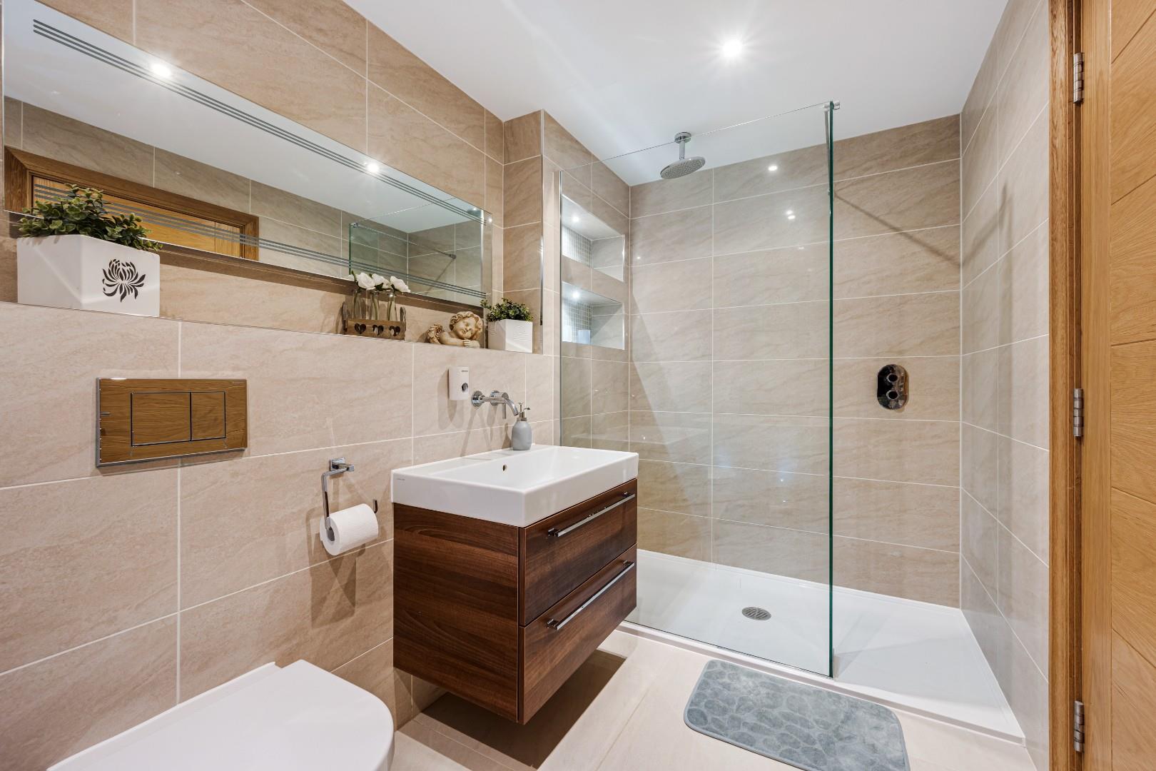 Each of the three other bedrooms are all well proportioned doubles complete with their own contemporary fitted furniture. The second bedroom of the four is somewhat larger than the third and fourth, with a large en-suite too, including a freestanding feature CP Hart bathtub on an elevated platform with inset floor lighting, walk-in shower, vanity basin with integral storage and WC.