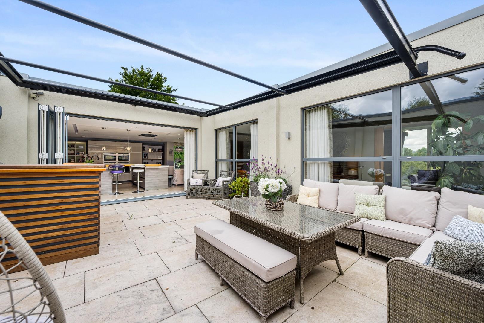 The courtyard area off the kitchen is a tranquil space where you can chill outside under the summer sun in complete privacy, and if it gets too hot, there's even a fitted awning to create some shade! The back garden benefits from those expansive views owing to its elevated position, and is currently landscaped with a patio and lawn, though would benefit from relandscaping to create a truly impressive terrace with views to match. Whether it's relaxing with loved ones or enjoying a BBQ with family and friends, you have plenty of choice for outside space.