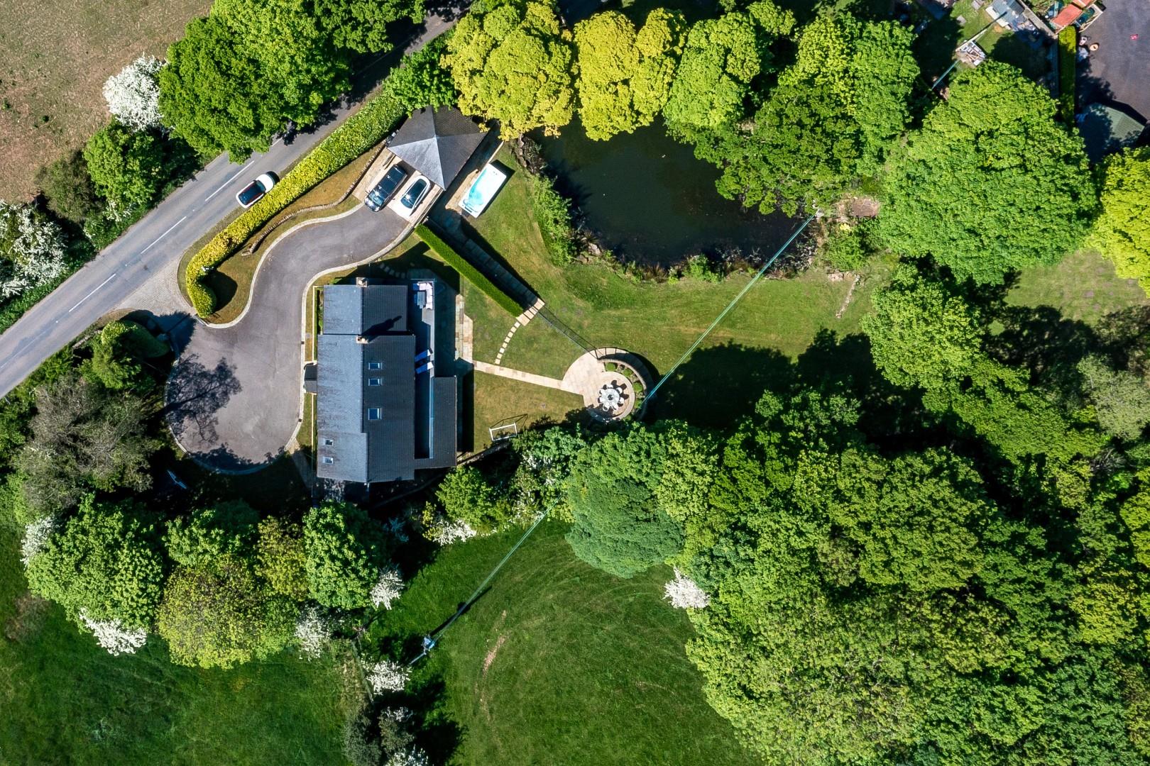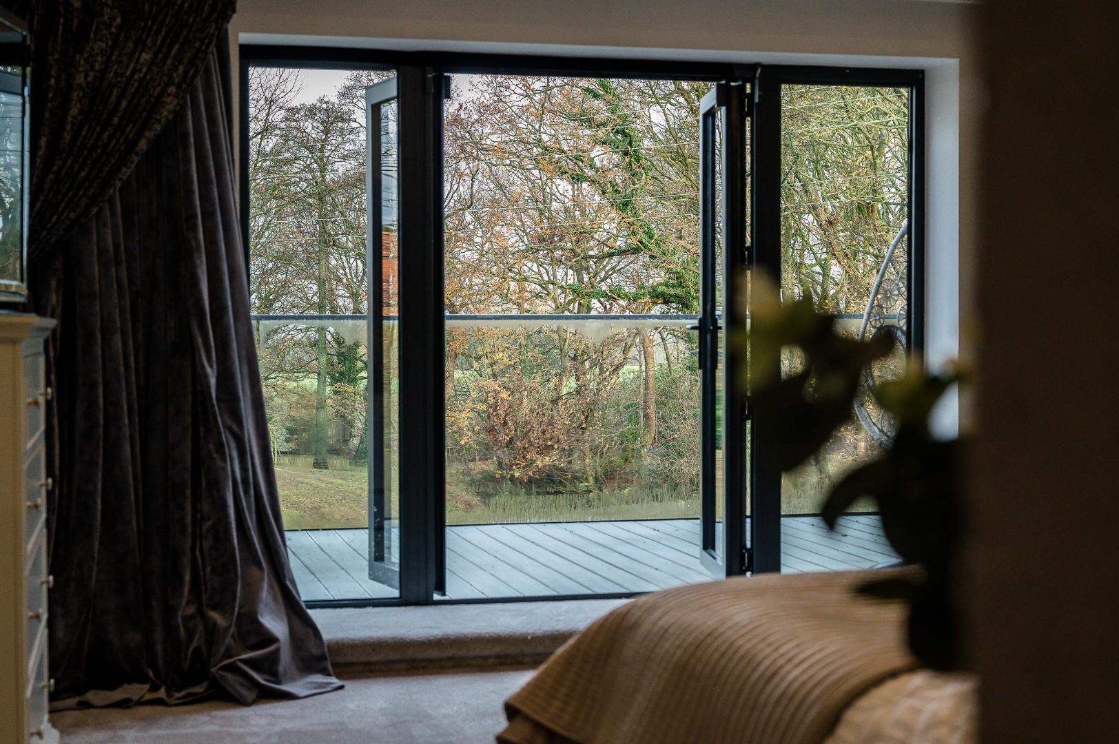 Outbuildings & Outside Space - An advantage of this already spectacular home is the versatile two-storey outbuilding, composed of the double garage with electric door which is accessed from the driveway, and below is a huge room that's currently configured as a fully equipped gym. The gym is incredibly private despite its wealth of floor to ceiling windows overlooking the natural garden lake, and glass doors open onto a lakeside terrace with swim spa and hot tub (available by separate negotiation). If not used as a gym, this versatile space could suit a variety of uses, subject to regulations. A games room with snooker table and bar? Self-contained annex accommodation for family? Or perhaps separated as an Airbnb for extra income? The choice is yours! Hidden behind this outbuilding is a large log store.