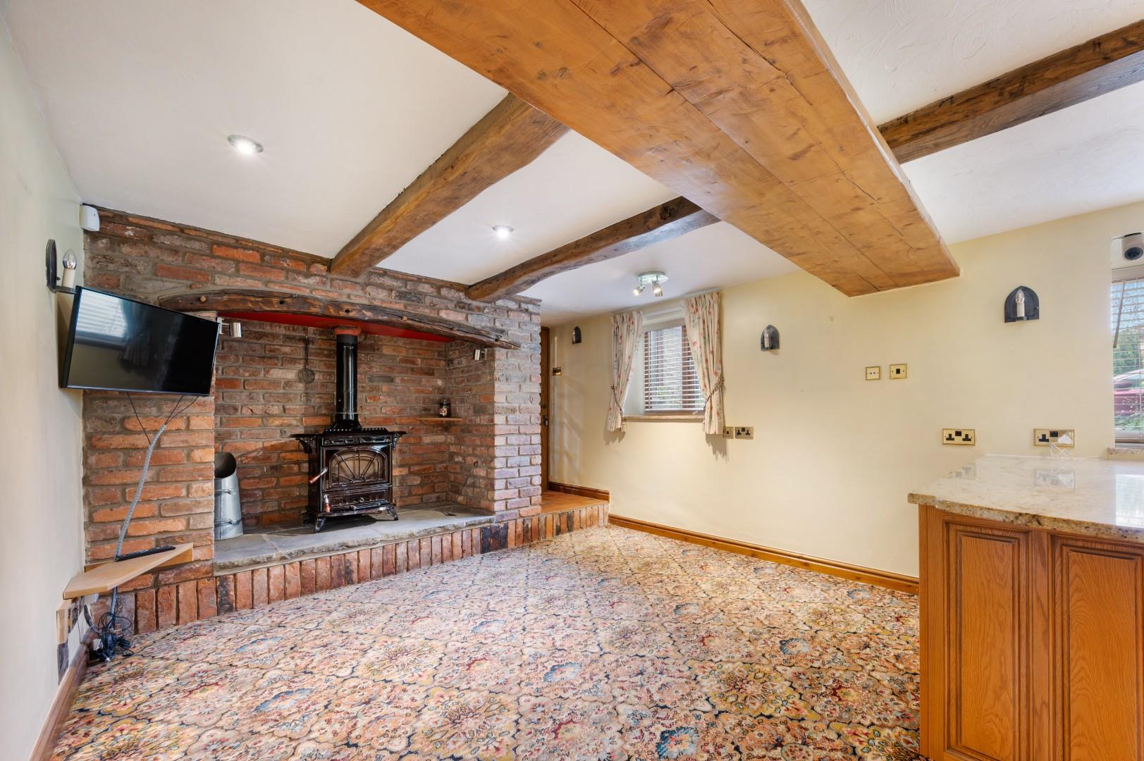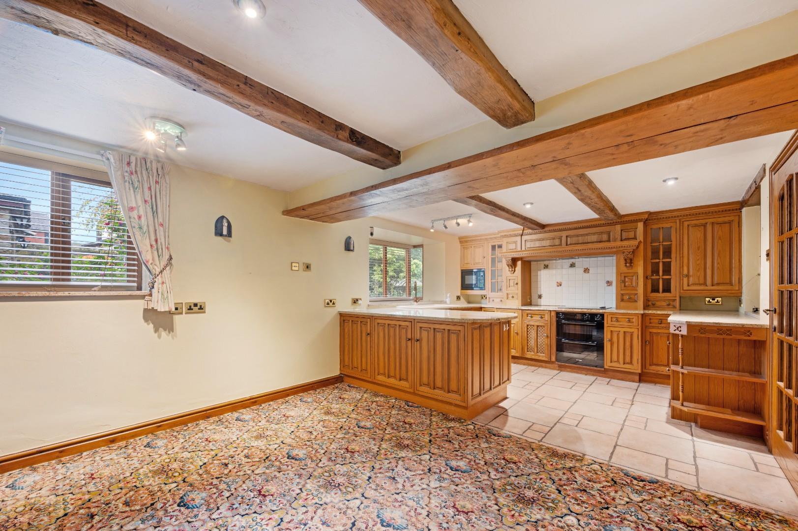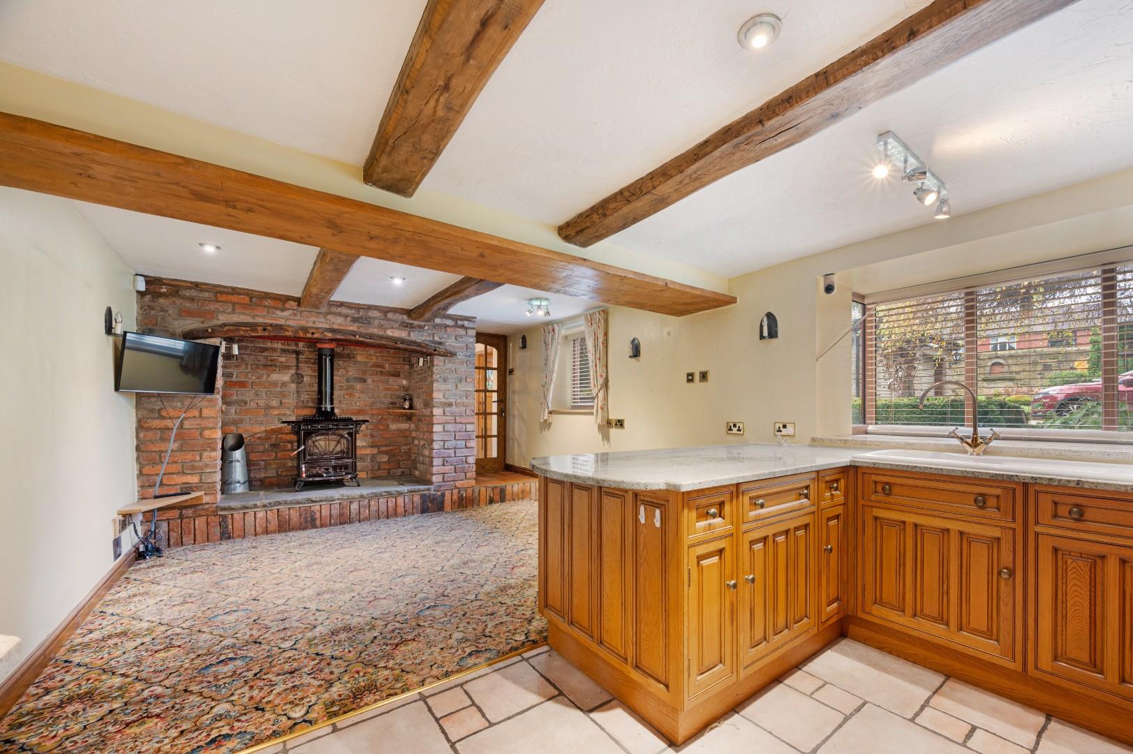 A recurring theme at this property is the great amount of space and flexibility it offers - as well as two large reception rooms there's two kitchens as well! One of them is open plan with what could be a breakfast room or kitchen-diner, featuring another impressive fireplace with exposed brick and a large feature log burner which adds to the countryside cottage feel. This first kitchen features a beautiful granite worktop which complements the beautiful oak-style cabinetry, housing a range of appliances including a Bosch oven and grill, Belling four-plate hob and hidden extractor hood, Neff dishwasher, microwave and fridge, plus a traditional white sink with drainer and feature mixer tap.