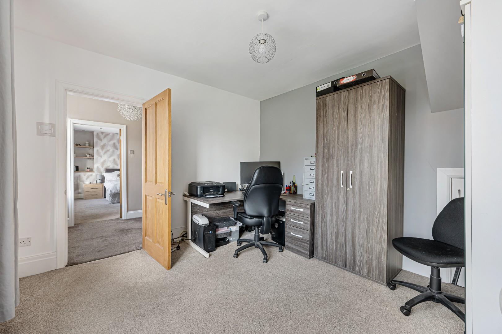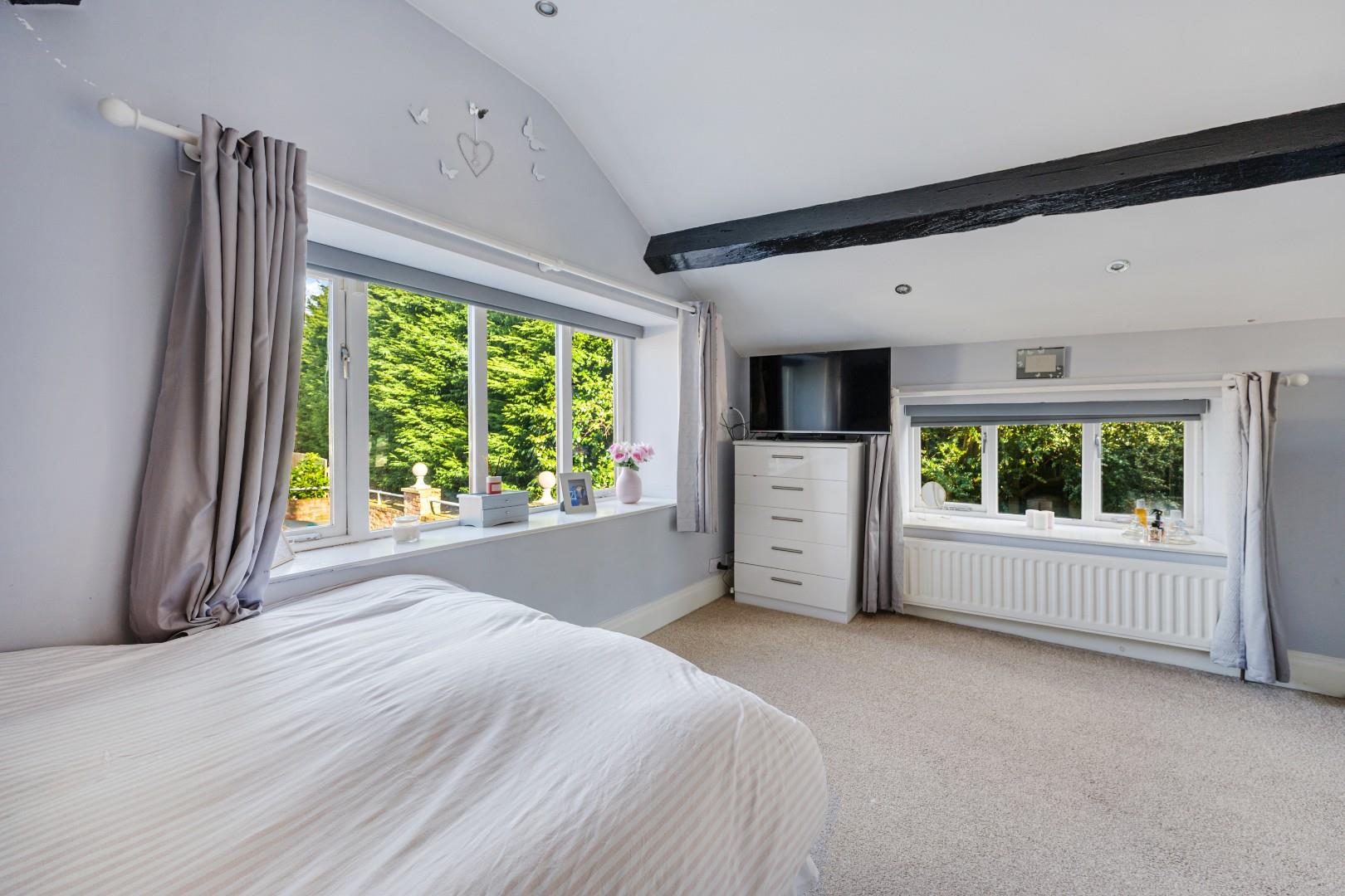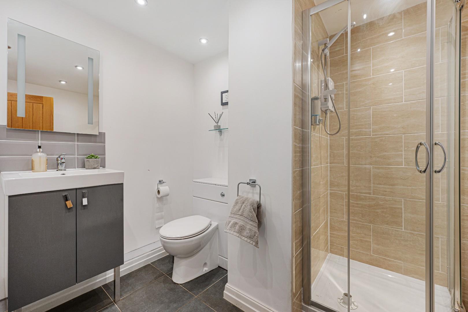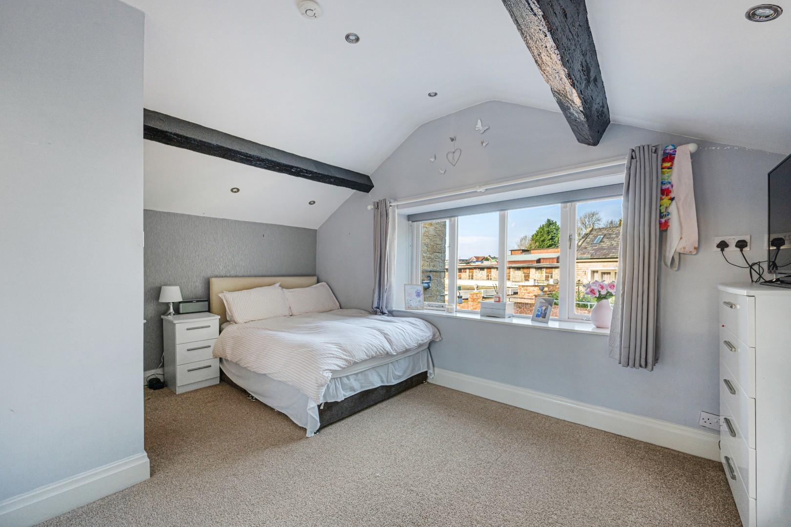The master suite occupies the entire second floor, with more sloped ceilings an multiple Velux windows which pour in natural light while adding to the unique character. In addition to the double bedroom, the master suite includes a dressing area with modern fitted storage, and a three-piece en-suite, comprising bath with shower, and a vanity basin unit with integral storage and WC.