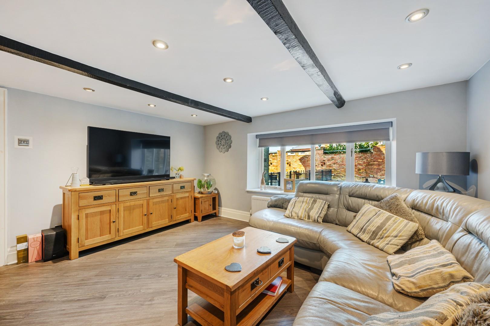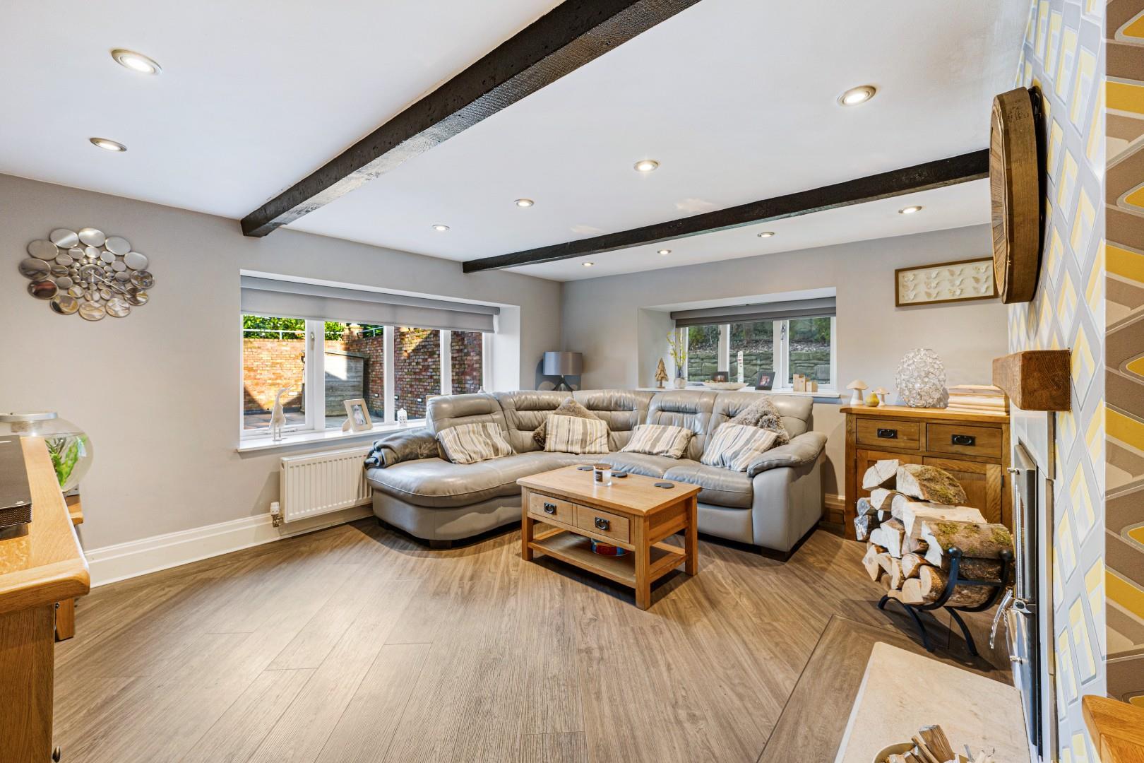 As well as the kitchen and dining room which is arguably the heart of the home, there are two spacious lounges which again add to the practicality and appeal of this property as a fantastic family home with plenty of space for everyone. Within the front lounge, a smart media wall takes centre stage, featuring a TV point, shelving with inset lighting, and a gas powered log-effect fire with glass front. The second lounge, or snug, is located at the end of the entrance hall to the rear of the home - the beam work overhead gives a nod to the period character, the contemporary log burner set within the chimney breast continues the cosy feel.