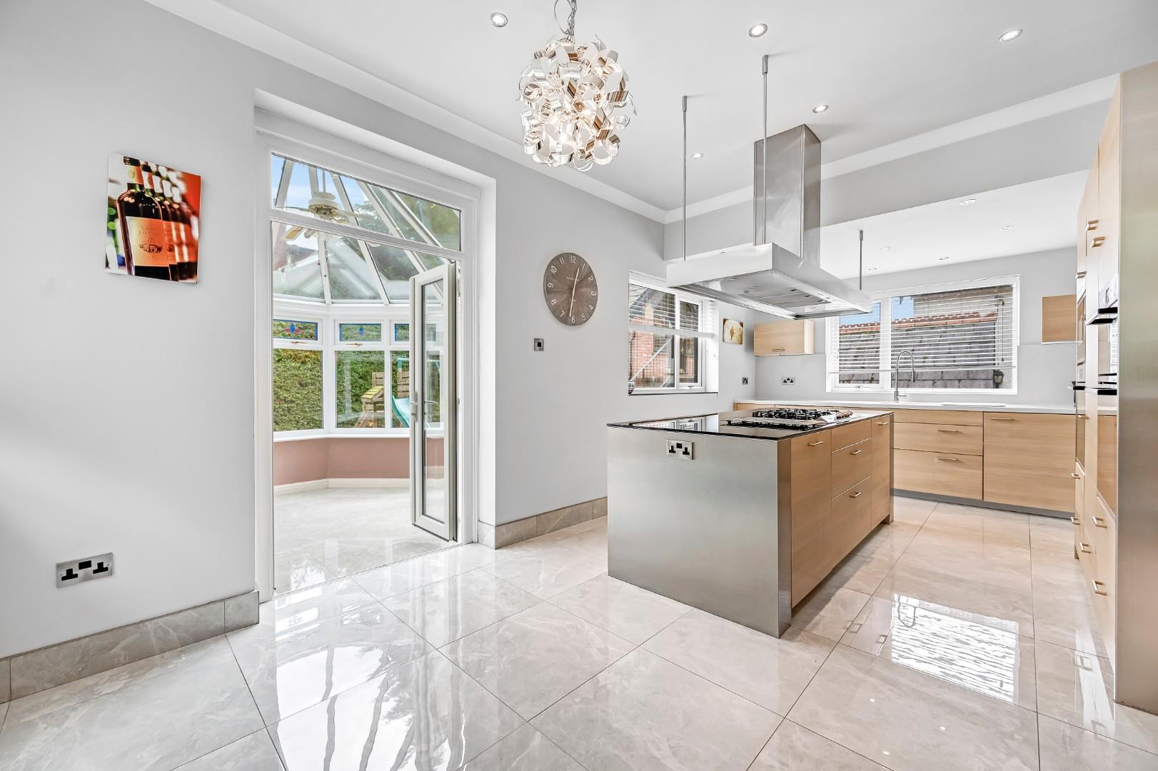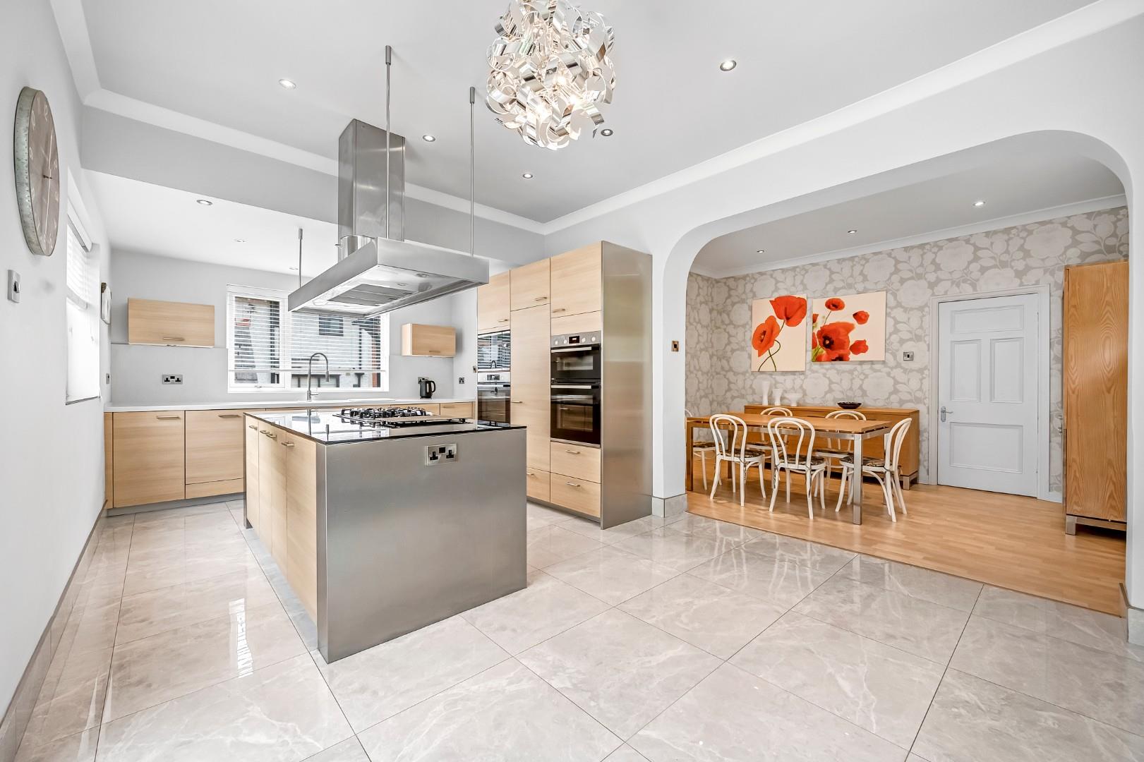 The third reception room is situated off the kitchen in an open aspect layout making it highly suitable for a multipurpose family room or day lounge where cooking, socialising and dining blend seamlessly. Next to the family room is the open plan kitchen with ample space for a breakfast dining area too, giving even further space to meet the demands of modern family life.