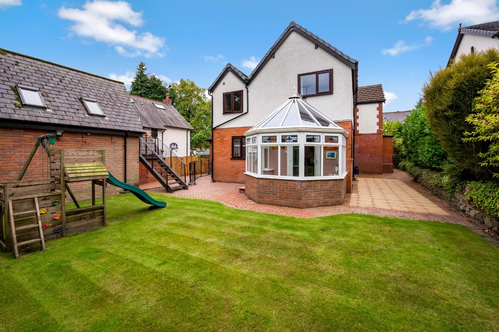 A brief overview of the accommodation includes an entrance porch and substantial central hallway, three reception rooms, an open plan kitchen and breakfast room, conservatory, utility, downstairs WC, five bedrooms with an en-suite to the master and a family bathroom. The main house is accompanied by a secondary building which currently comprises a detached double garage situated beneath a large room providing further accommodation, suitable for conversion or an abundance of extra storage space. Externally the property boasts a long drive with private gardens to both the front and rear.