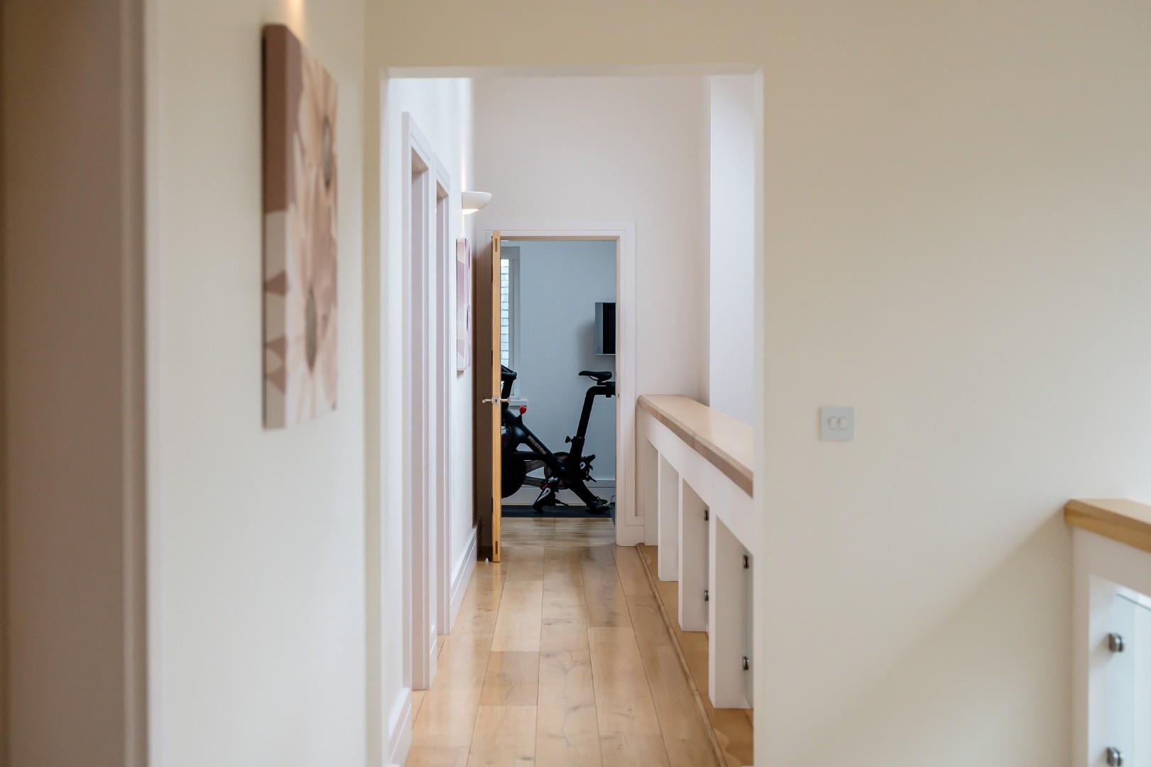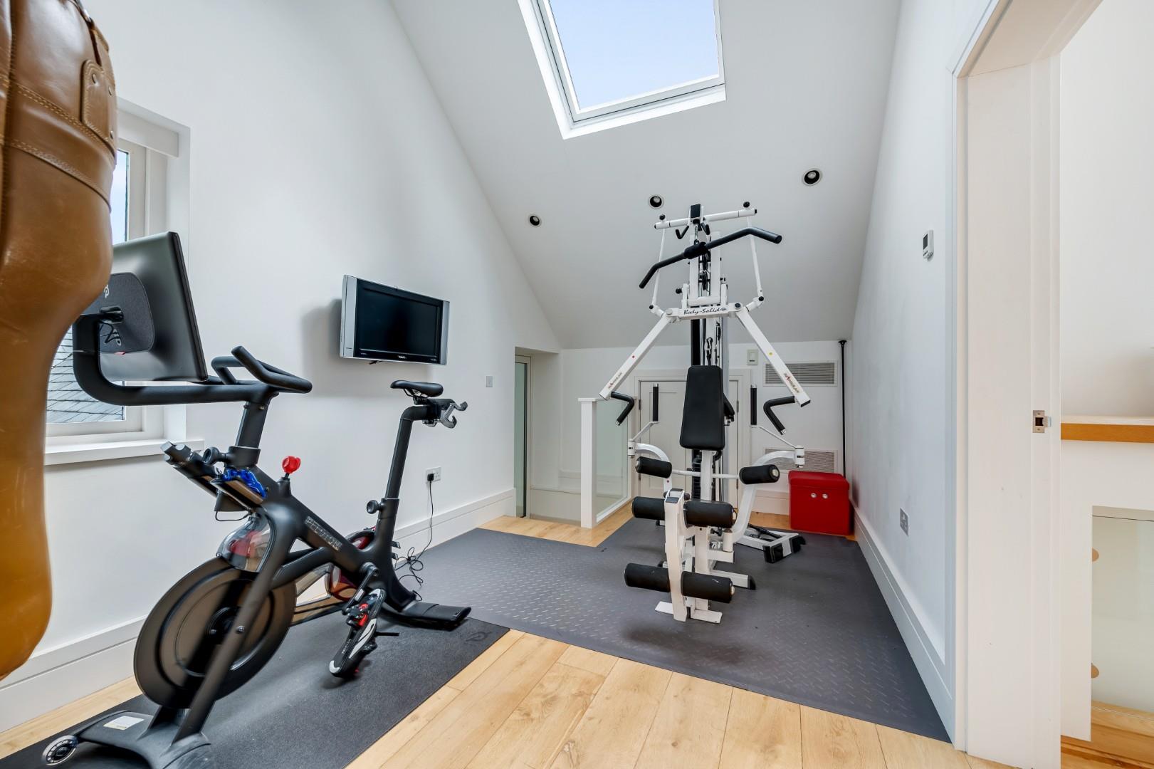 Accessed via a covered walkway from the house and also from the first floor via a spiral staircase, it's a true private spa experience. A home gym links the gallery landing to the pool hall - equally suited to yoga or conversion into a wellness suite or sauna.