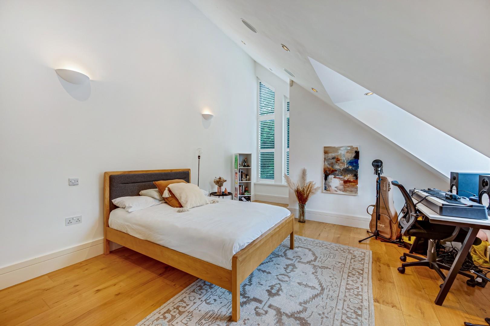 Adjoining the kitchen is a peaceful day lounge - currently a relaxed sitting room with more French doors onto the garden. It's the perfect spot for morning coffee, a children's playroom, or a snug for reading and relaxation.