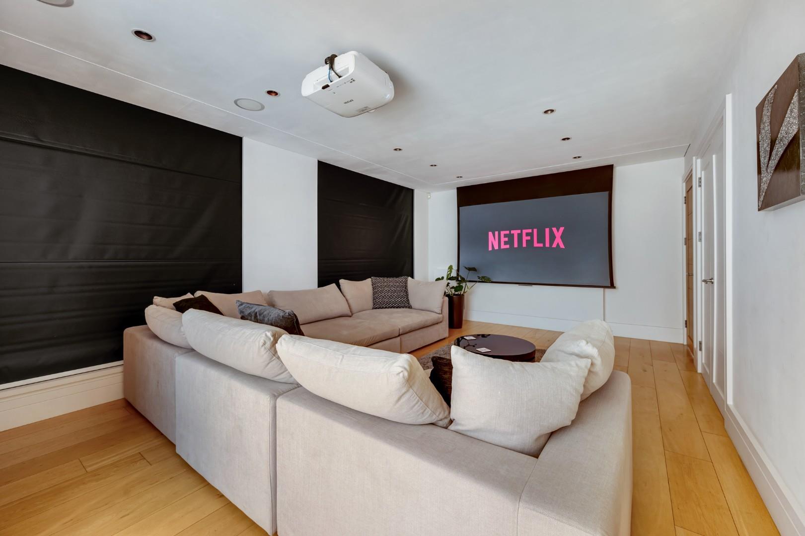 Next door, the media room offers another luxurious lounge experience, with floor-to-ceiling windows by day and a full cinema set-up by night - blackout blinds, projector screen, and surround sound at the touch of a button. It's ideal as a cinema, games room or teenage retreat.