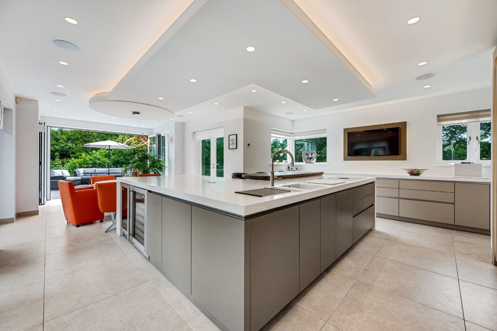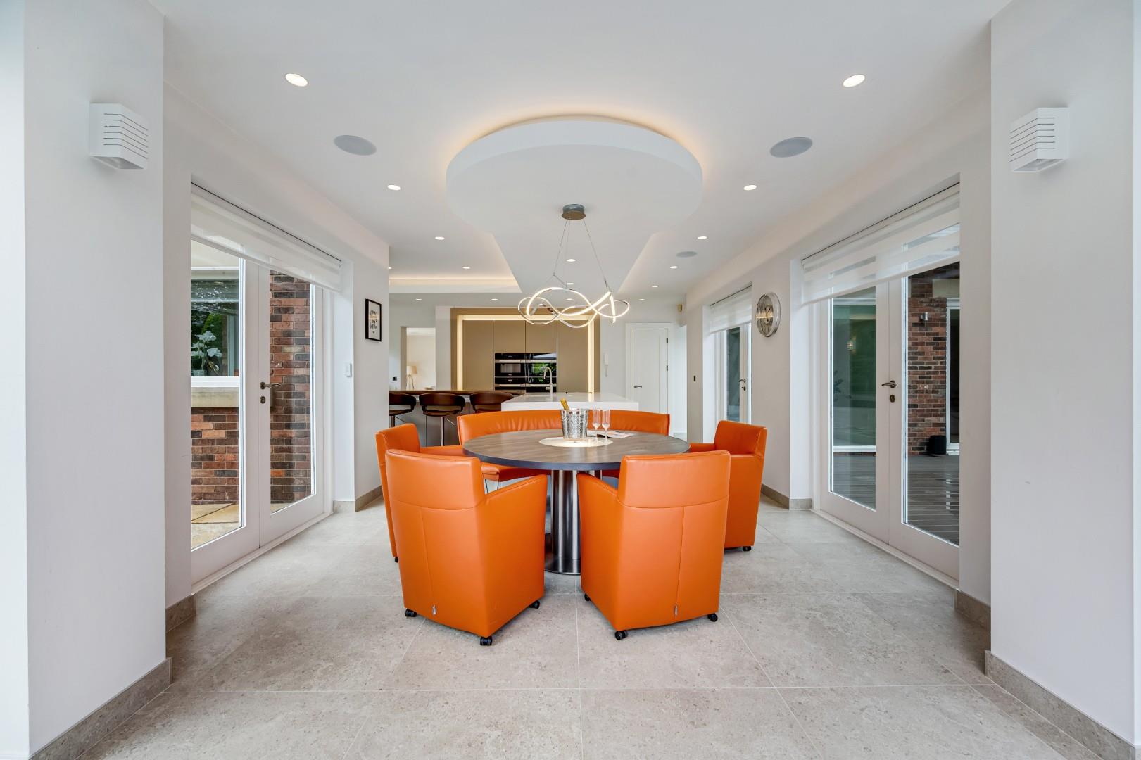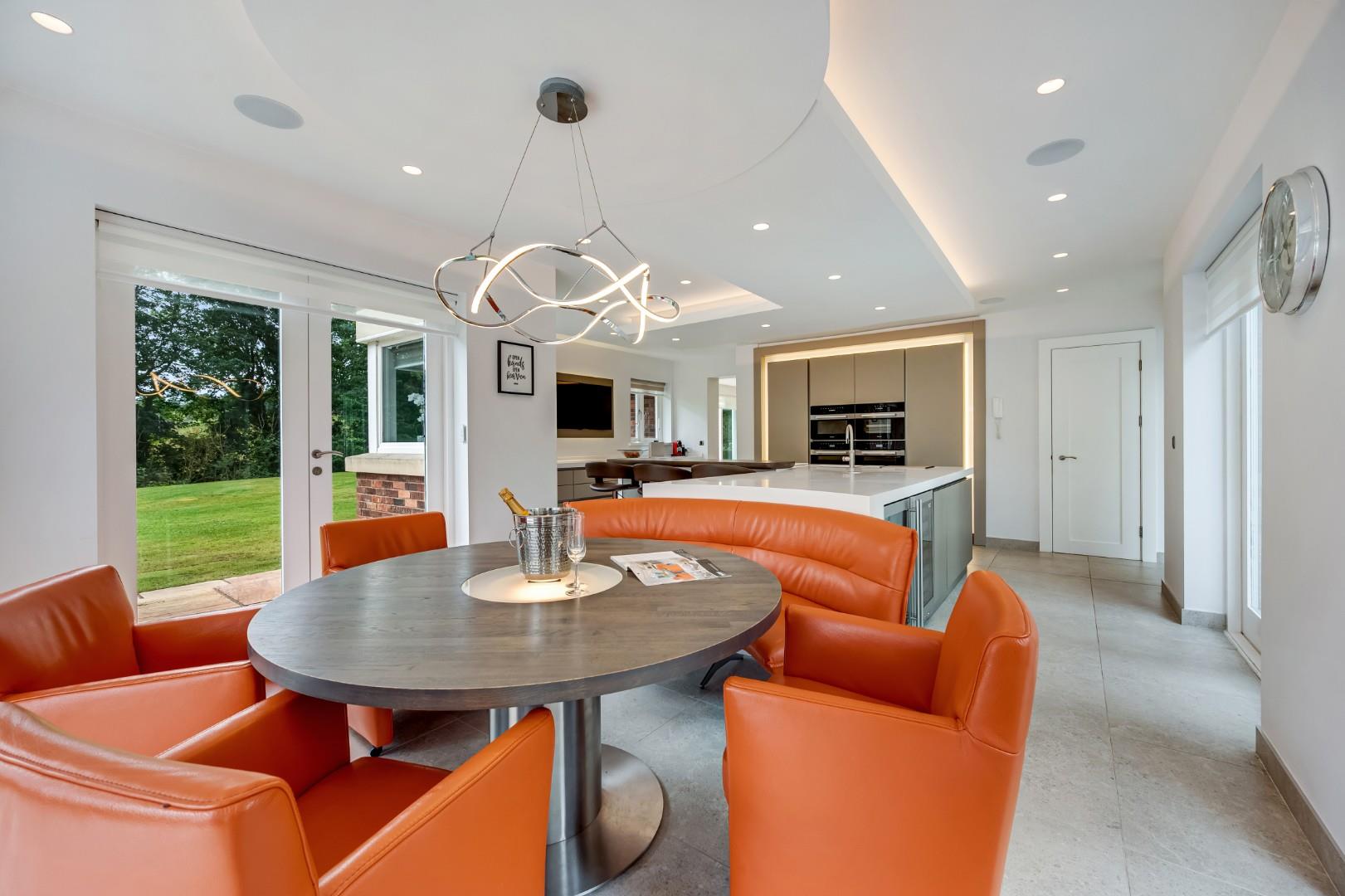 At the centre is an enormous island with a contrasting dark oak breakfast bar - a stunning and practical hub for everyday family life, relaxed weekends, or entertaining. Whether it's Sunday brunch, evening drinks with friends, or summer barbecues spilling out onto the decking, this space is made to be enjoyed.