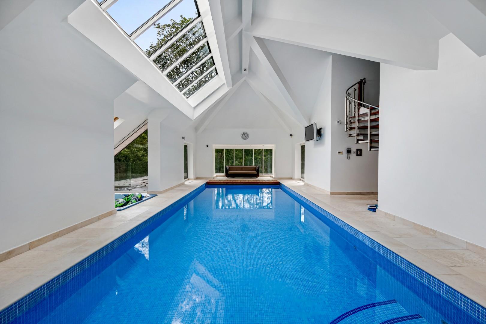 Leisure Facilities - The indoor swimming pool is a standout feature, newly refurbished and upgraded with a Calorex system in 2025. Enjoy year-round heated swimming with a swim-jet system for endless laps, plus a hot tub, skylights, floor-to-ceiling windows, and bifold doors connecting you back to the neighbouring nature.