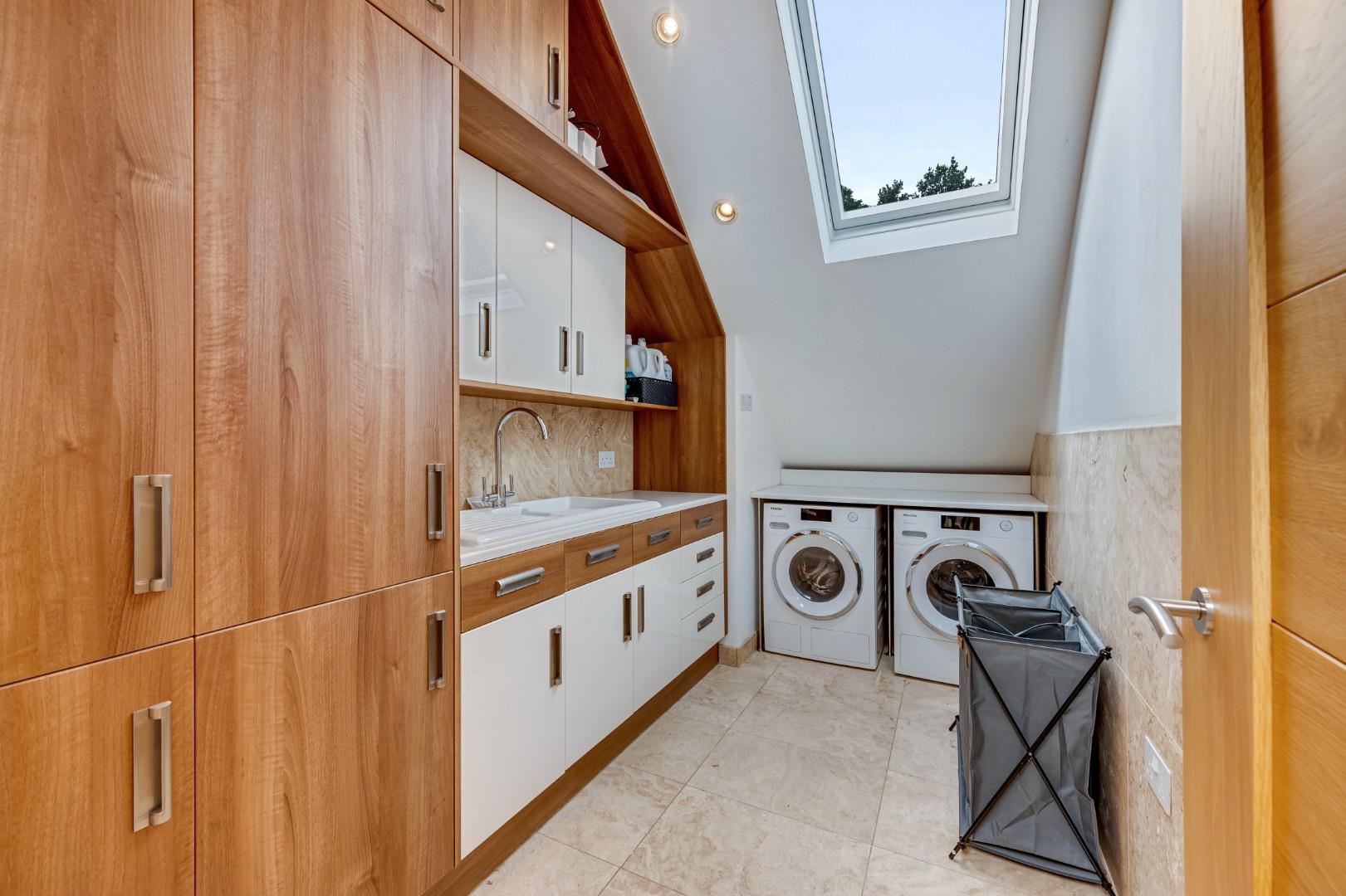 Practical Aspects - Functionality is fully considered, with a separate plant room, utility, guest WC, ample cloak storage, and a large, fully equipped home office designed for two people. A unique bonus is the first-floor laundry room - located near the bedrooms and complete with plumbing, sink, and generous storage.