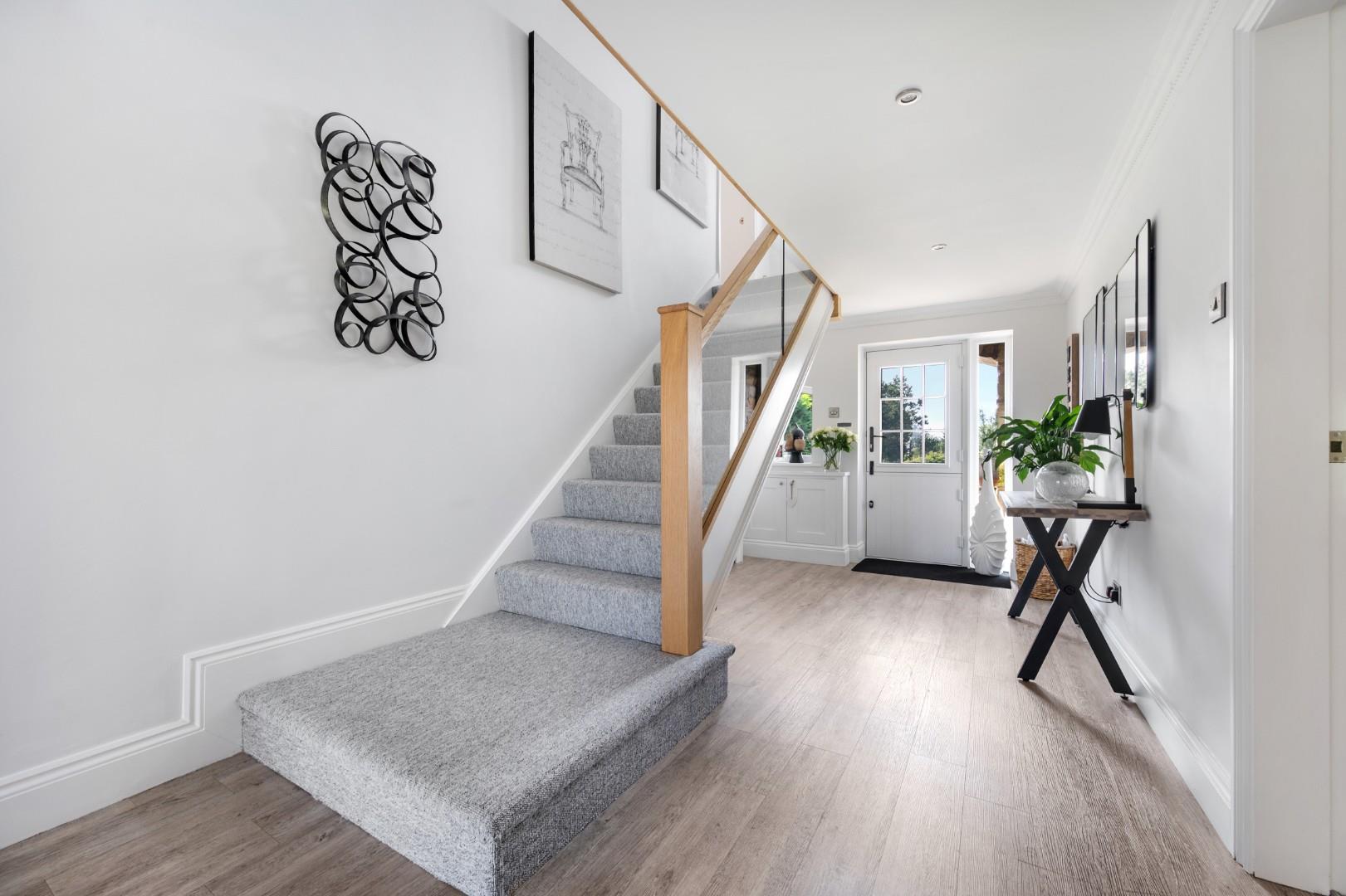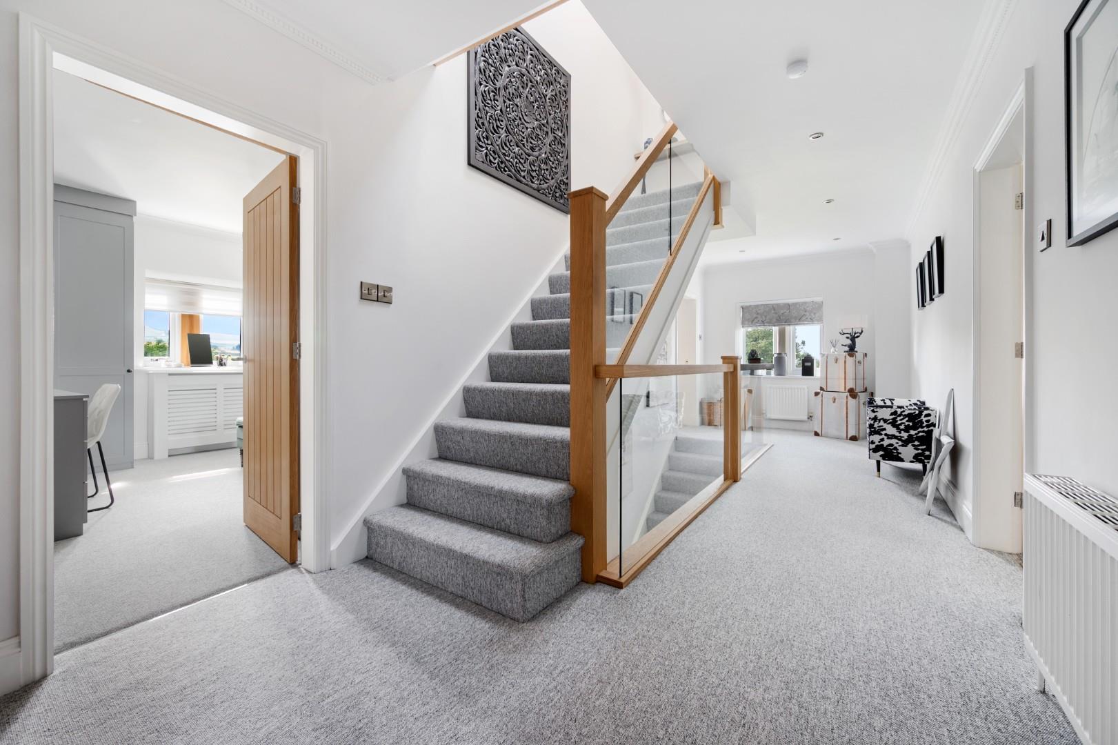 From the hallway, the grand oak and glass staircase invites you to the upper floors...