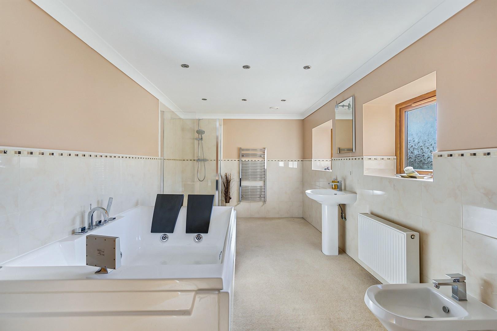 It's no surprise the family bathroom is of generous proportions. The main bathroom benefits from a large his and hers jacuzzi bath, walk-in feature shower with glass faade, wash basin and WC.