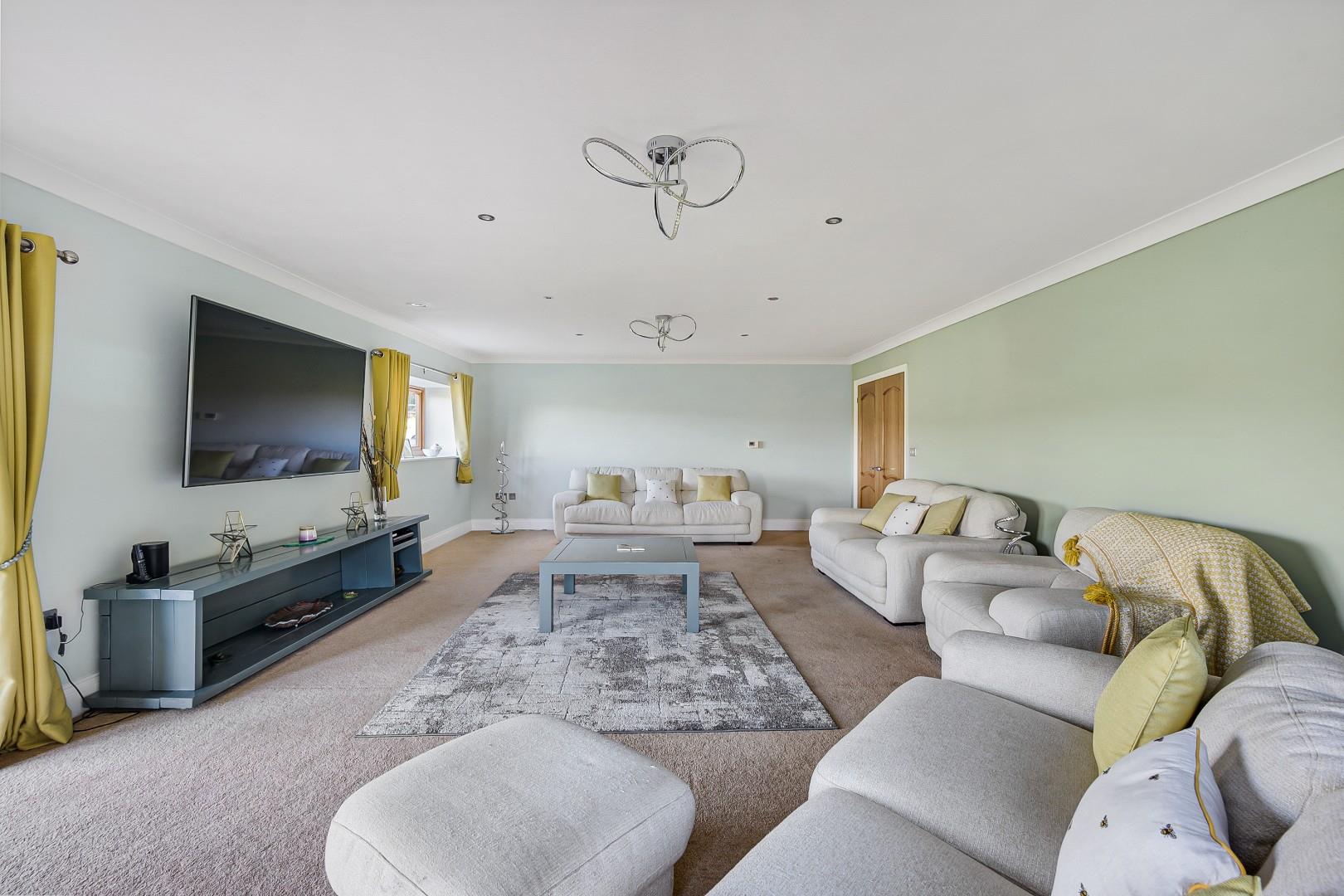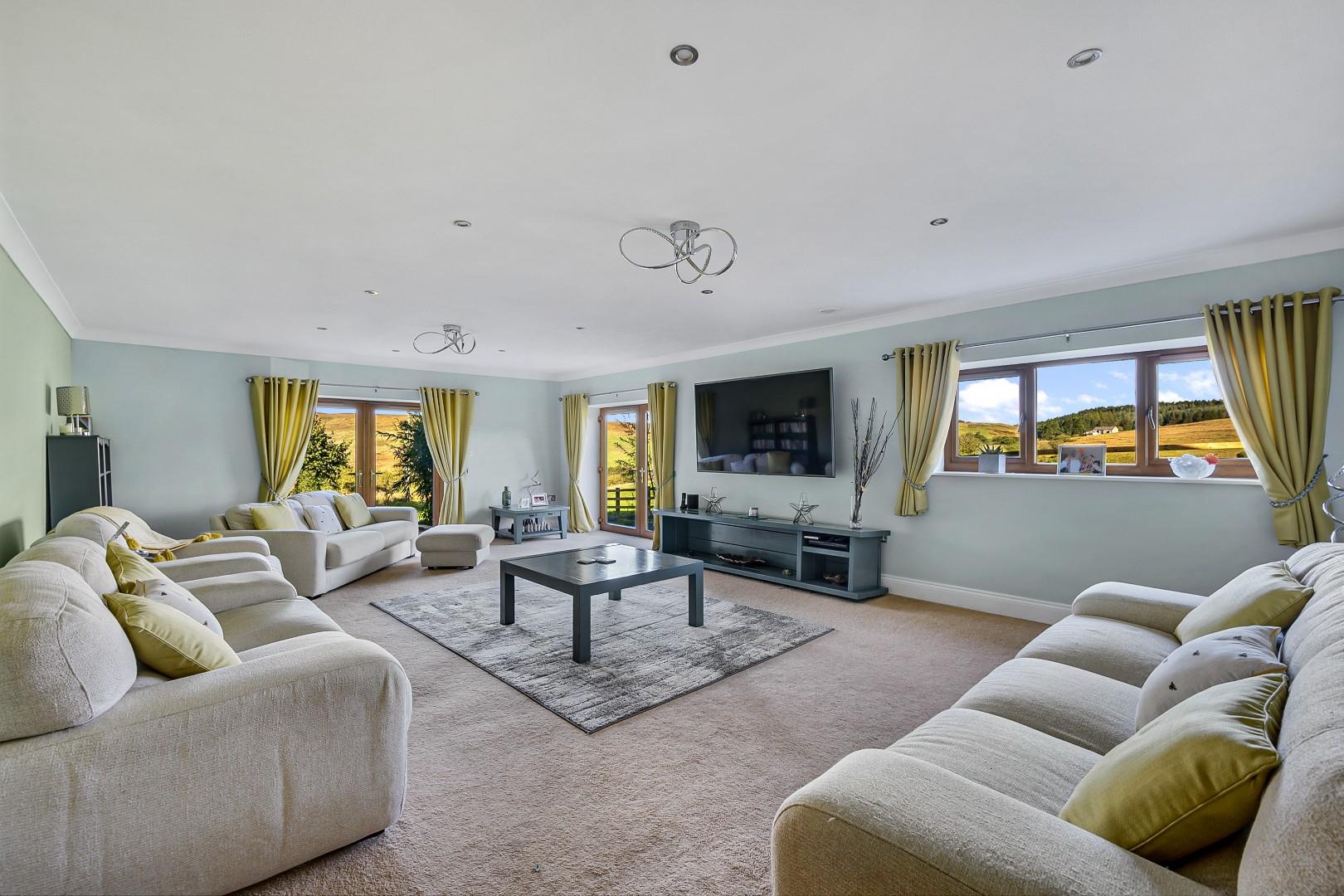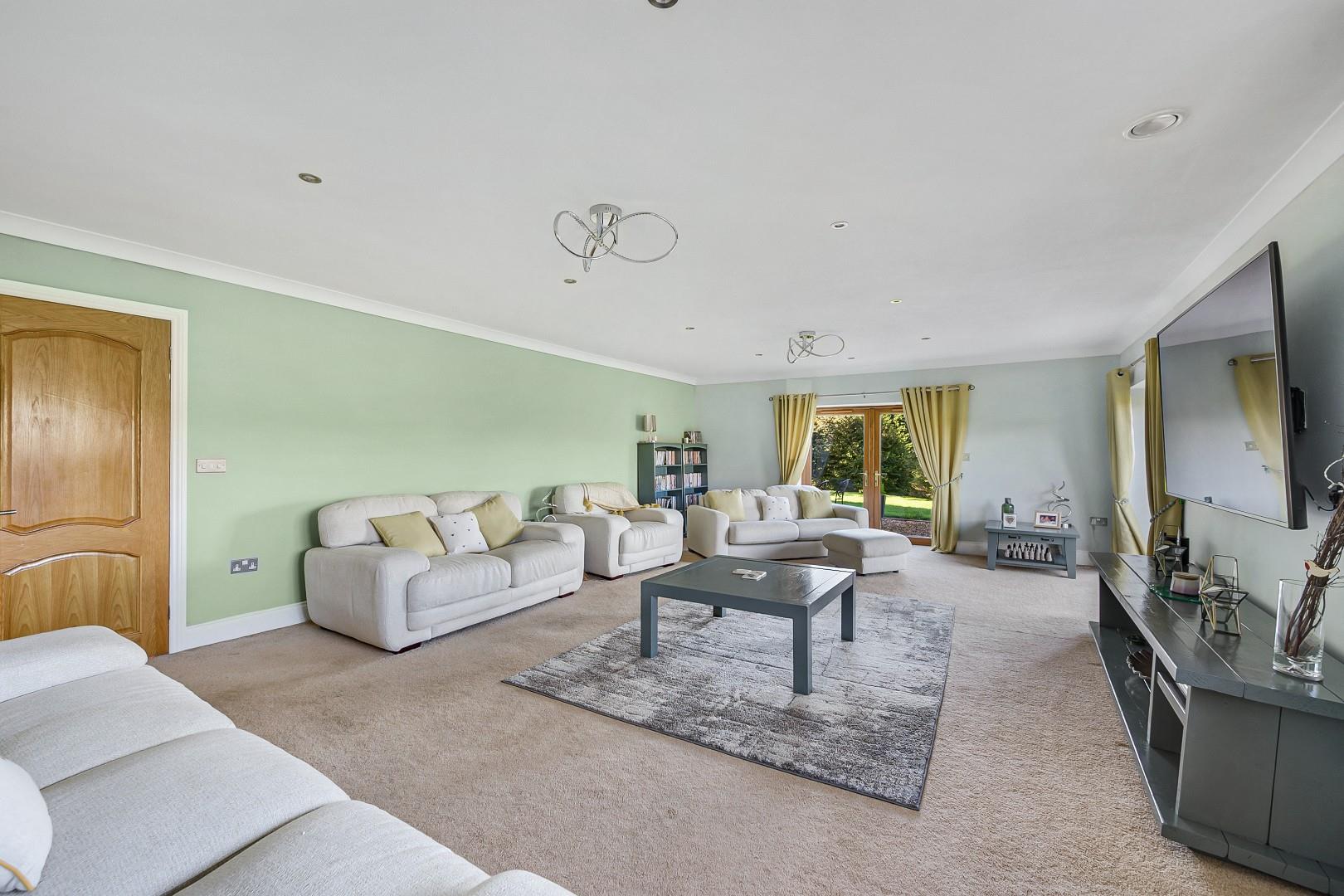 A pair of oak double doors open onto the main lounge which boasts a corner position with two sets of glass double doors encapsulating the tranquil countryside views. The dcor comprises soft, neutral, pastel colours which add to the calming country vibe, and the thick carpet felt underfoot ensures a homely touch.