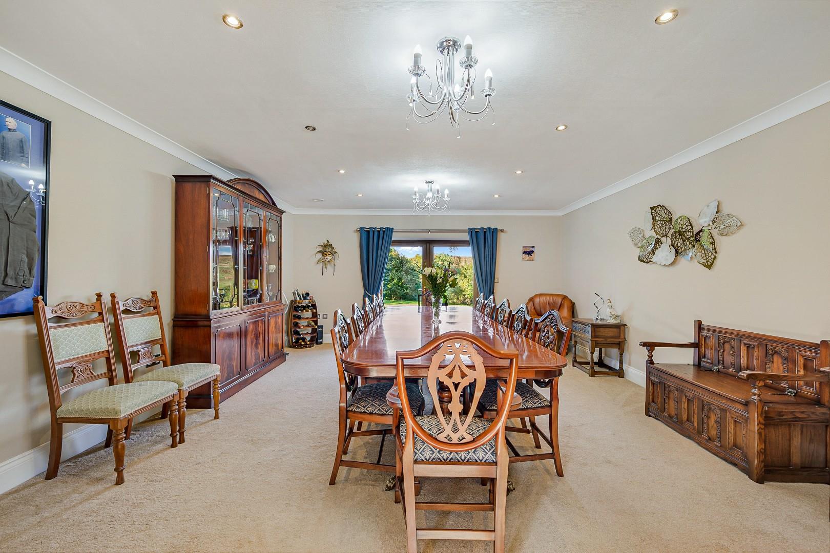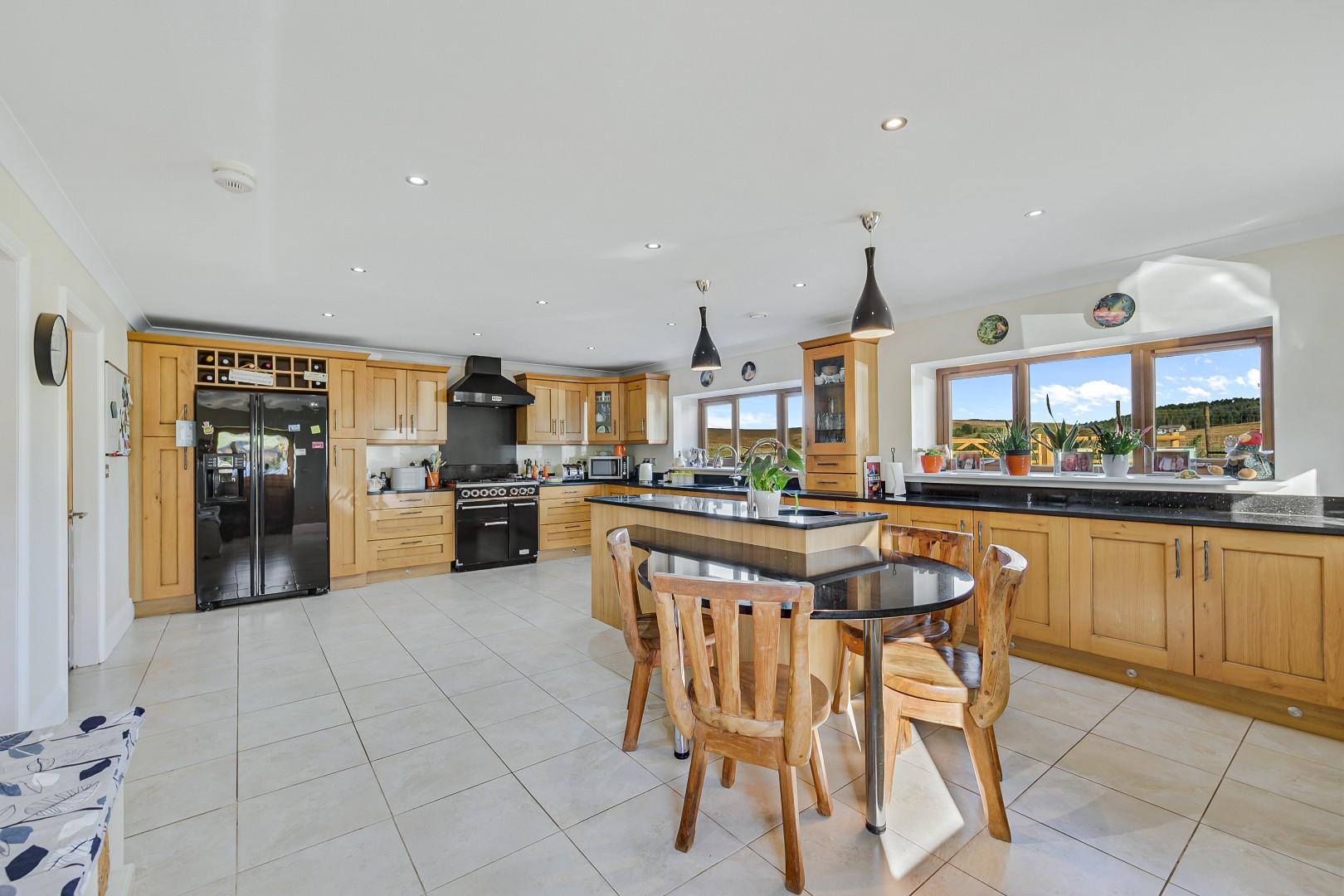 A Quintessential Country Kitchen - The residence boasts a quintessential country kitchen, its huge size is sure to be suitable for the largest of families. Solid oak kitchen cupboard doors add to the rustic feel, while the solid granite worktops add a touch of refinement and luxury in alignment with the modern build of the home. Integrated appliances include a Bosch dishwasher and two inset Franke sinks, plus an integral wine rack and oodles of storage space. A large Falcon cooker with complementary splashback and extractor hood sits within the units, its 5-plate gas hob, electric ovens and grill is a cook's best friend - a substantial top-quality feature for the chef in the family to cook up hearty meals! They say the kitchen is the heart of the home, and at Broadmeadow this is certainly true. The island with feature lighting and matching granite breakfast/informal dining table makes this a brilliant social hub. Whether it's cooking up a dinner party and enjoying a good bottle of wine with old friends, or enjoying a lazy Sunday breakfast after a brisk country stroll with the family, this kitchen is sure to be the cornerstone of many fond memories.
