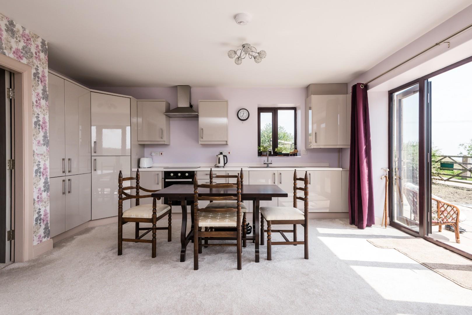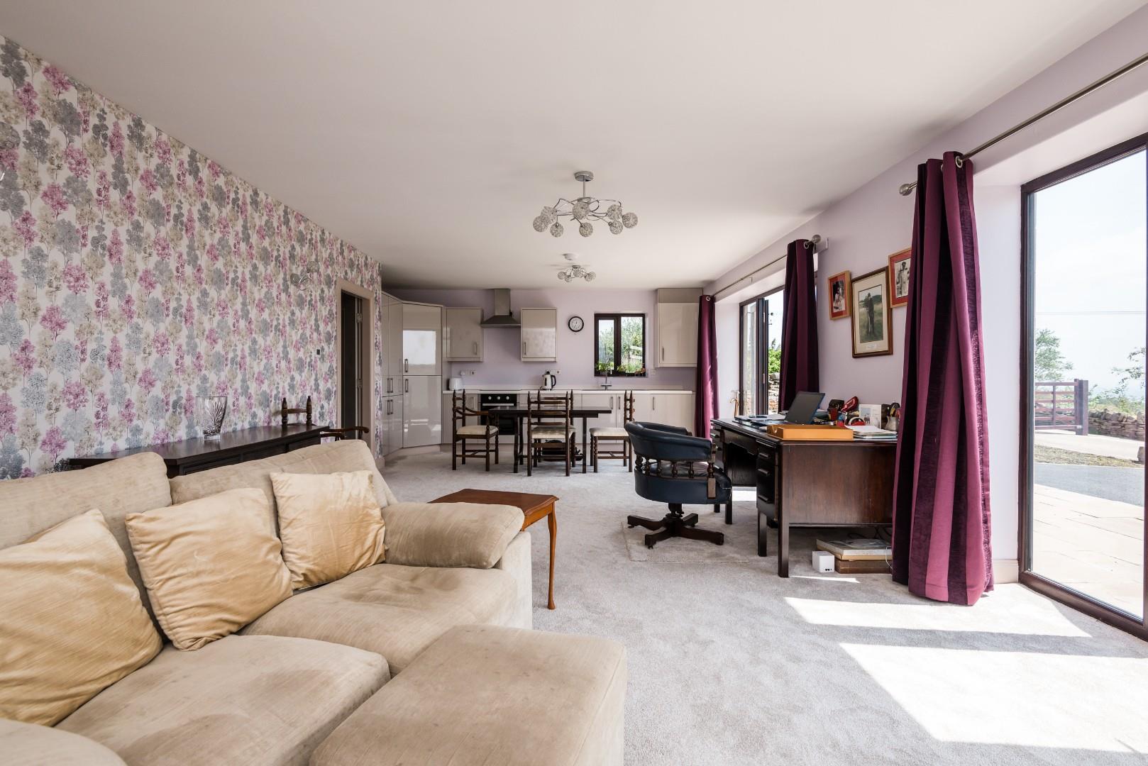 On the East side of the property sits an open plan kitchen and informal dining area/breakfast room, with the kitchen sitting on a lower level and your breakfast room on the upper. With an Aga, exposed stonework and views of the rolling green hills, this space is a true country kitchen! Off this space is also a back door, handy cloak room, and separate WC.