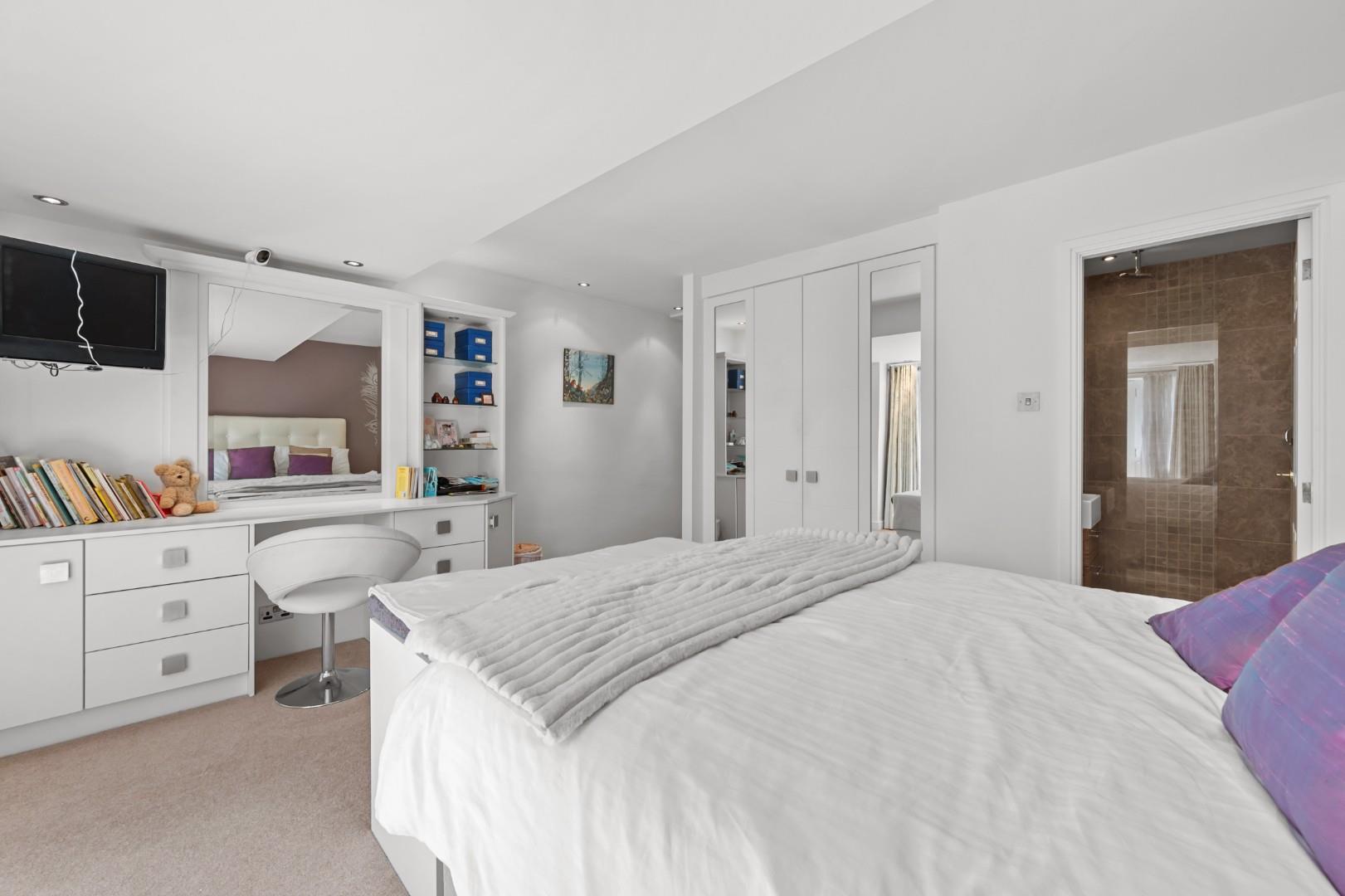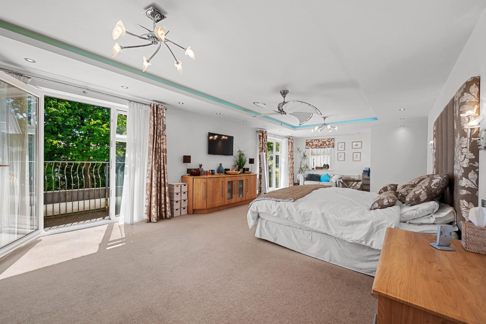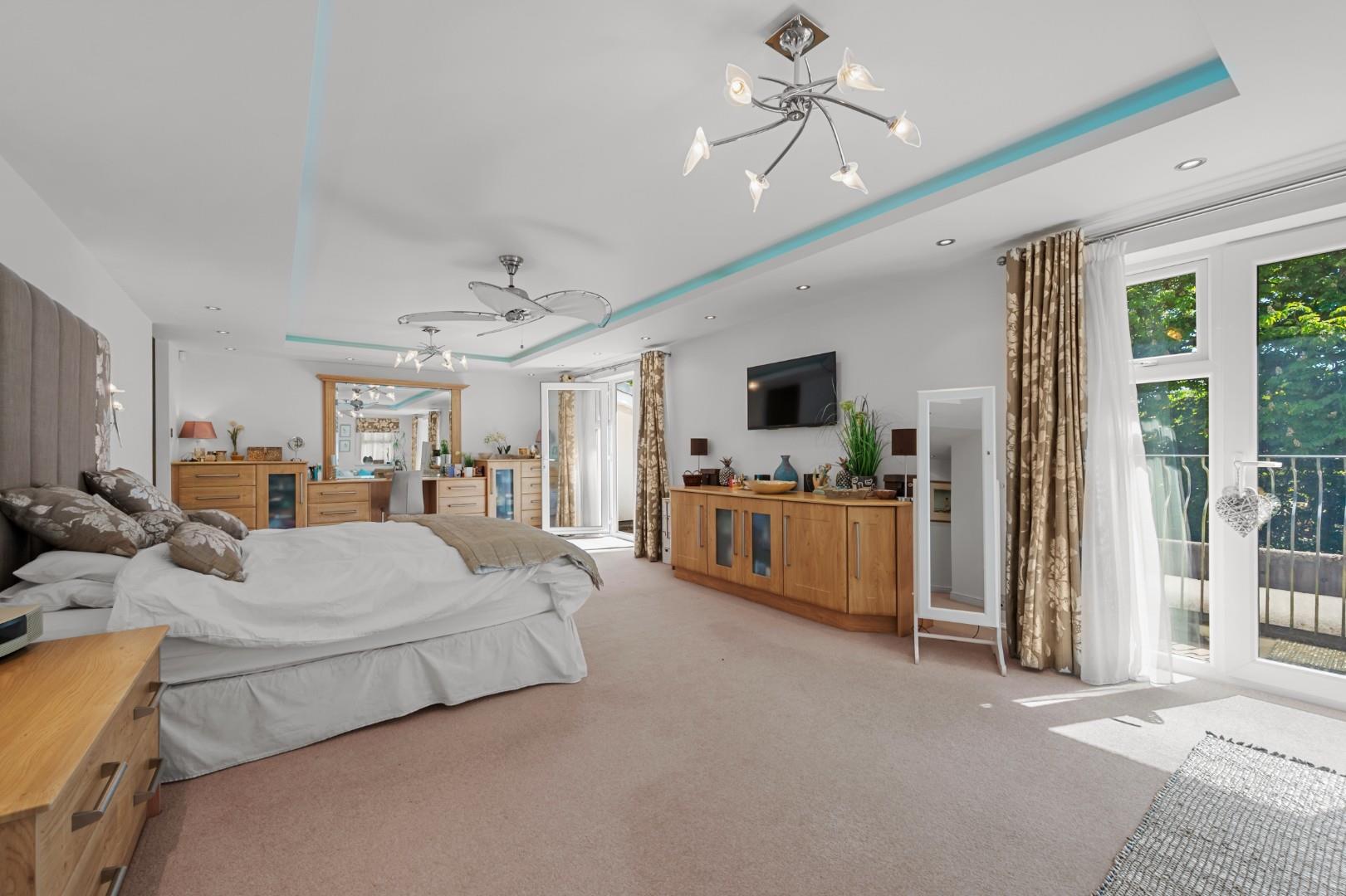 The Master Suite - There aren't many homes which have such a comprehensive, opulent, and impressive master suite like Mount House. Off the spacious galleried landing, a corridor connects the master bedroom area, its dressing rooms and large bathroom. The bedroom itself is an extremely generous 392 sq. ft, with ample room for an en-suite seating area, a range of fitted furniture and dressing table suite. Its balcony spans the full length of the bedroom and overlooks the private garden below. The two 'His and Hers' dressing rooms both include a generous amount of storage and fitted wardrobes, whilst the master bathroom is like that found in wellness spas or premium suites of the best hotels. The bathroom is fully tiled and fitted with Villeroy & Boch sanitaryware, featuring a five-piece suite that includes a supersize walk-in shower with rainfall head, tiled-in bath, wall-mounted WC, wall-mounted bidet, wash basin, plus two integrated storage units and a heated chrome feature radiator.