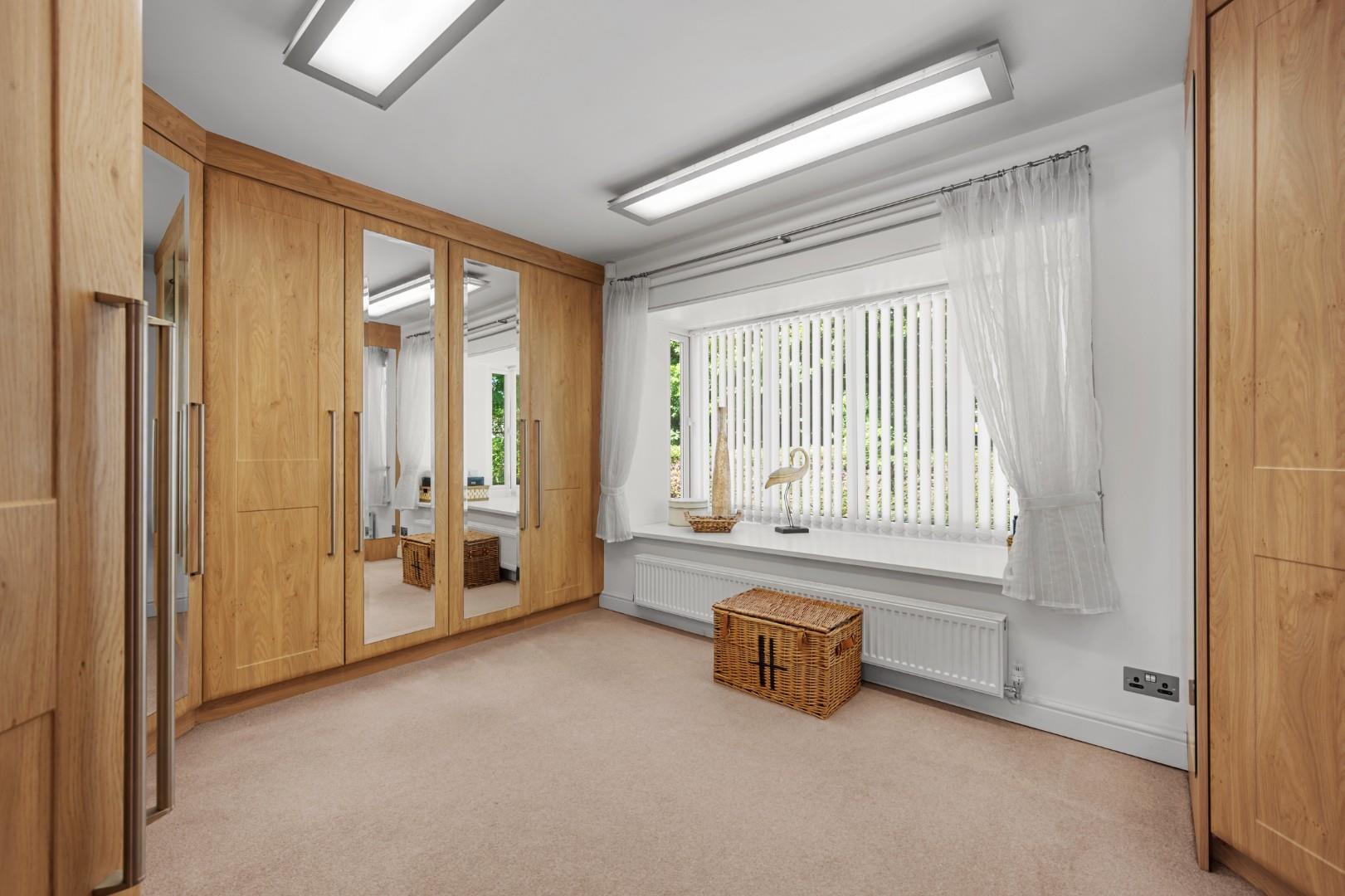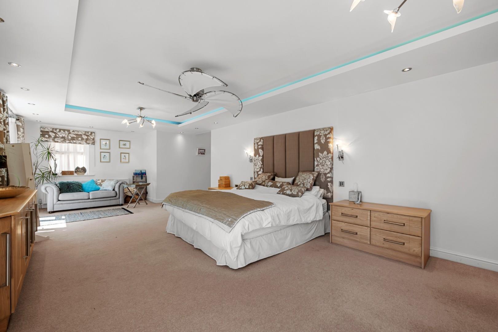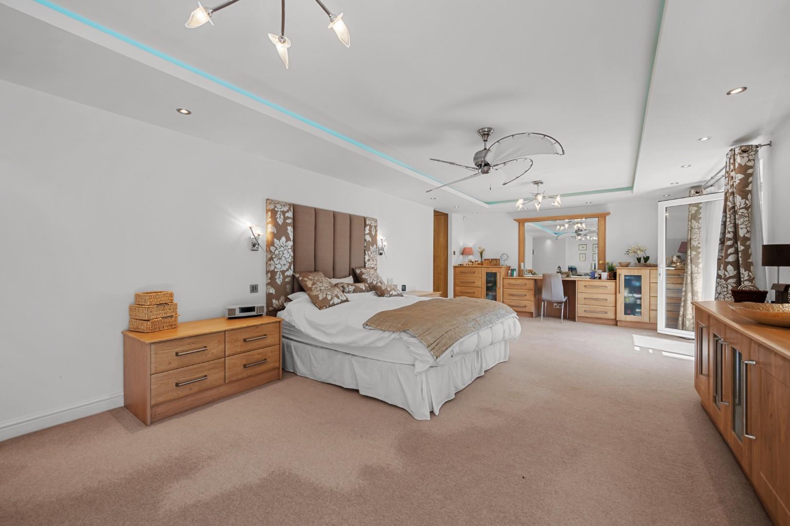 The Master Suite - There aren't many homes which have such a comprehensive, opulent, and impressive master suite like Mount House. Off the spacious galleried landing, a corridor connects the master bedroom area, its dressing rooms and large bathroom. The bedroom itself is an extremely generous 392 sq. ft, with ample room for an en-suite seating area, a range of fitted furniture and dressing table suite. Its balcony spans the full length of the bedroom and overlooks the private garden below. The two 'His and Hers' dressing rooms both include a generous amount of storage and fitted wardrobes, whilst the master bathroom is like that found in wellness spas or premium suites of the best hotels. The bathroom is fully tiled and fitted with Villeroy & Boch sanitaryware, featuring a five-piece suite that includes a supersize walk-in shower with rainfall head, tiled-in bath, wall-mounted WC, wall-mounted bidet, wash basin, plus two integrated storage units and a heated chrome feature radiator.