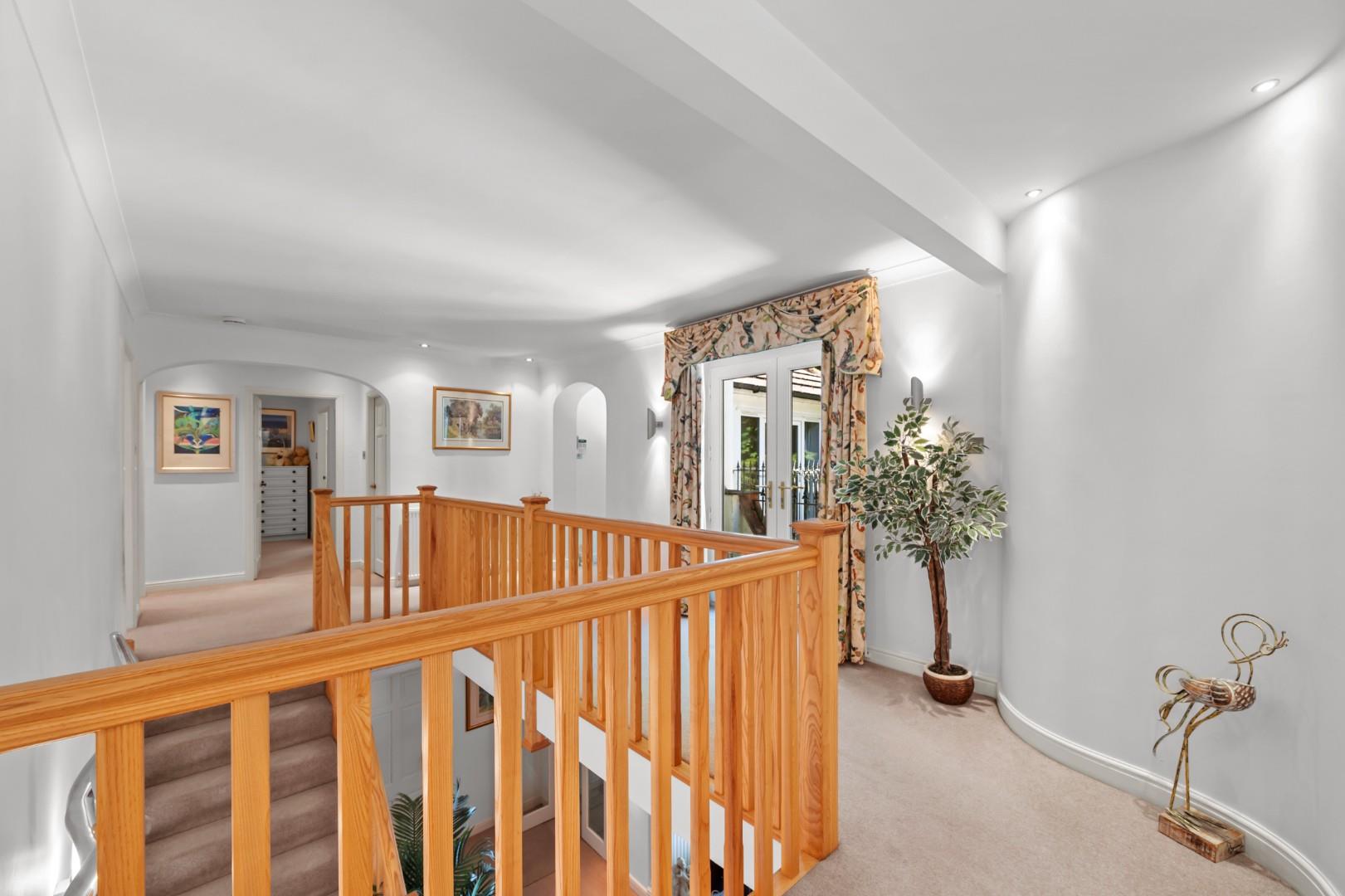 Bedrooms & Bathrooms - With five further bedrooms making six in total, and five en-suites on the first floor, as well as the potential for a seventh, even the largest of families will have a true abundance of space at Mount House. The second bedroom is presented to modern standards and like the master also features a Juliette balcony overlooking the garden below. The bedrooms benefit from fitted wardrobes and offer scope for modernisation in places, as does the four-piece family bathroom, with bath, wash basin, WC and bidet. The upstairs sitting room with cantilever balcony is alternatively well suited for use as another bedroom, kids' TV or games room, or perhaps even a second office/study if there are a few people working from home. Continuing the opulent feel, the gallery landing is incredibly spacious with a balcony and bespoke downlighting.