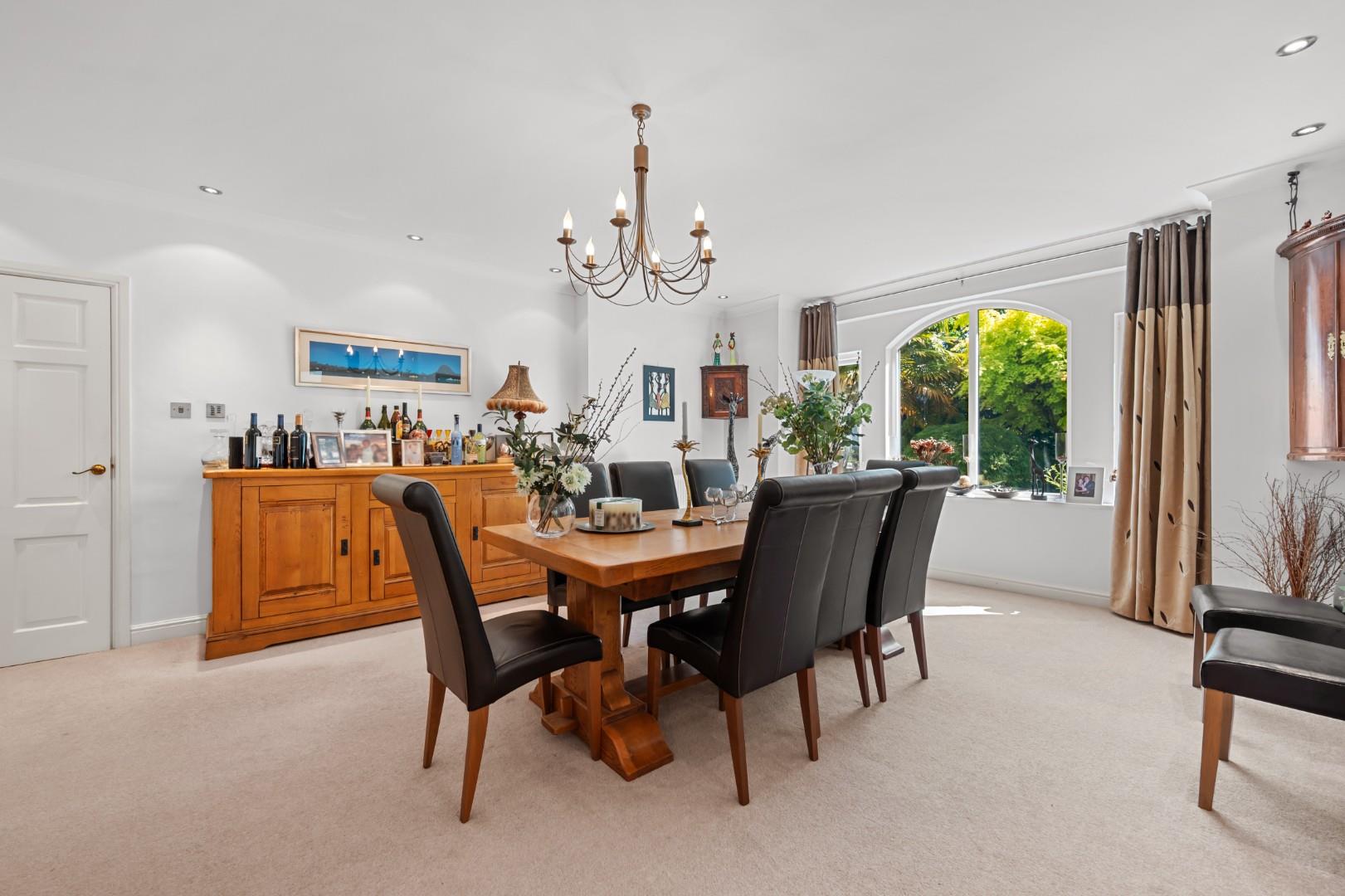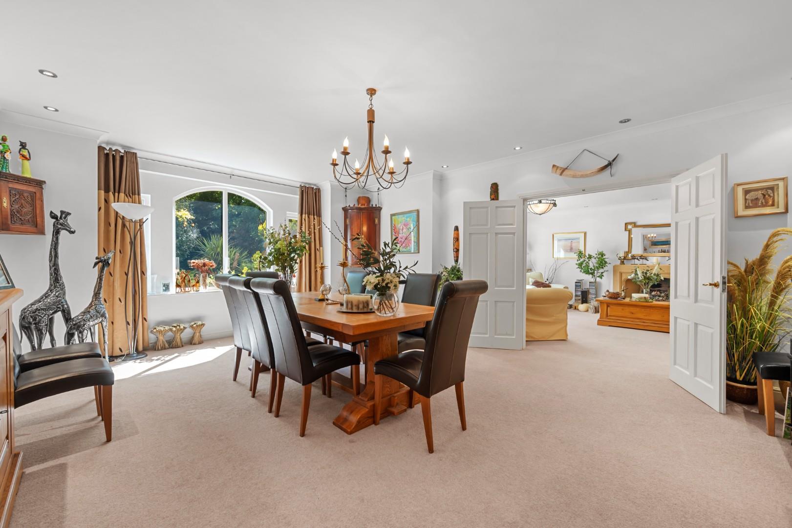 The same bright and airy feel is experienced in the dining room, where an arched feature window streams in plenty of light, and its great size affords oodles of space for a large formal dining table - a lovely spot for dinner parties and hosting family and friends on special occasions.
