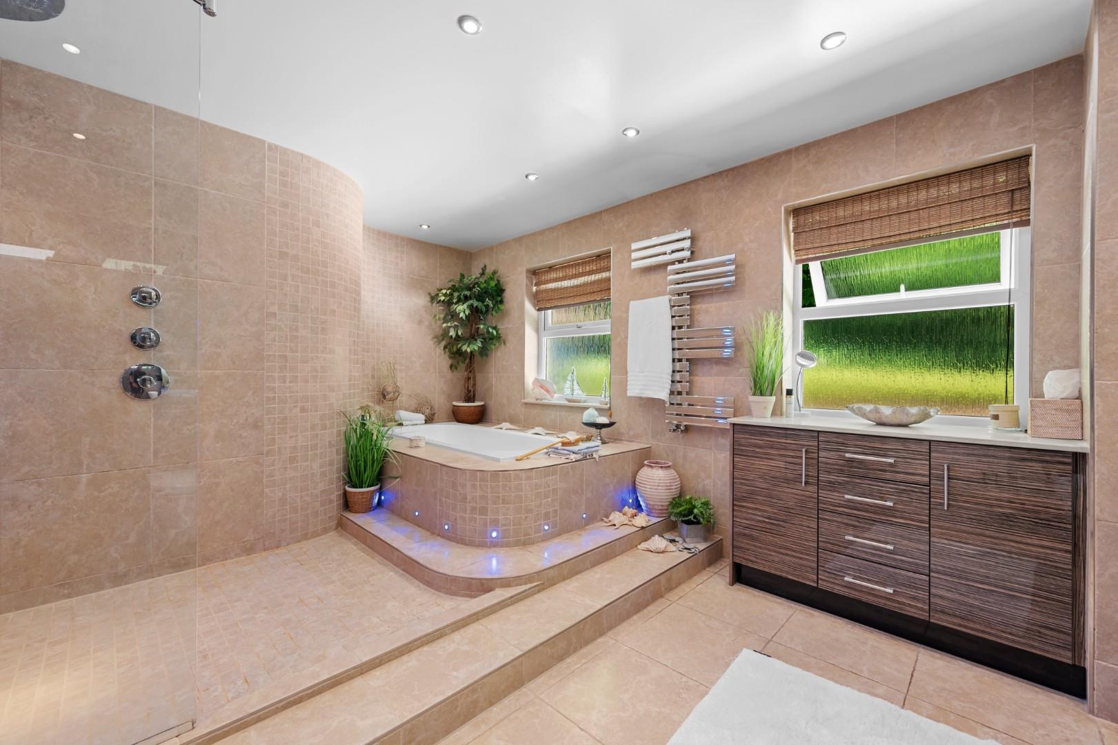 Leisure Space - As well as the great amount of living space on offer, the ground floor boasts versatility and flexibility in several rooms which the owners use for leisure and entertainment. There is a home gym/exercise room with its own shower room that features a fully tiled steam shower room, wash basin with storage and WC. A set of glass doors from the gym opens to another room which is currently used as a hot tub room, featuring more glass doors onto the garden to make the most of that desirable indoor-outdoor living during the summer months.