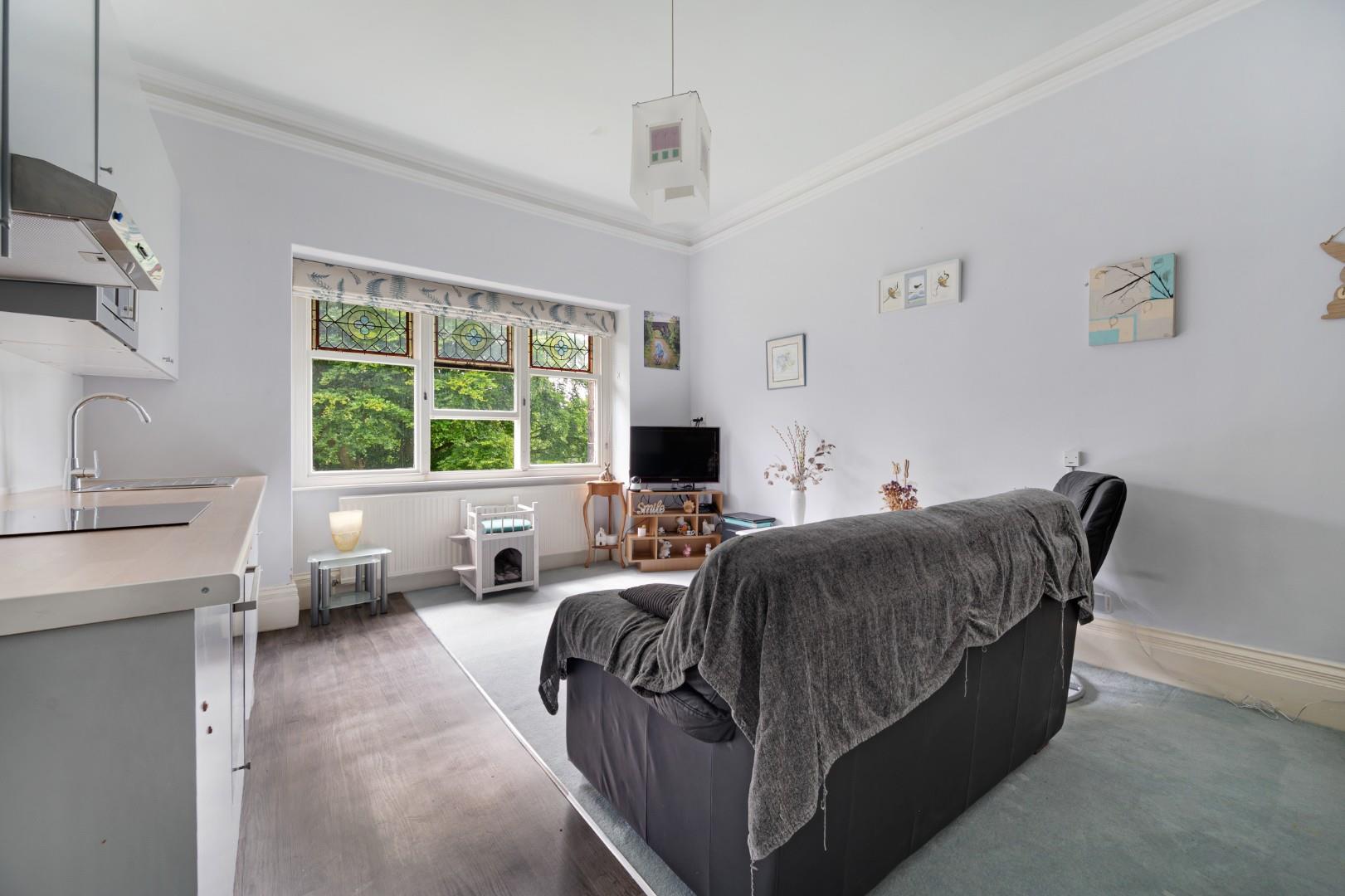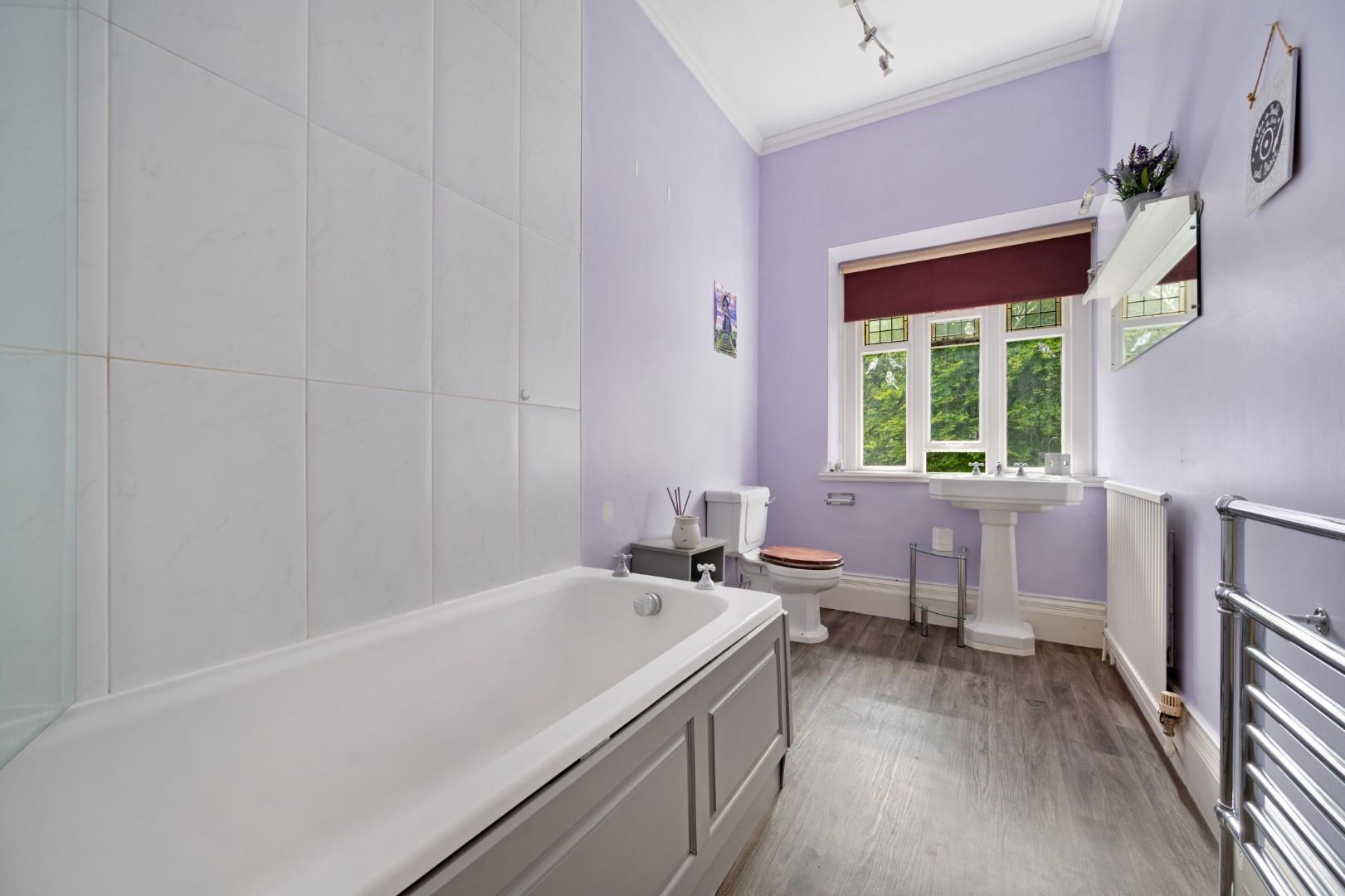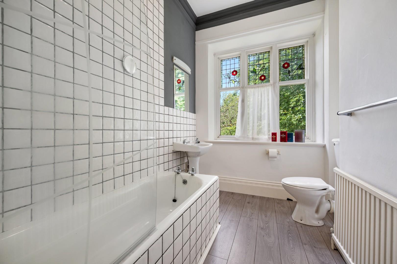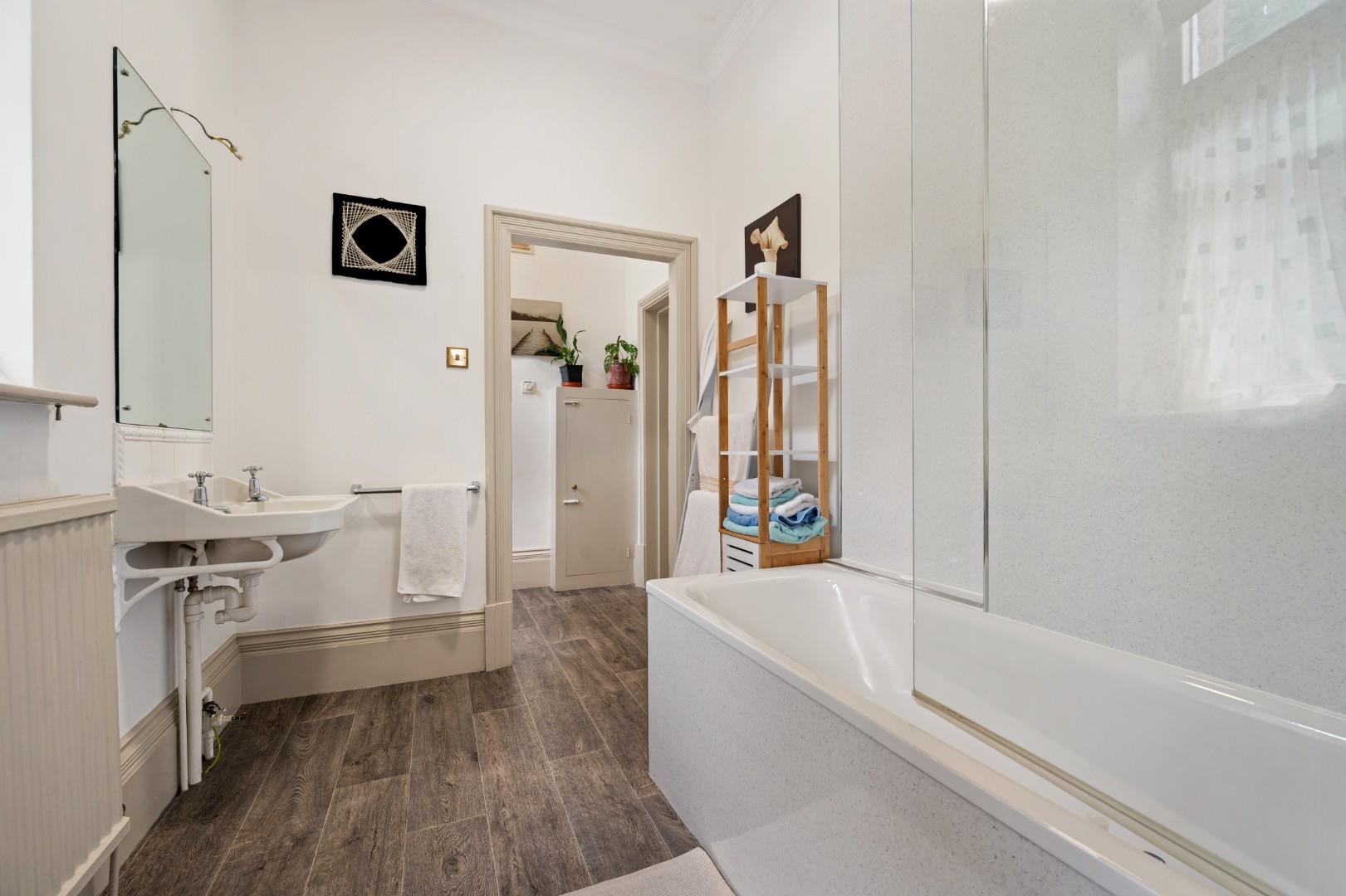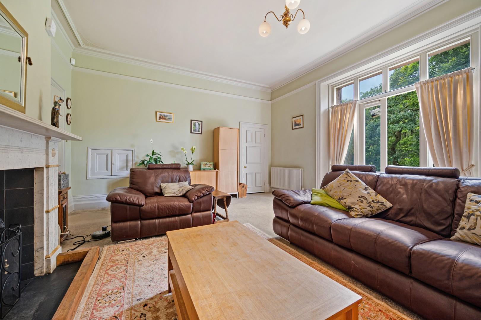With this being the largest of the four apartments, there are two bedrooms, a bathroom, lounge, kitchen, utility room, and an office/study space under the stairs. Period features include marble fireplaces on imposing chimney breasts, and original flooring within the porch and hallway. The lounge within this apartment benefits from large floor to ceiling windows and glass doors that open onto the garden, and the second bedroom offers versatility in use, perhaps as a dining room or second lounge.