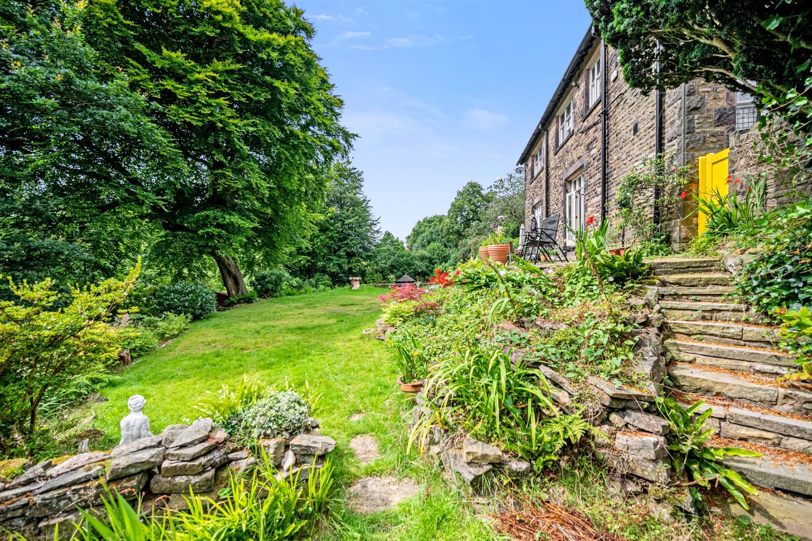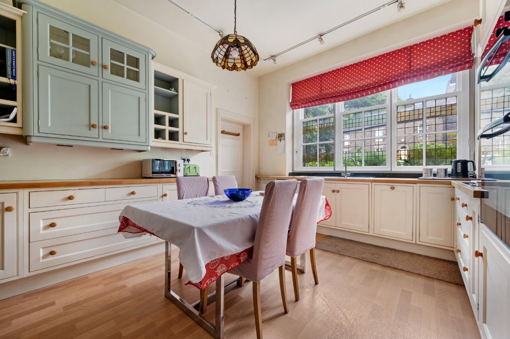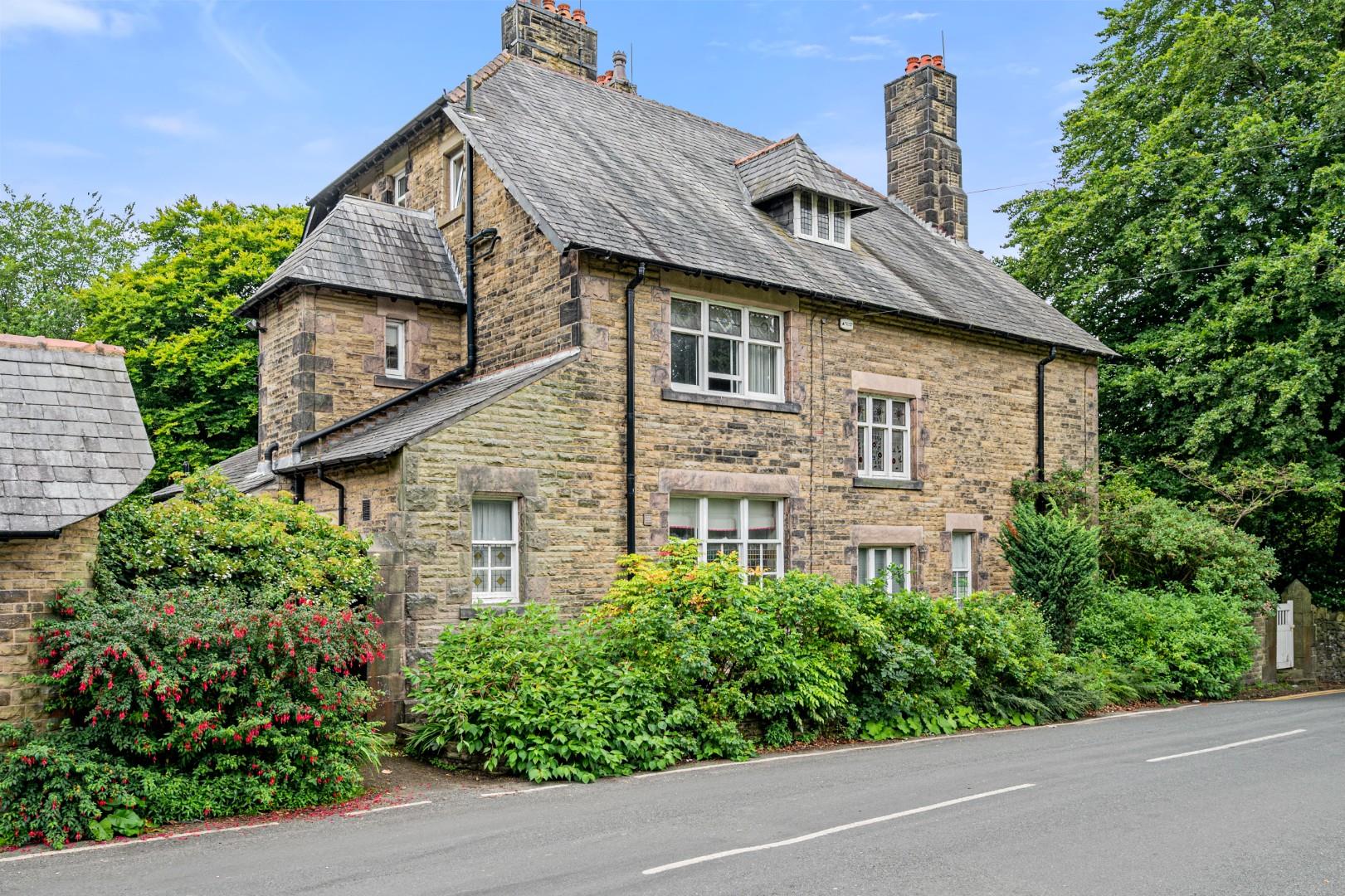 Offered with no chain, Hall Brook is a unique period property situated within the leafy green heart of Rivington. Boasting over 5,500 sq ft of internal accommodation, the property stands on a generous, private plot featuring mature walled gardens and extensive grounds with a spacious, gated drive. The main house retains its grand, period character with high ceilings and huge rooms, with period features including original doors and stained-glass windows, and an impressive oak staircase. The house is currently configured as four apartments set over three floors, plus a large cellar, and externally are two self-contained annexes/studios.
