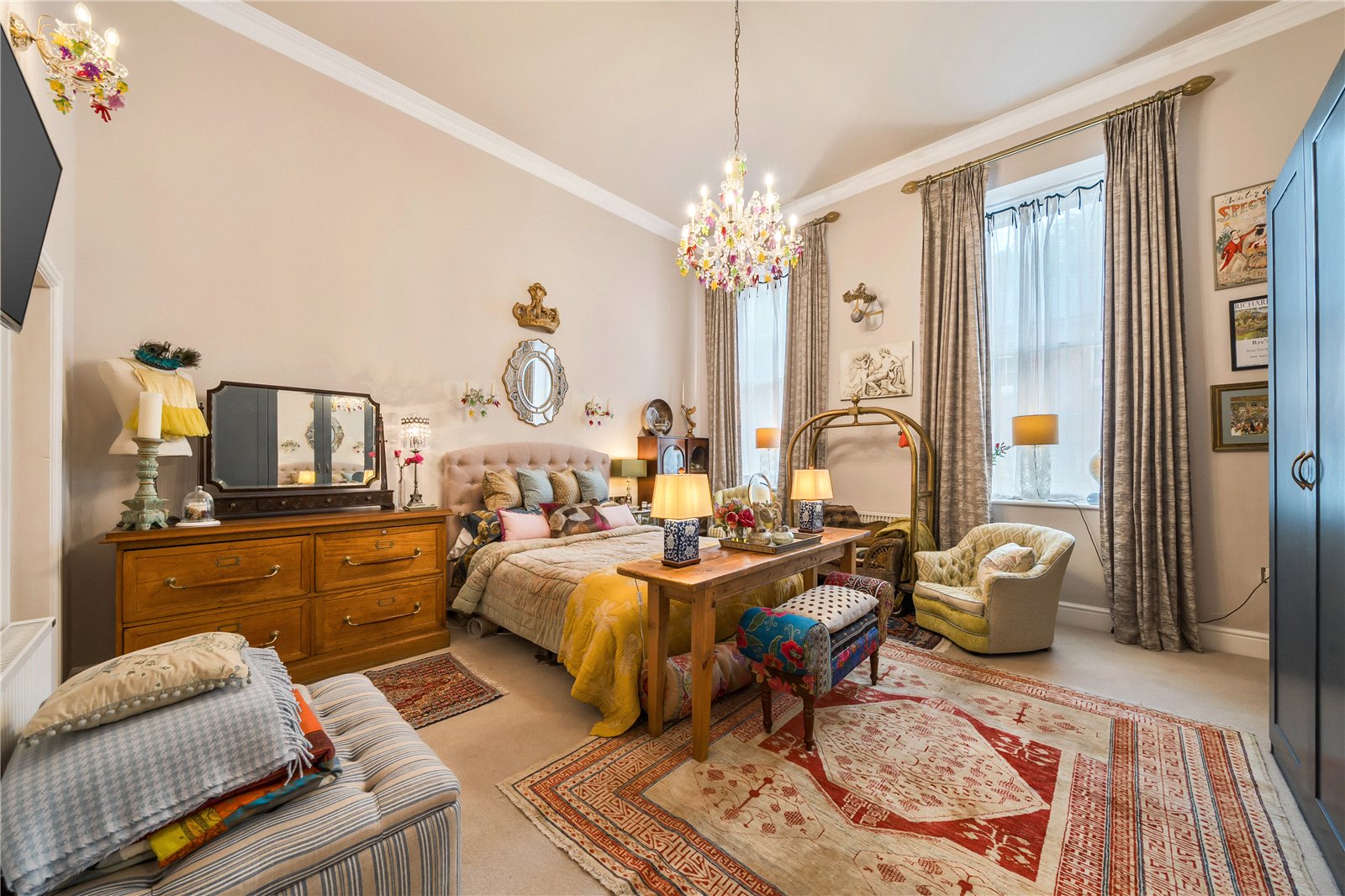 Accessed either via an internal door from the main mansion house or through a private entrance at the rear—offering a more direct and independent approach. Step inside into a spacious and welcoming entrance hall, where soaring ceilings create an immediate sense of grandeur, having a staircase leading to the first floor, built-in storage cupboard and a laundry cupboard with plumbing and space for both a washing machine and tumble dryer. A secondary door connects back to the mansion’s internal hallway for added convenience. For ease of living, the entrance hall is also equipped with a private internal lift, providing direct access to the first floor alongside the staircase. Off the hallway are two generously proportioned double bedrooms, each featuring high ceilings, built-in wardrobes, and their own private en-suite bathrooms. Bedroom 1 boasts a luxurious shower room with a large walk-in shower, contemporary vanity sink, and WC., whilst bedroom 2 offers a en-suite with a bath and sh...