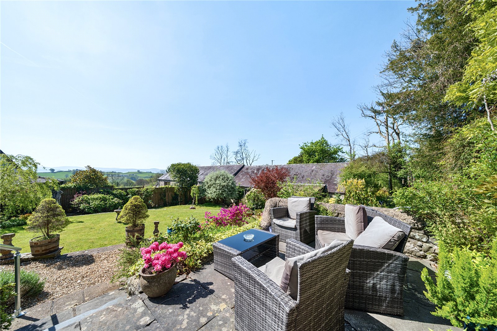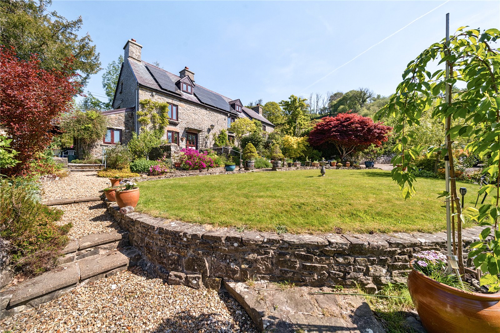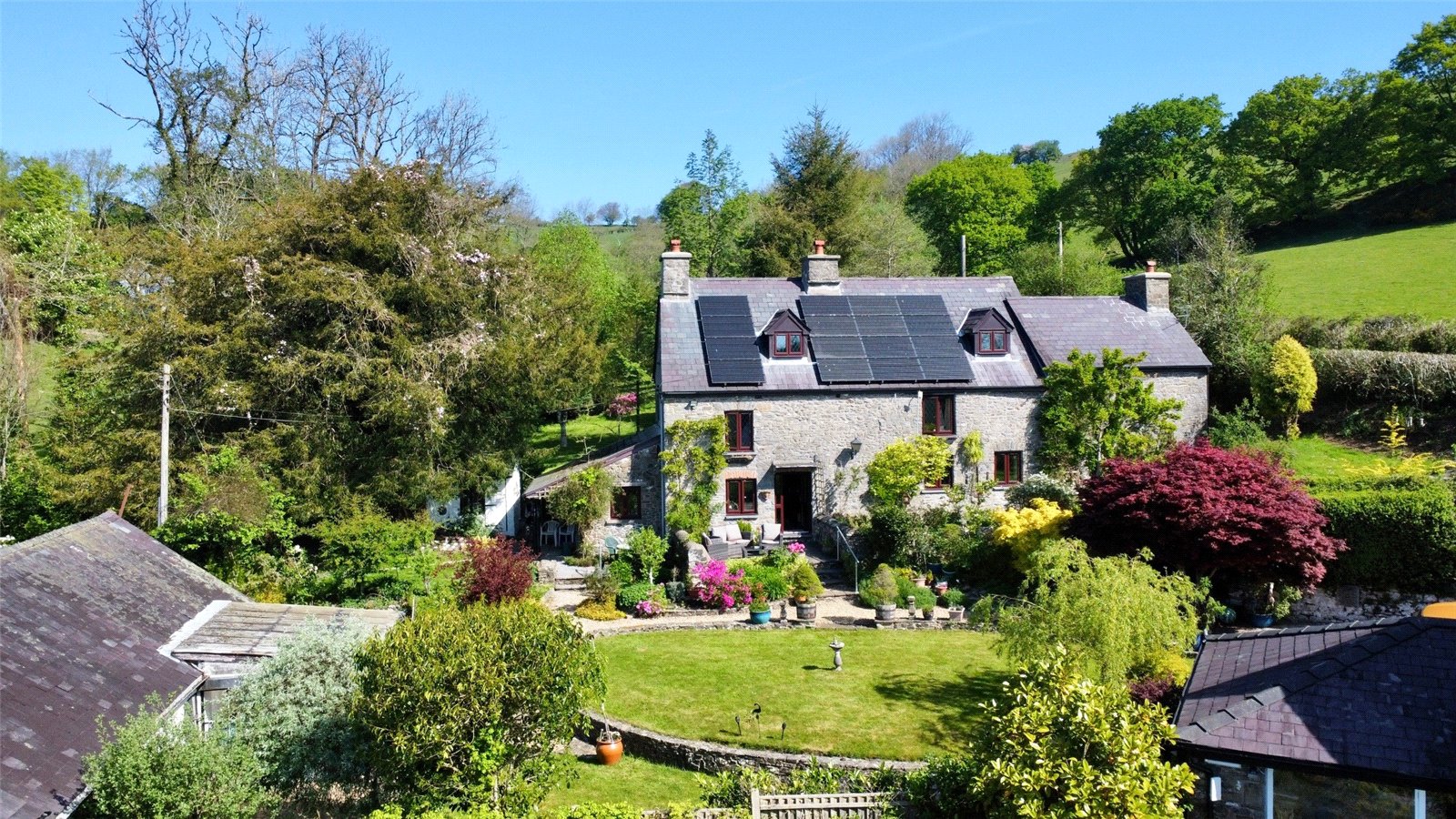 Approached via a short section of shared driveway, the property opens out to a private parking area where you can enjoy tantalising glimpses of the stunning valley views stretching out towards the distant mountains. The front of the house is particularly charming, featuring well-tended lawns, mature shrubs, and a thoughtfully positioned seating area—perfect for enjoying your morning coffee while soaking in the scenery.Adjacent to the house is a traditional stone barn offering excellent storage potential, along with a separate utility shed housing the oil-fired boiler and plumbing for a washing machine.To the rear, the garden extends generously, with scope to create a small paddock if desired. Mature trees provide shelter and privacy, while a natural stream borders one side of the property, accompanied by a tranquil pond and an abundance of established planting—all contributing to a truly idyllic country setting.