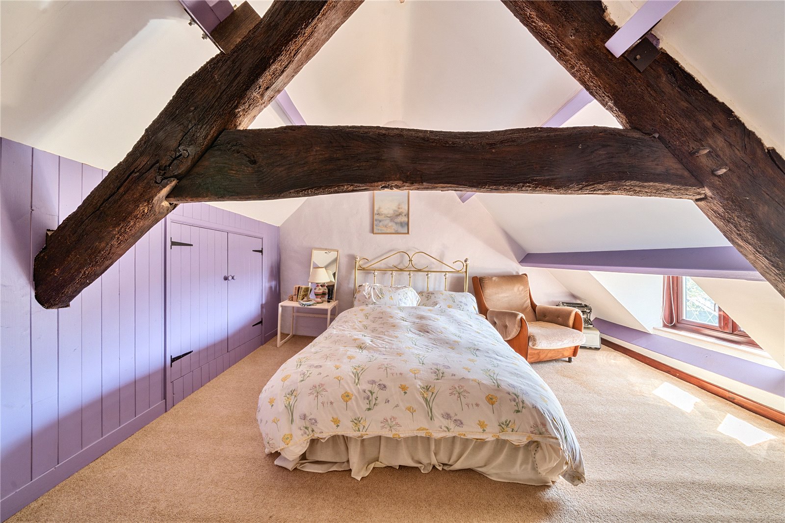 One of the home’s most distinctive features is the stone staircase, which rises to the first floor and adds a unique sense of character and heritage. From the first landing, you’ll find a spacious double bedroom and a well-appointed bathroom. A few steps further lead to the inner landing, where a second generous double bedroom awaits—complete with charming stone features, a built-in wardrobe, and a stylish en suite.From this bedroom, a further room opens out—perfect as a home office, dressing room or nursery—boasting a vaulted ceiling with exposed beams and beautiful stonework, creating a space full of atmosphere and versatility.A second set of stone-tread steps leads to the top floor, where two additional double bedrooms enjoy lofty vaulted ceilings and exposed beams, continuing the property’s timeless character and offering flexibility for family living or guests.