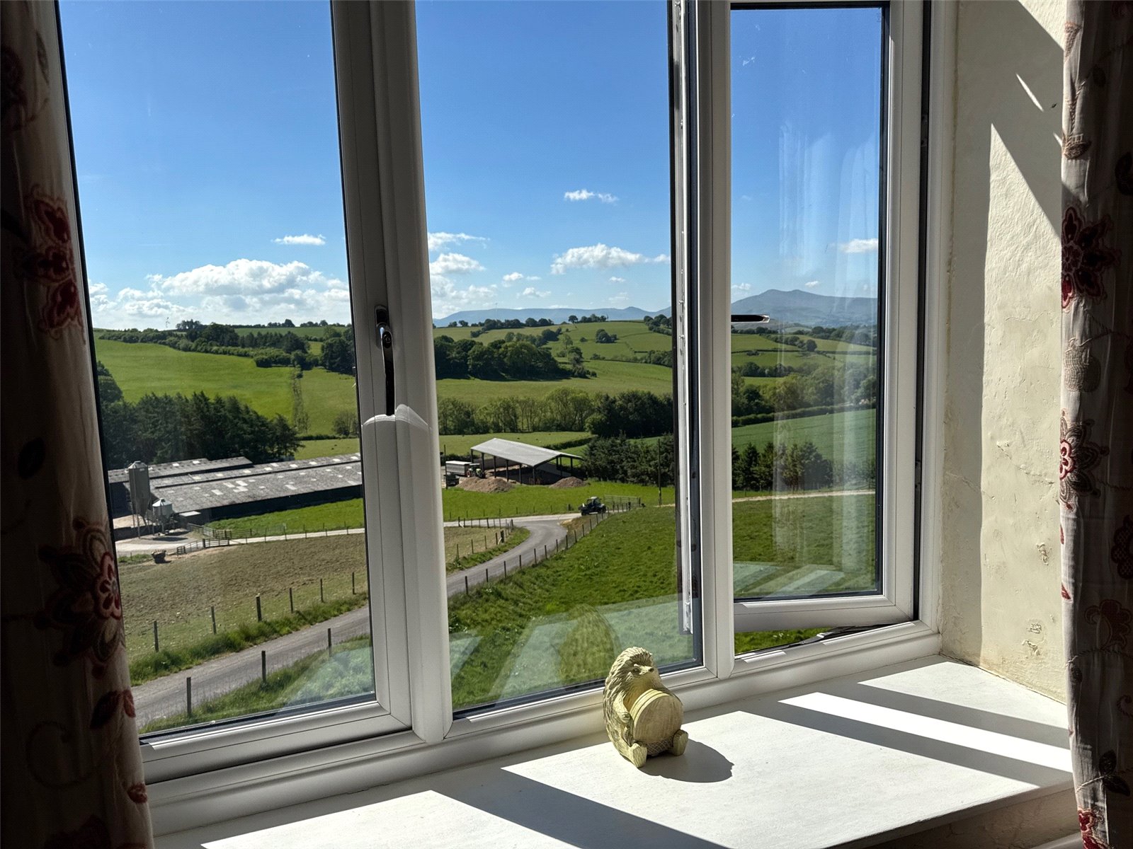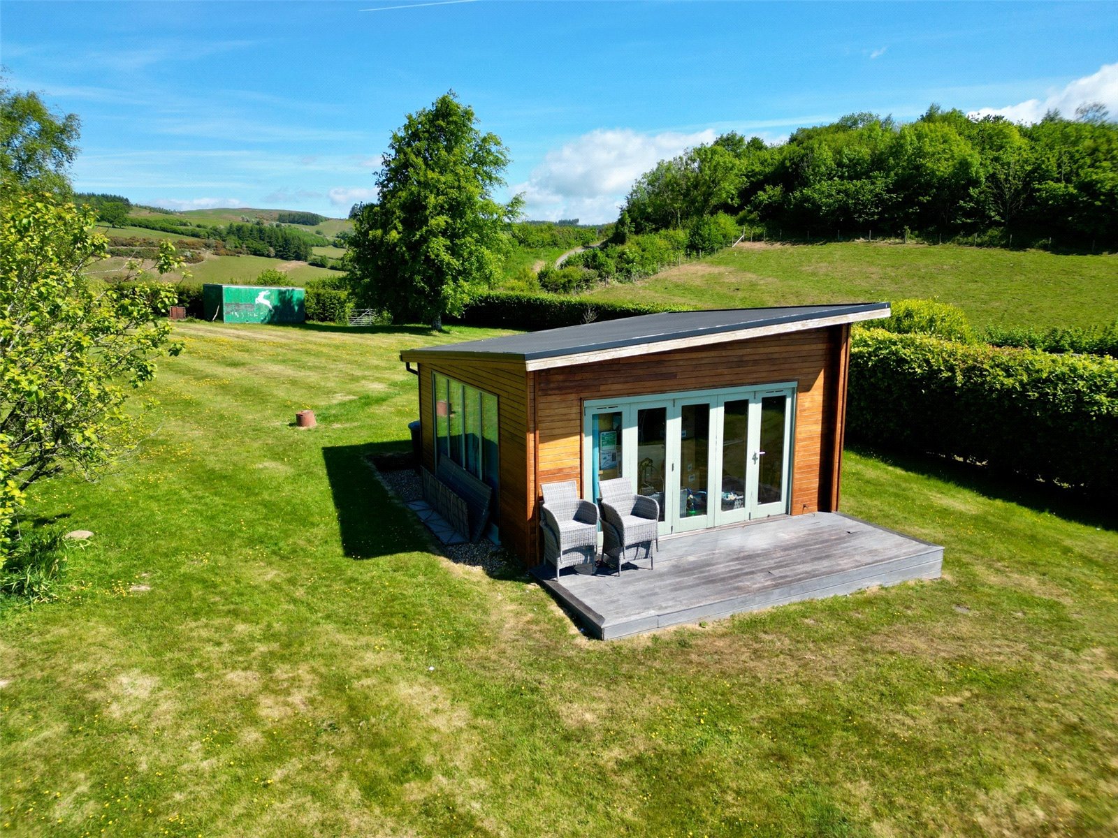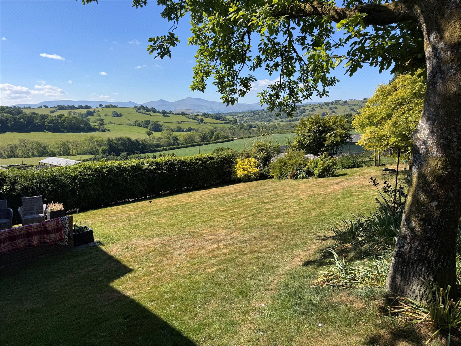 The property stands in grounds of about 1 acres including immediate lawns with a seating terrace accessed from the bi-fold doors leading from the dining area and enjoying long distance views of the mountains. At the rear is a large level lawned garden with a selection of trees and a timber built summer house about 4.5m x 5m, an ideal space as a home office or games room. With ample parking the property is ideal for those who enjoy space and an open outlook.