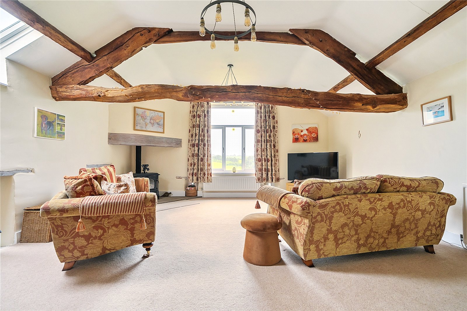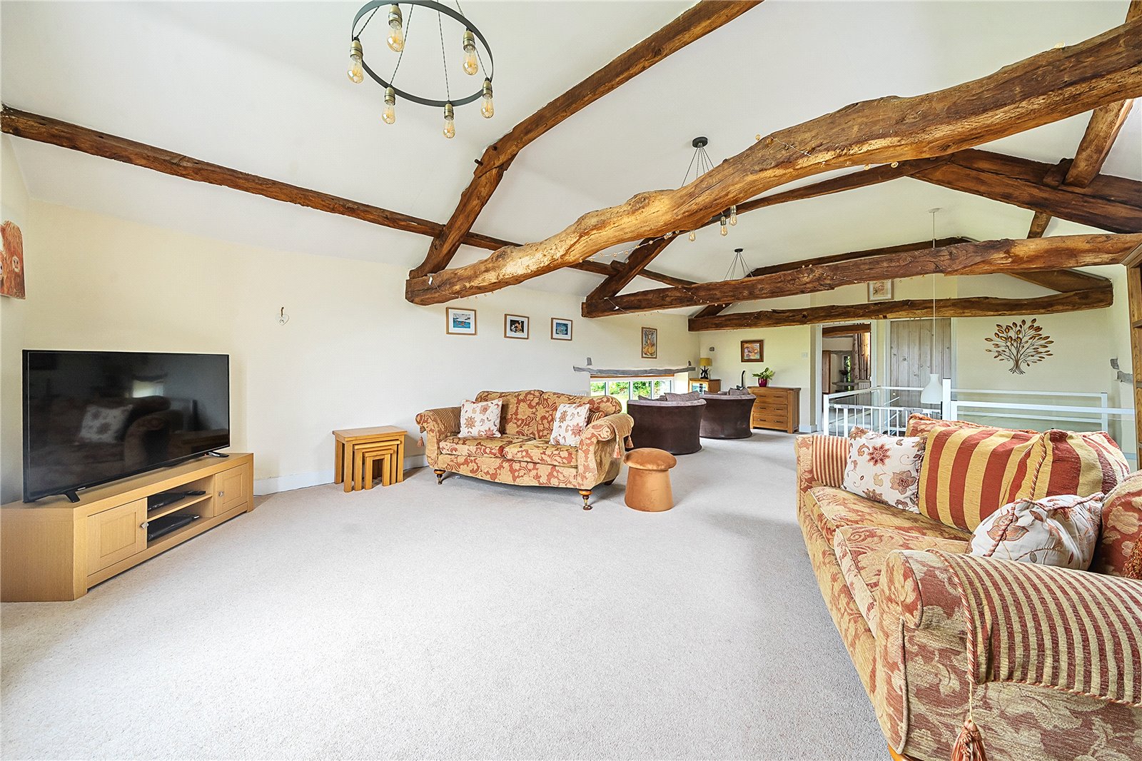 A beautifully presented barn conversion set in around an acre of gardens in a peaceful rural setting. Offering four bedrooms, a vaulted first-floor living room with stunning views, and a stylish kitchen with central island and dining area opening onto a sunny terrace. Additional features include a home office, utility room, and a charming timber-framed summer house—ideal for work or entertaining. Combining rustic charm with modern comfort, this is an ideal country retreat or spacious family home.