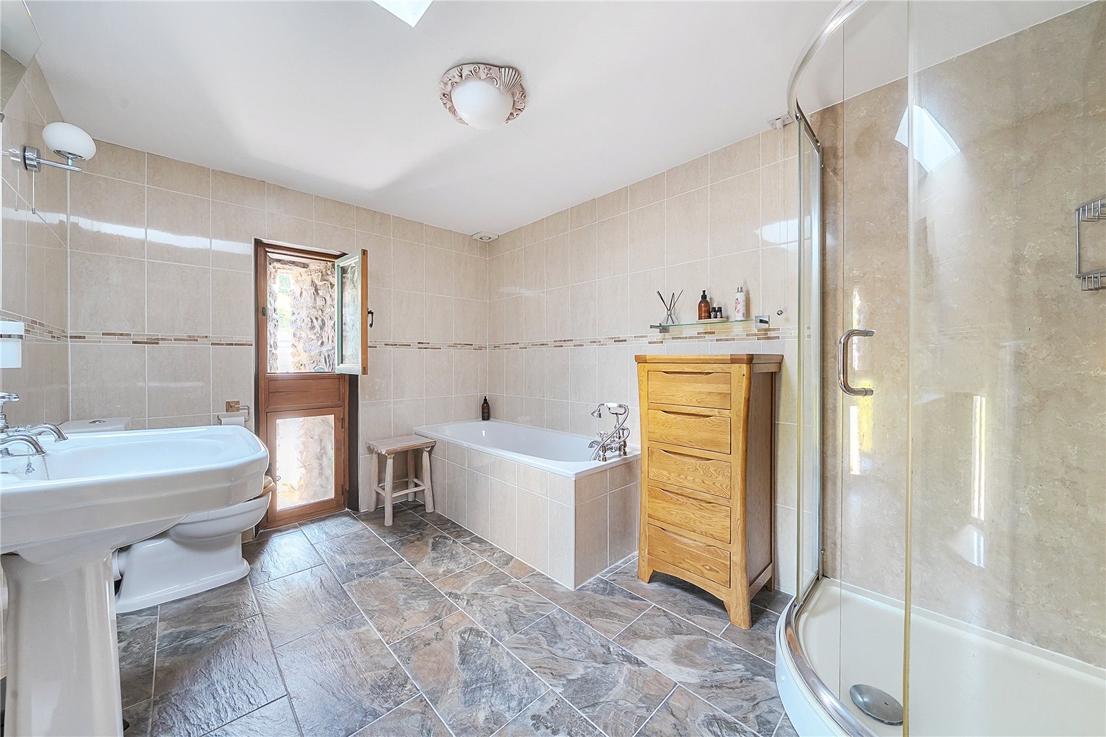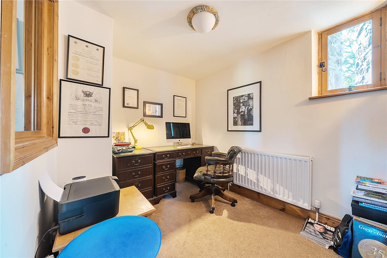 Adjoining the kitchen is a practical office space, ideal for home working, and a well-equipped utility room with its own WC.Upstairs, the galleried landing offers views over the gardens to the rear, adding to the sense of peace and privacy. All four bedrooms are generously proportioned doubles, providing comfortable accommodation for family and guests alike. There are two modern and stylish bathrooms serving the bedrooms.