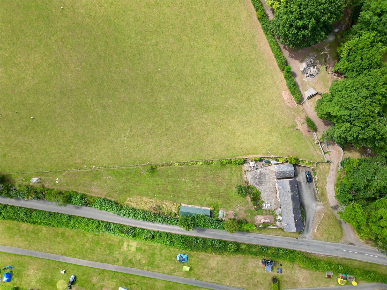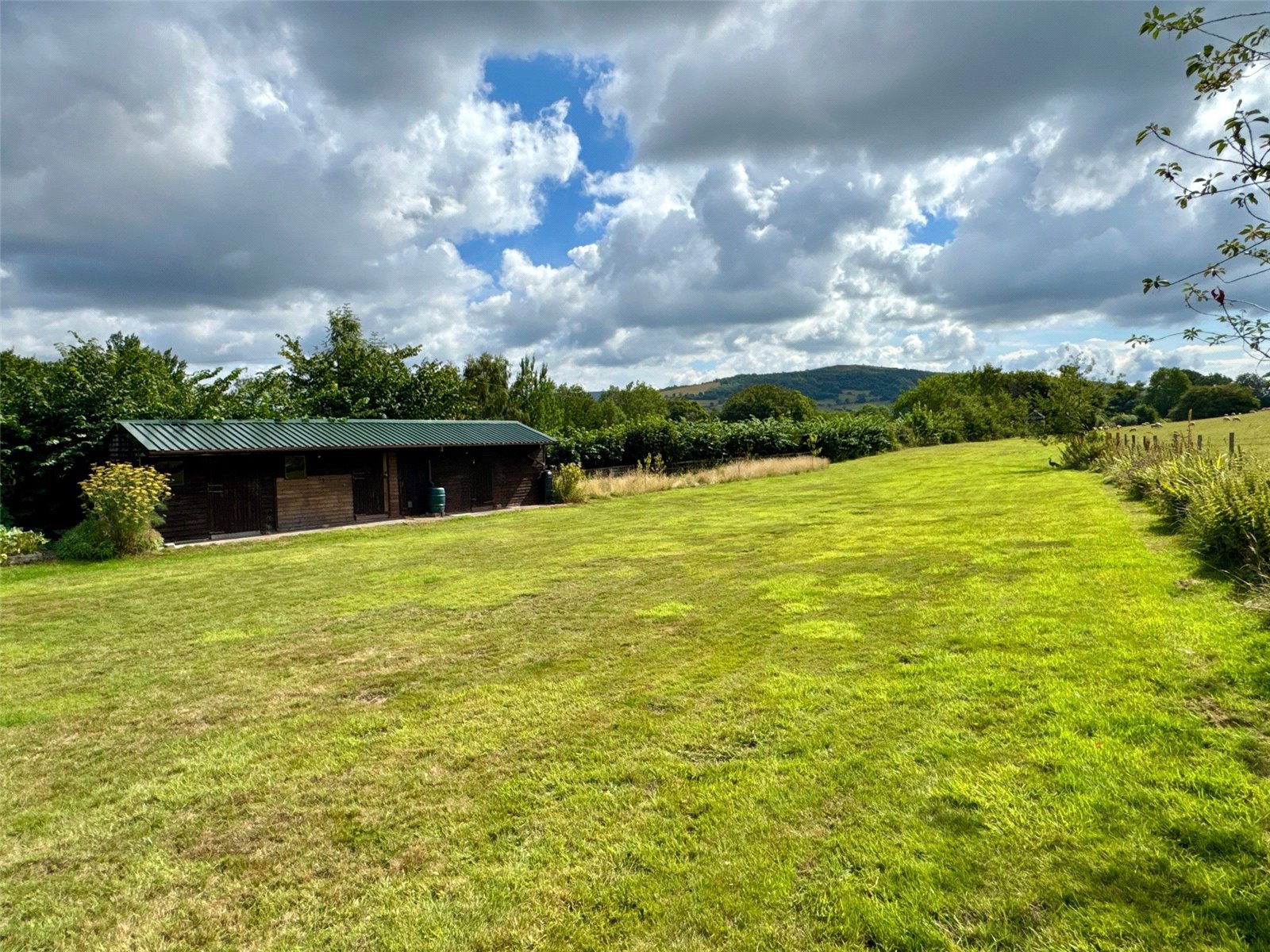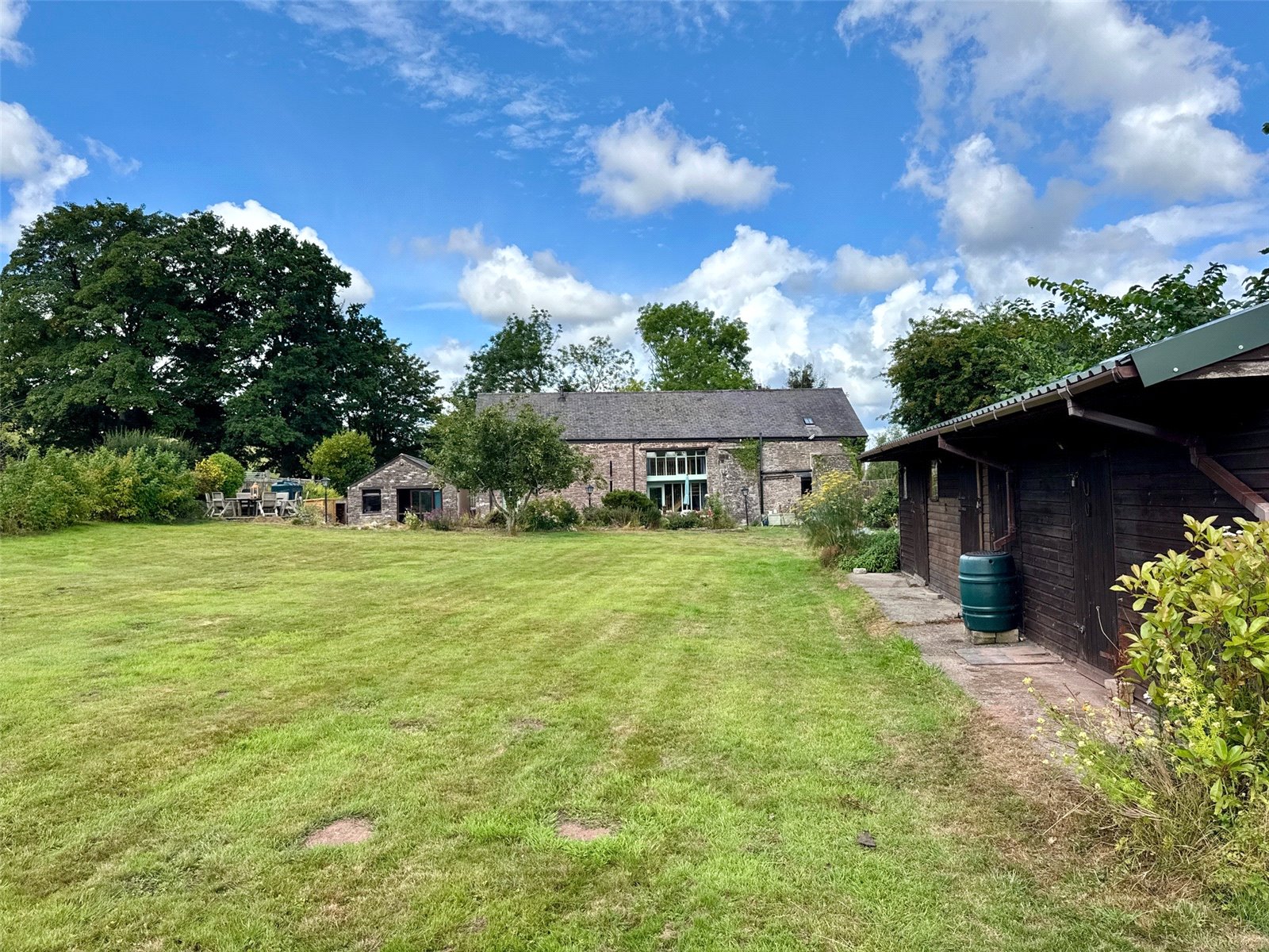 - Large garden with storage buildings