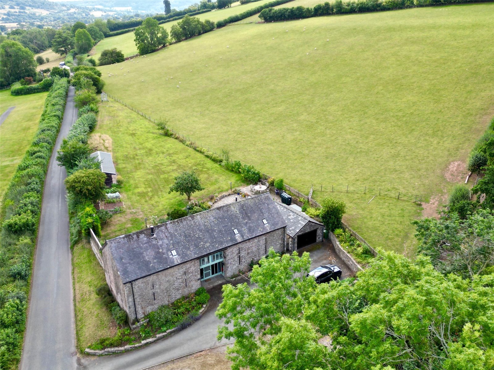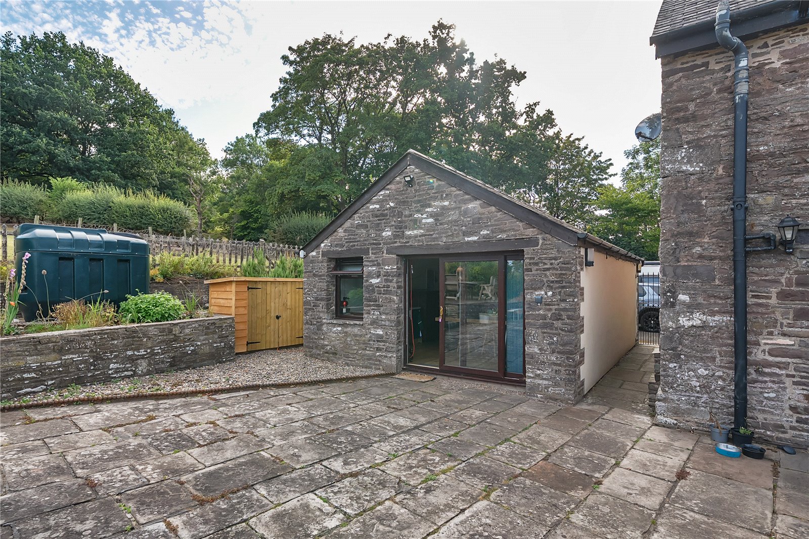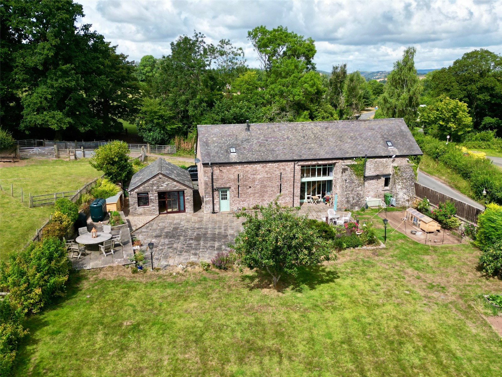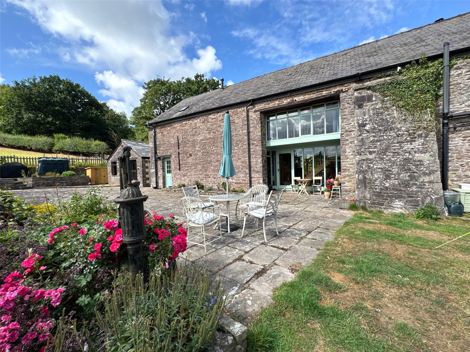 Castle Barn is a beautifully presented barn conversion situated on the edge of the sought-after village of Pencelli, within the stunning surroundings of the Brecon Beacons National Park. Offering generous and versatile accommodation, the property features four bedrooms, a striking galleried entrance hall, a spacious lounge, and a large kitchen/breakfast room centered around a modern AGA—perfect for family living and entertaining.Set within 0.72 acres of attractive grounds, Castle Barn includes landscaped gardens, part of which was once a paddock, complete with three stables and a tack roomFurther enhancing the appeal is a garden room (formerly a garage), offering excellent potential for guest accommodation, a home office, or creative studio.This charming home blends rural tranquility with practicality and style, making it a rare find in a truly exceptional location.