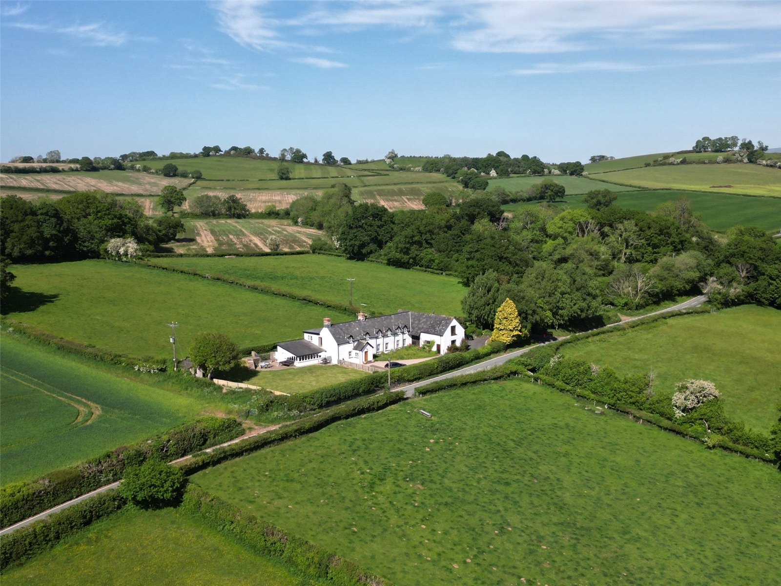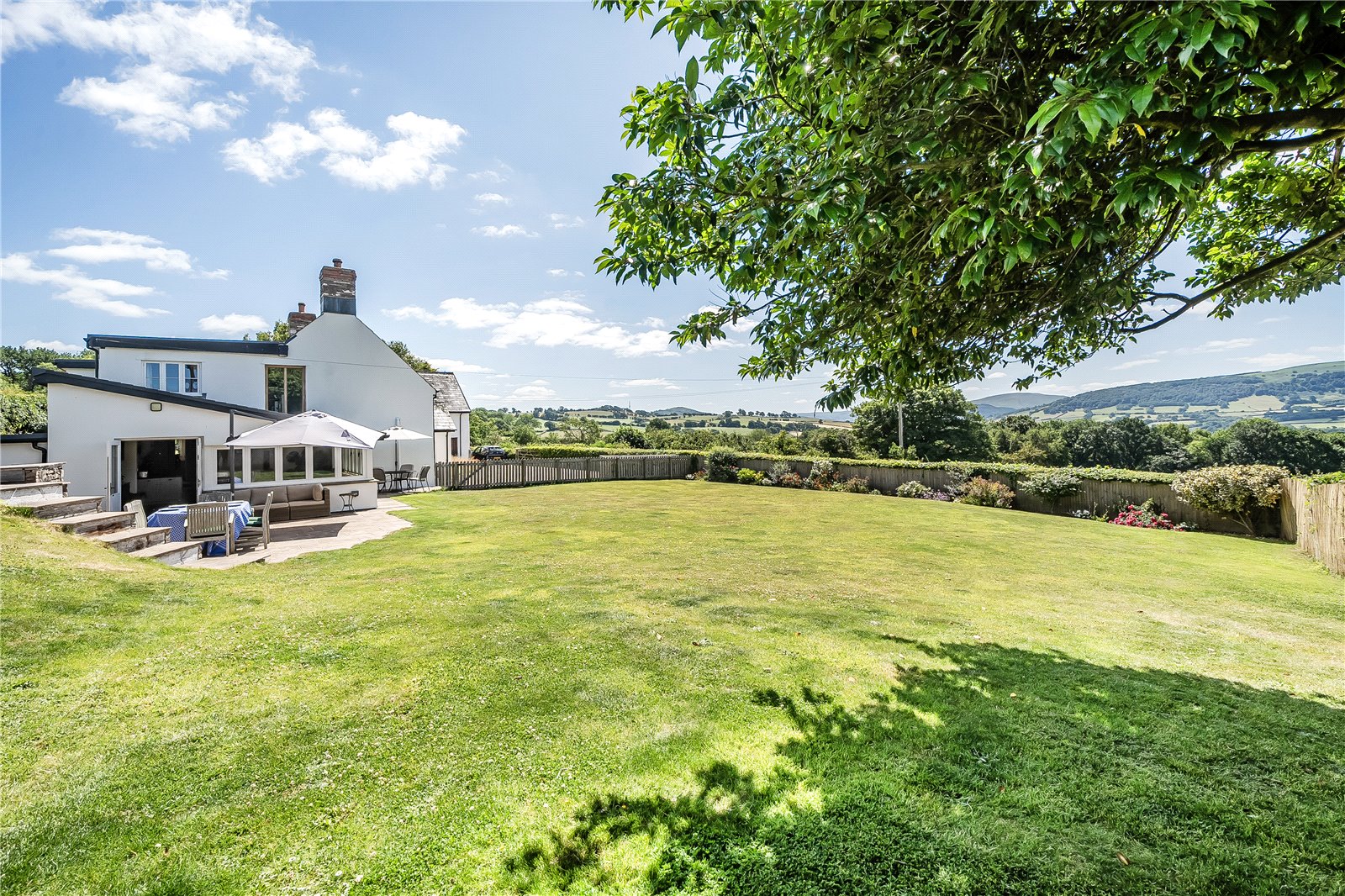 The spacious and versatile accommodation includes two inviting reception rooms, each with multifuel stoves, perfect for relaxed evenings or formal entertaining, along with a stunning dual-aspect dining room featuring French doors that lead out to the garden and frame the spectacular surrounding landscape. A well-appointed kitchen and generously proportioned utility room offer superb practicality for modern family life. Upstairs, four beautifully finished bedrooms each enjoy the luxury of private en-suite facilities, providing comfort and privacy for family and guests alike.Outside, the extensive lawned and patio gardens are a true highlight—all while enjoying panoramic countryside views that are nothing short of extraordinary. This is a rare and exquisite home offering timeless character, and modern refinement with one of the region’s most picturesque settings.