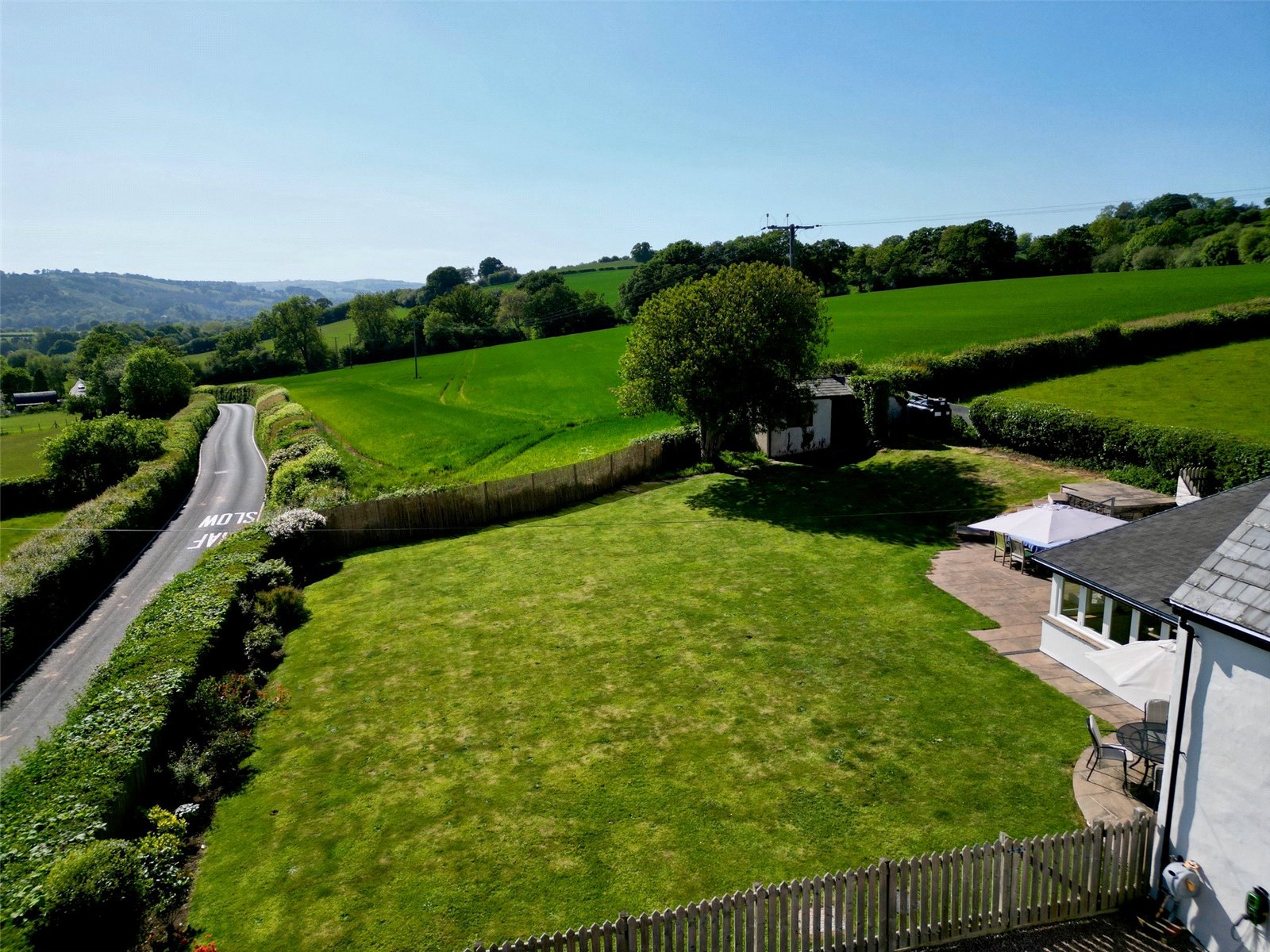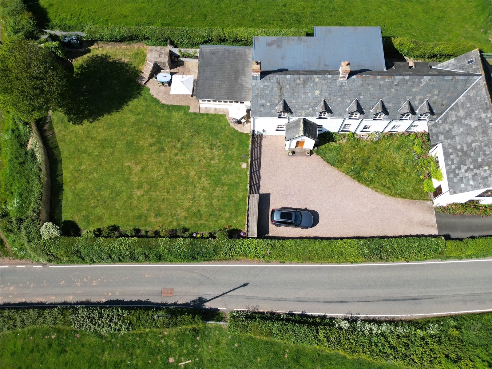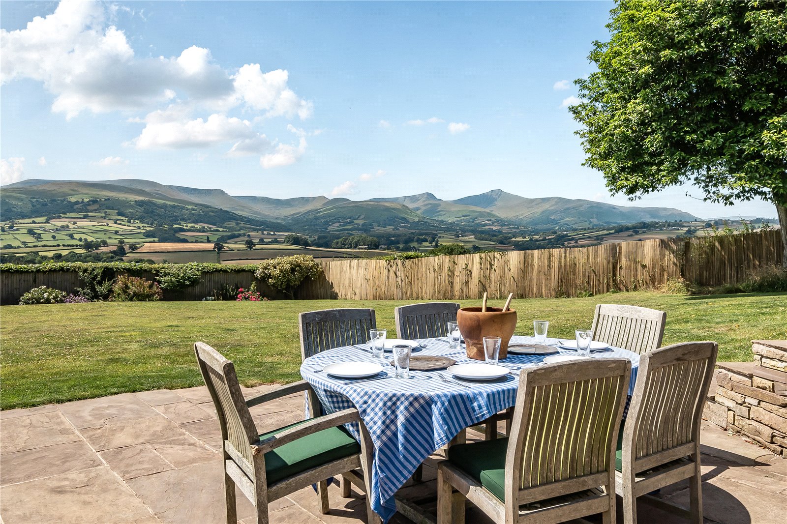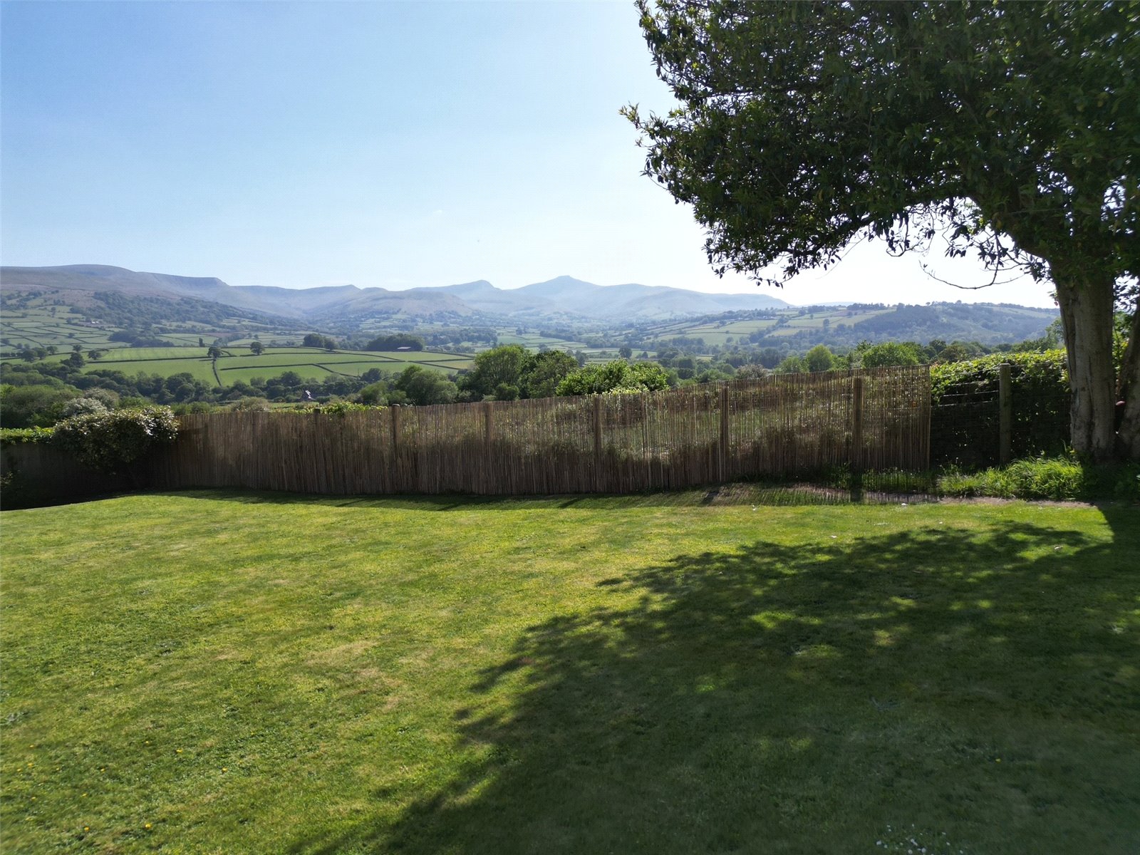 The property is approached via a right of way over the neighbouring drive, leading to a large gravelled private parking area from which the first views of the Brecon Beacons unfold. The gardens are a true delight—expansive, level, and largely laid to lawn with beautifully planted shrub borders to the front offering seasonal colour. A spacious patio area provides the perfect setting for outdoor dining, entertaining, or simply unwinding with a glass of wine while soaking in this rural haven. From every corner of the garden, the extraordinary panoramic views over the surrounding countryside and the Brecon Beacons themselves provide a constant, awe-inspiring backdrop.