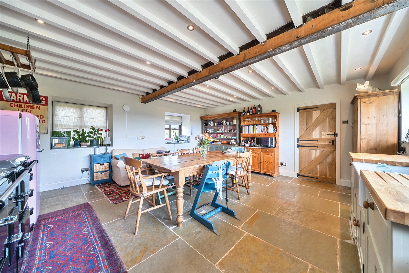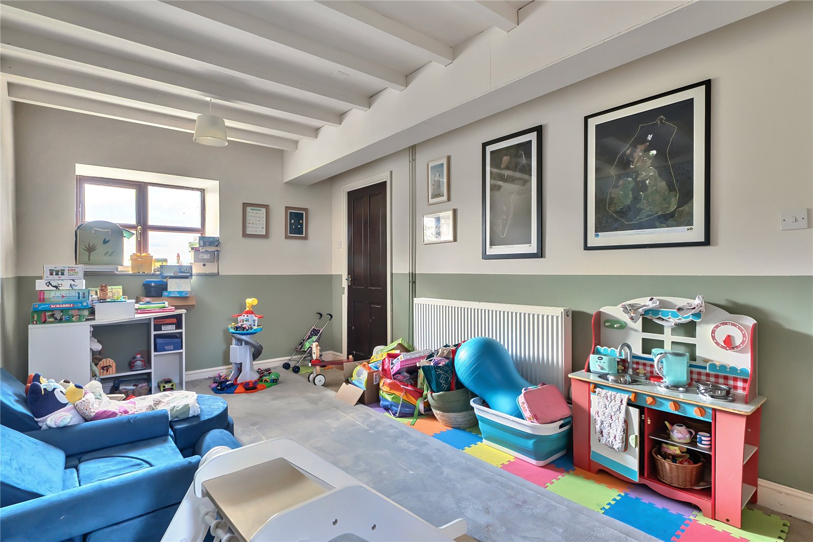 The front door opens into a generously sized entrance hallway having a staircase to the first floor, door to rear and a useful laundry cupboard. To the right, the inviting sitting room features attractive wood-effect flooring and windows to the front that capture picturesque views of the surrounding countryside. A wood-burning stove forms a striking focal point, perfect for cosy evenings in. Off the hallway, the tiled flooring continues seamlessly into the spacious kitchen/dining room - the heart of the home. This impressive family space is fitted with a range of units including an inset sink, integrated dishwasher, and a classic Everhot cooking range—an essential centrepiece for any country kitchen. A large front window frames uninterrupted countryside views, making even the washing up a pleasure. From the kitchen, a door leads to a versatile playroom, offering dual-aspect windows, access to the rear porch, and a further door opening into a secondary entrance hall. This secondary...