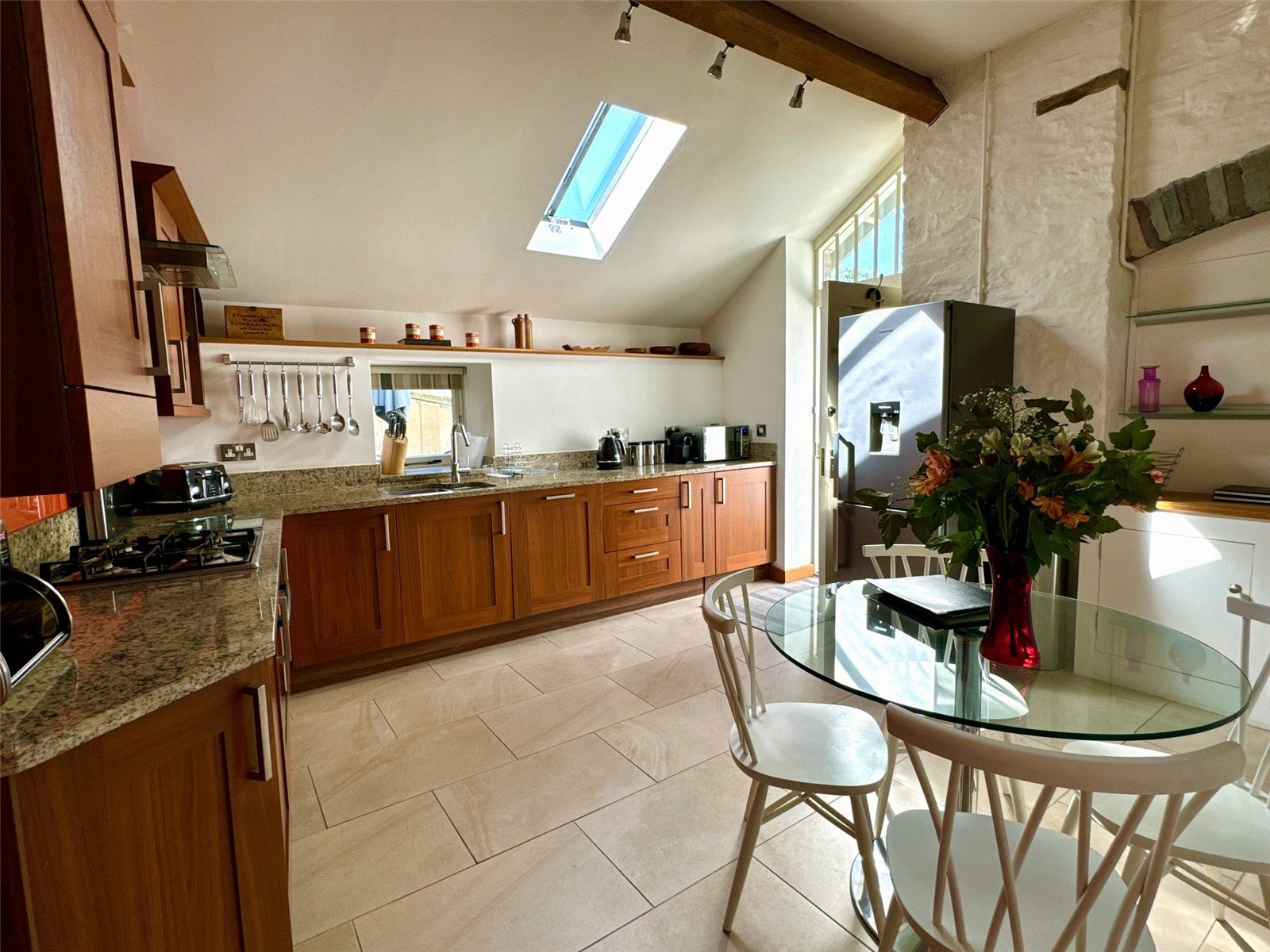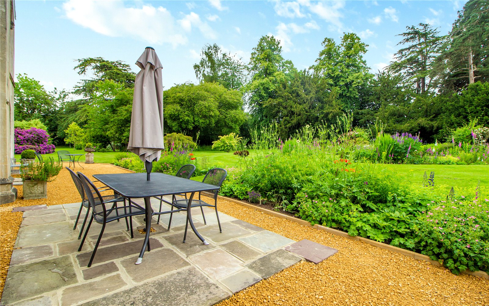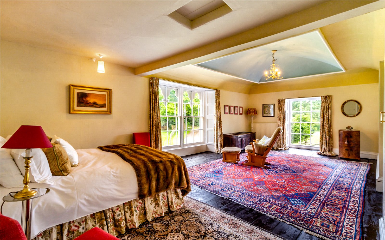 The remainder of the ground floor includes a practical boot room and WC off the main entrance hall, as well as a resplendent inner hall leading to the kitchen, which features a range of matching units and an AGA, and a study/breakfast room, both enjoying views over the front parkland. Additional spaces include a utility and boiler room, pantry, integrated garage, and a cellar. Planning and Listed Building consent have been obtained by the sellers for a substantial extension to create a contemporary 'L'-shaped kitchen and breakfast area (details available on request).