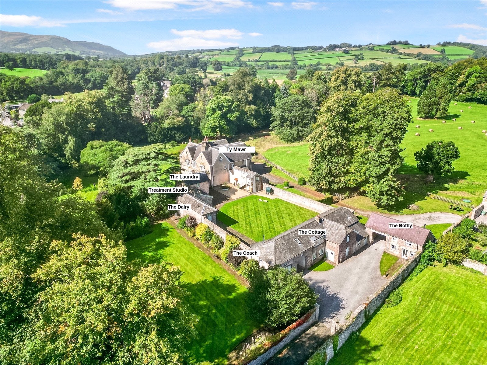 Accompanying the main house are five beautifully curated holiday cottages, created just 10 years ago and impeccably presented. Currently operating as the successful 'The Ty Mawr Collection' (www.tymawrcollection.co.uk), the cottages offer a fantastic opportunity to run a lifestyle business while enjoying the magnificent surroundings. Set within approximately 17.5 acres of parkland and landscaped gardens, this extraordinary property presents a rare opportunity to embrace both luxury living and business potential, all within the heart of the Brecon Beacons National Park.