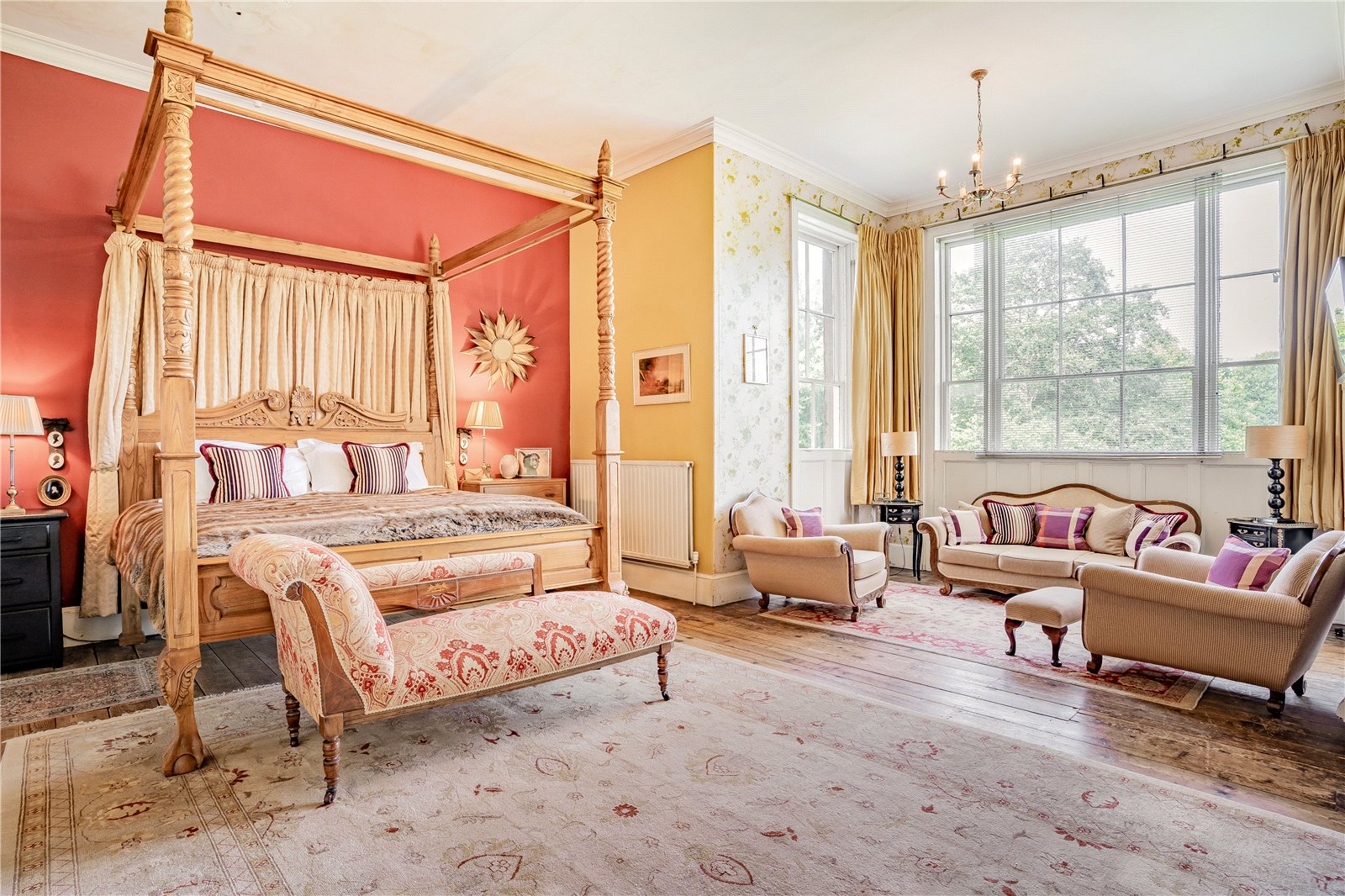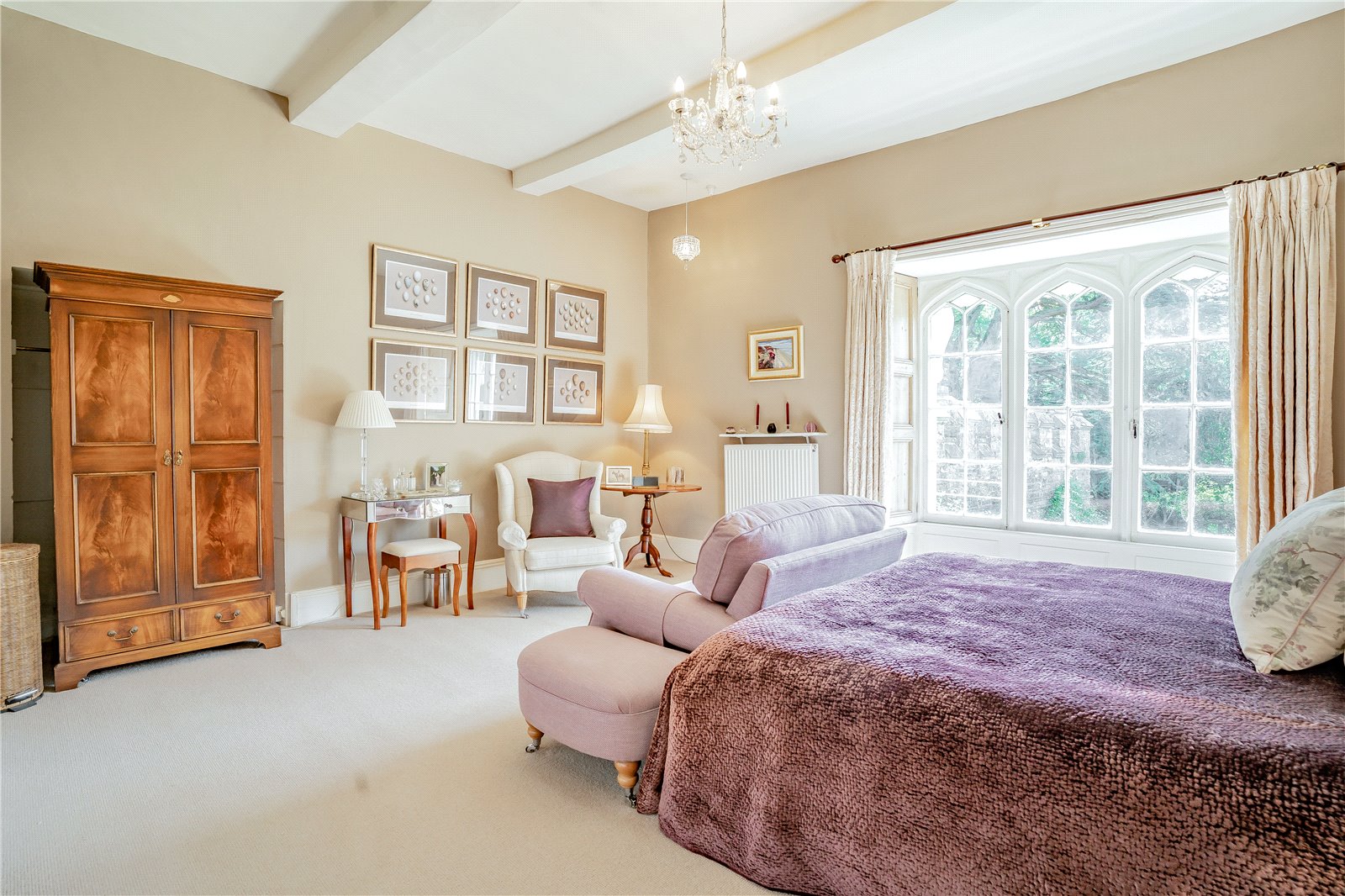 The grand staircase leads to the first floor, continuing the ribbed vaulted ceiling with intricate carved tracery and embellishments. A petite balcony overlooks the main hall, while further stairs rise to the upper levels of the first floor. This floor boasts six spacious bedrooms, each rich in character with features such as moulded architraves, beams, and superb window details. The main bedroom benefits from a dressing room, while two of the guest bedrooms feature ensuite shower or bathroom facilities. A family bathroom serves the remaining bedrooms.The second-floor attic area offers endless possibilities for further development or additional living space.