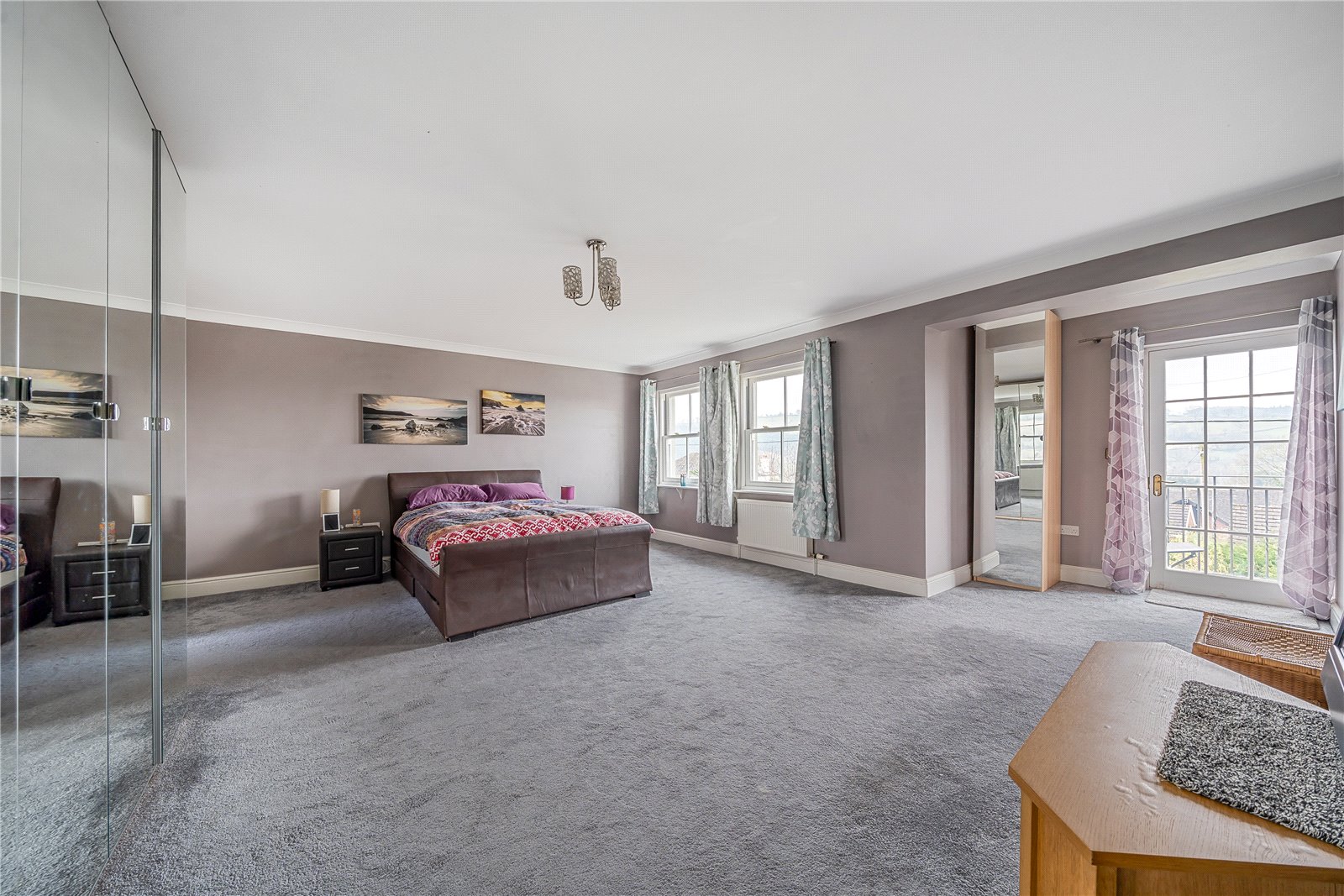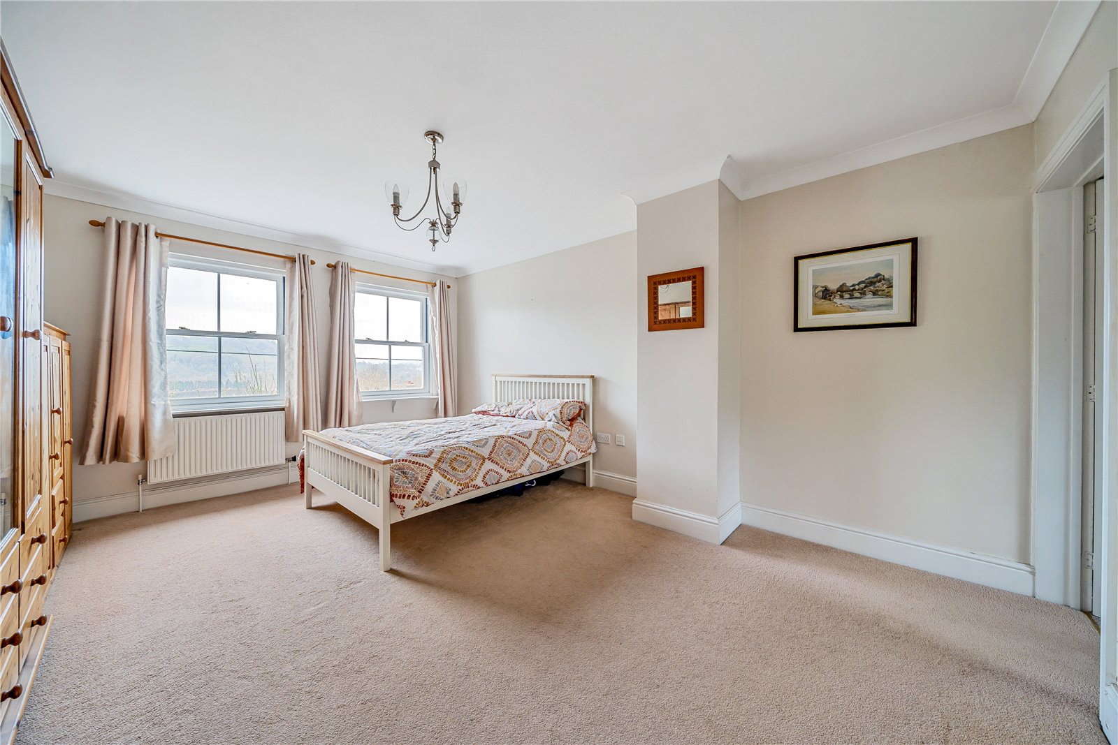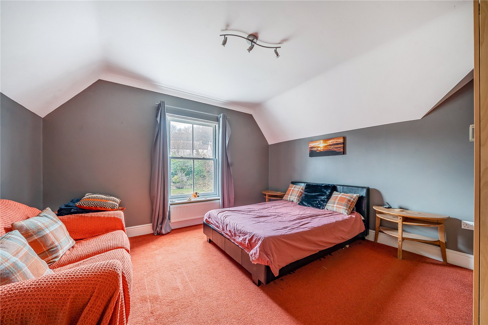 The first floor landing provides access to each of the 3 principle rooms on this level. To the froont of the house are two double bedrooms offering a south-facing aspect and affording splendid views. Each room boasts an ensuite, and the larger bedroom opens onto a small balcony—an idyllic spot for morning coffee. The third room is currently used as an office and enjoys its own private spiral starorcase that leads to the ground floor.On the second floor, discover four additional bedrooms, with three enjoying a south-facing aspect and captivating views over the town. Also on this floor, find a dedicated study and a generously proportioned family bathroom
