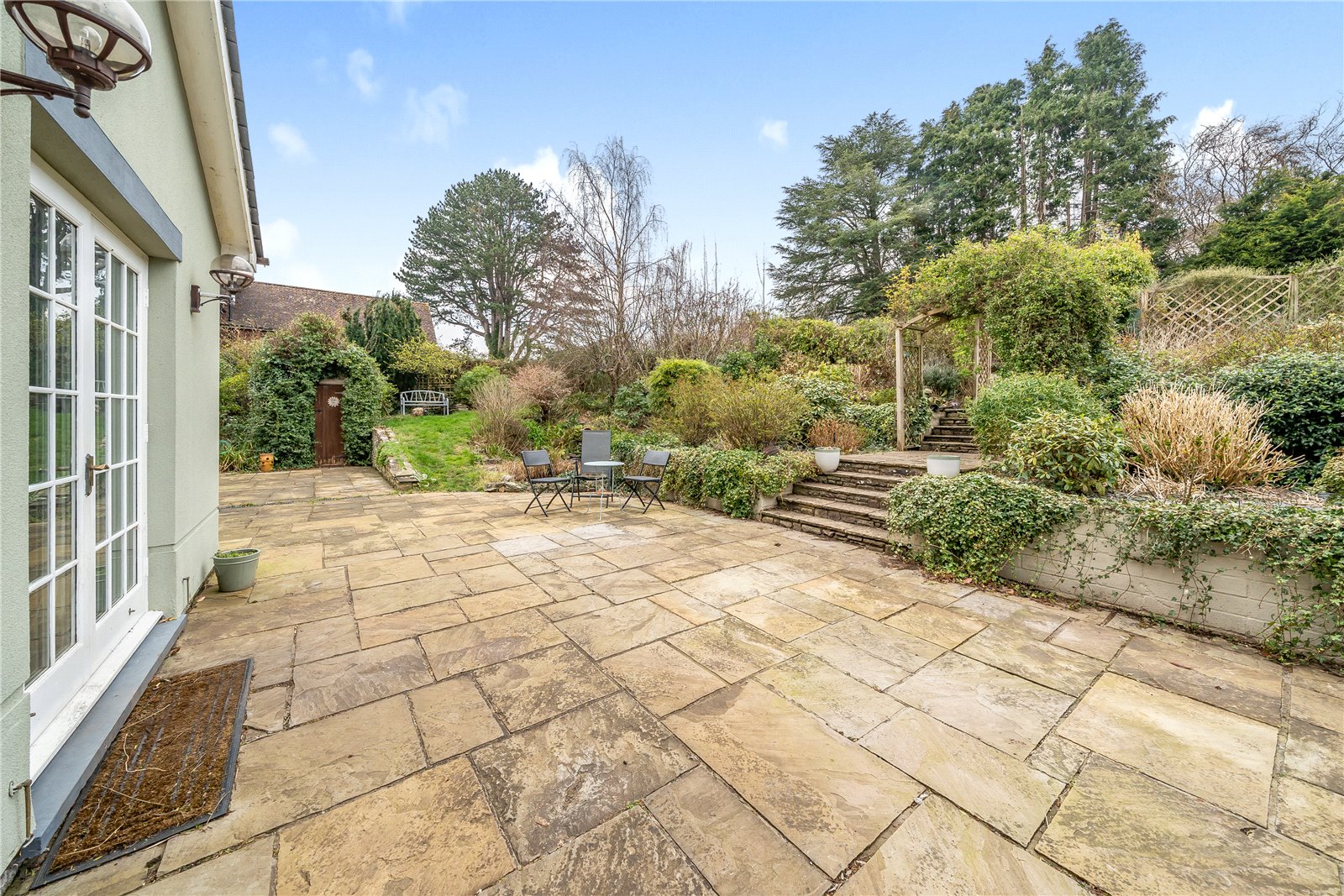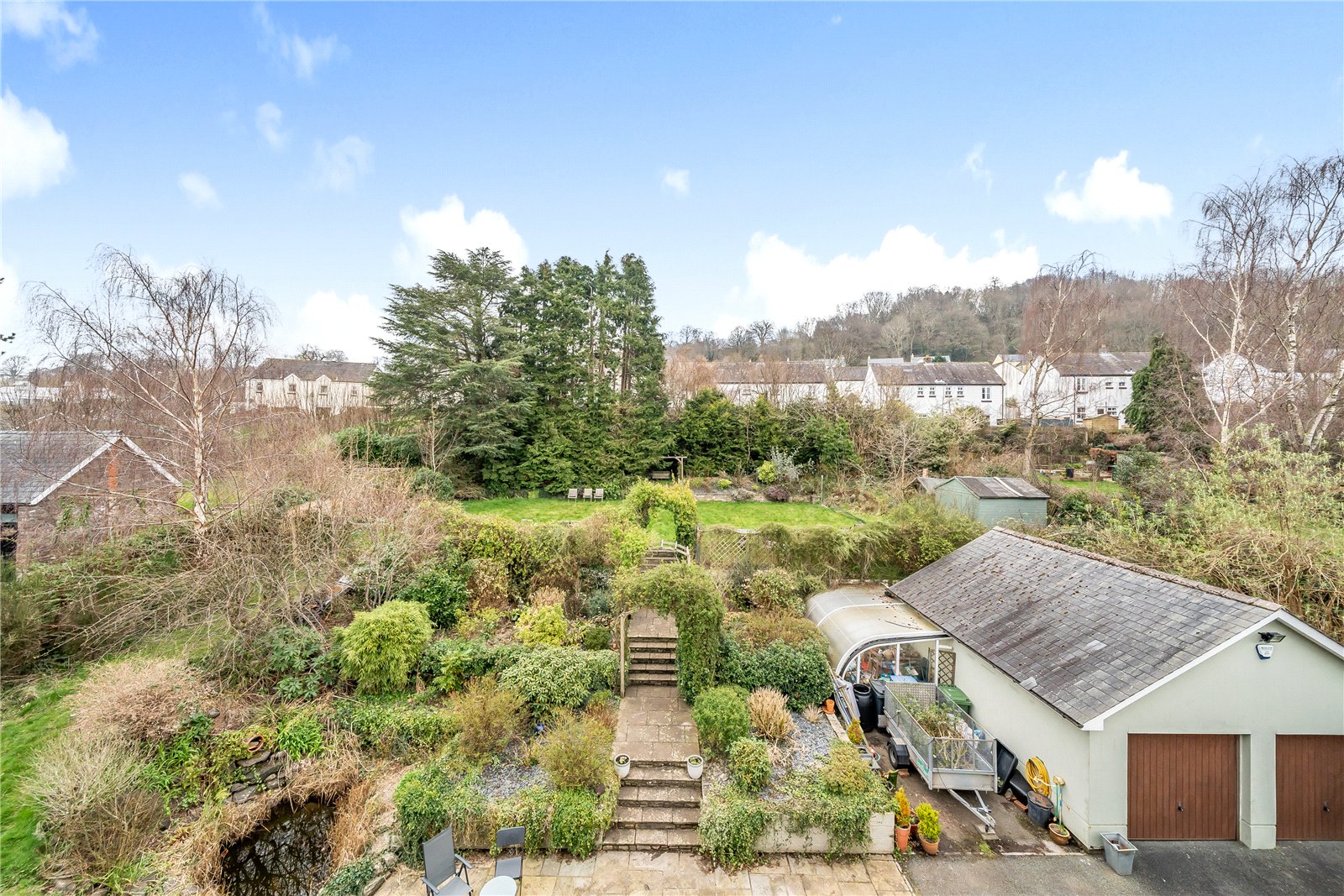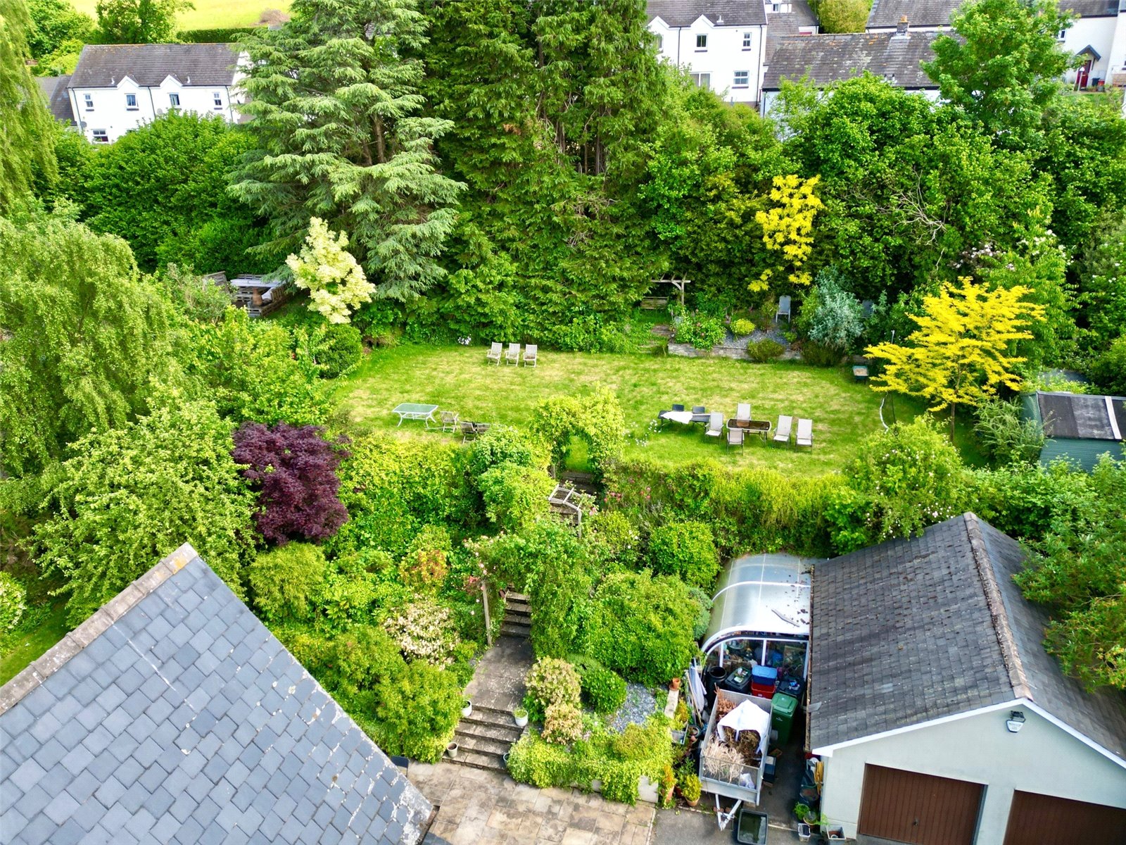 - Large gardens, garage and parking