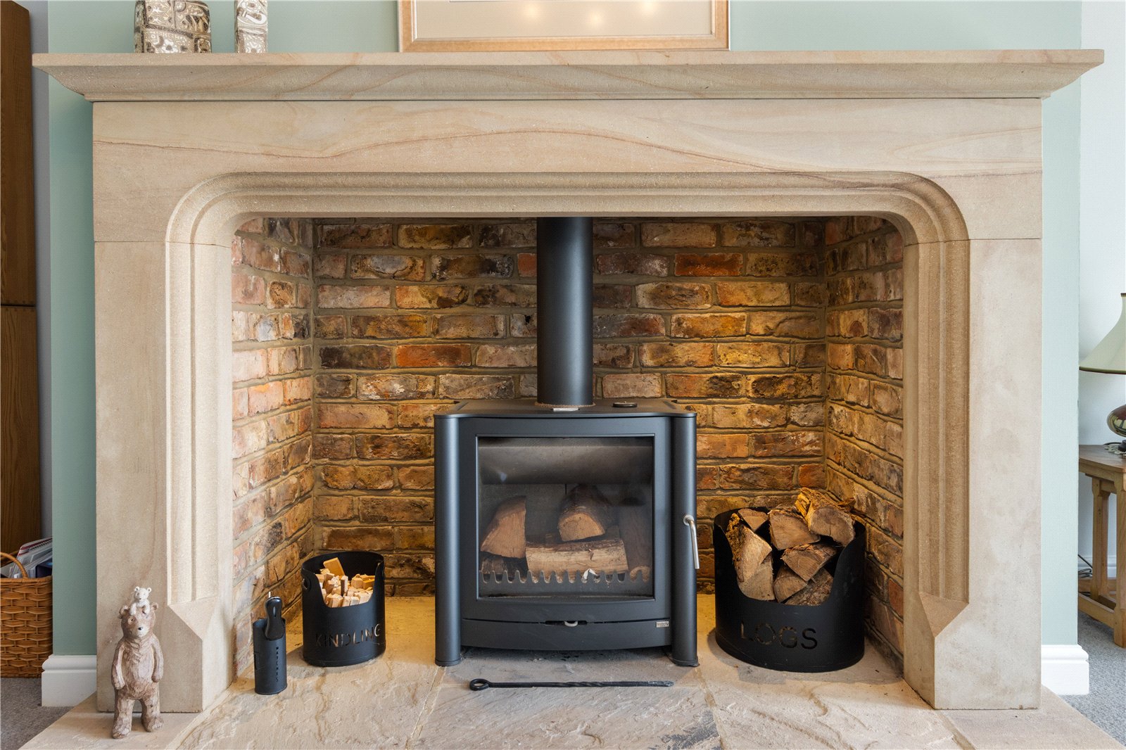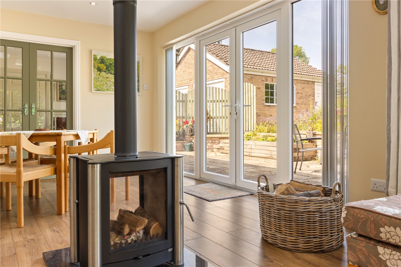 - Stylish Sitting Room With Wood Burner & French Doors