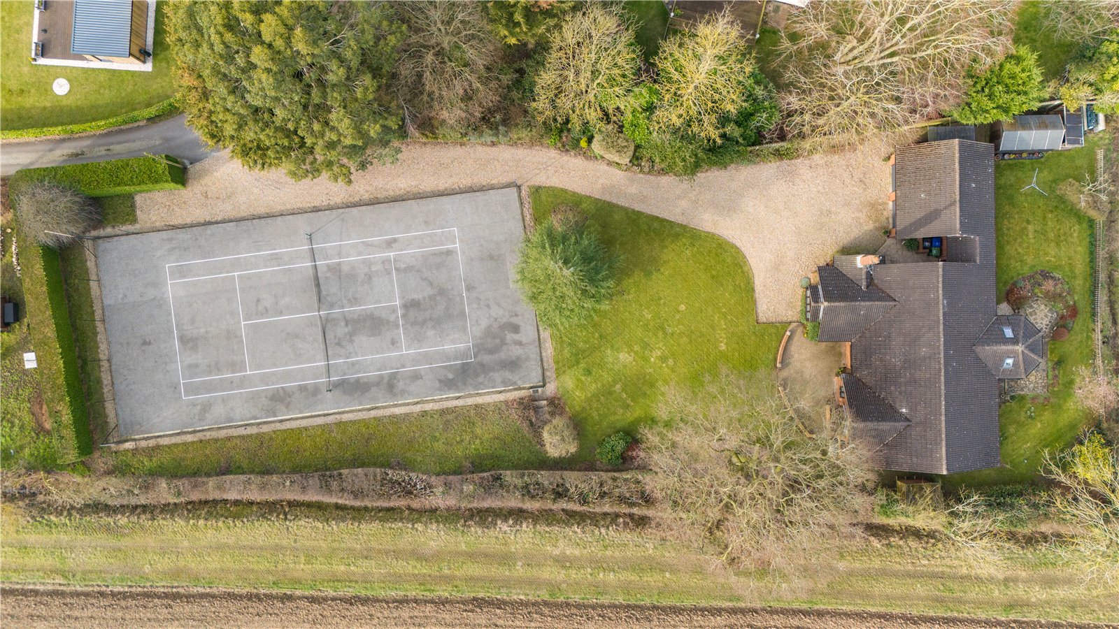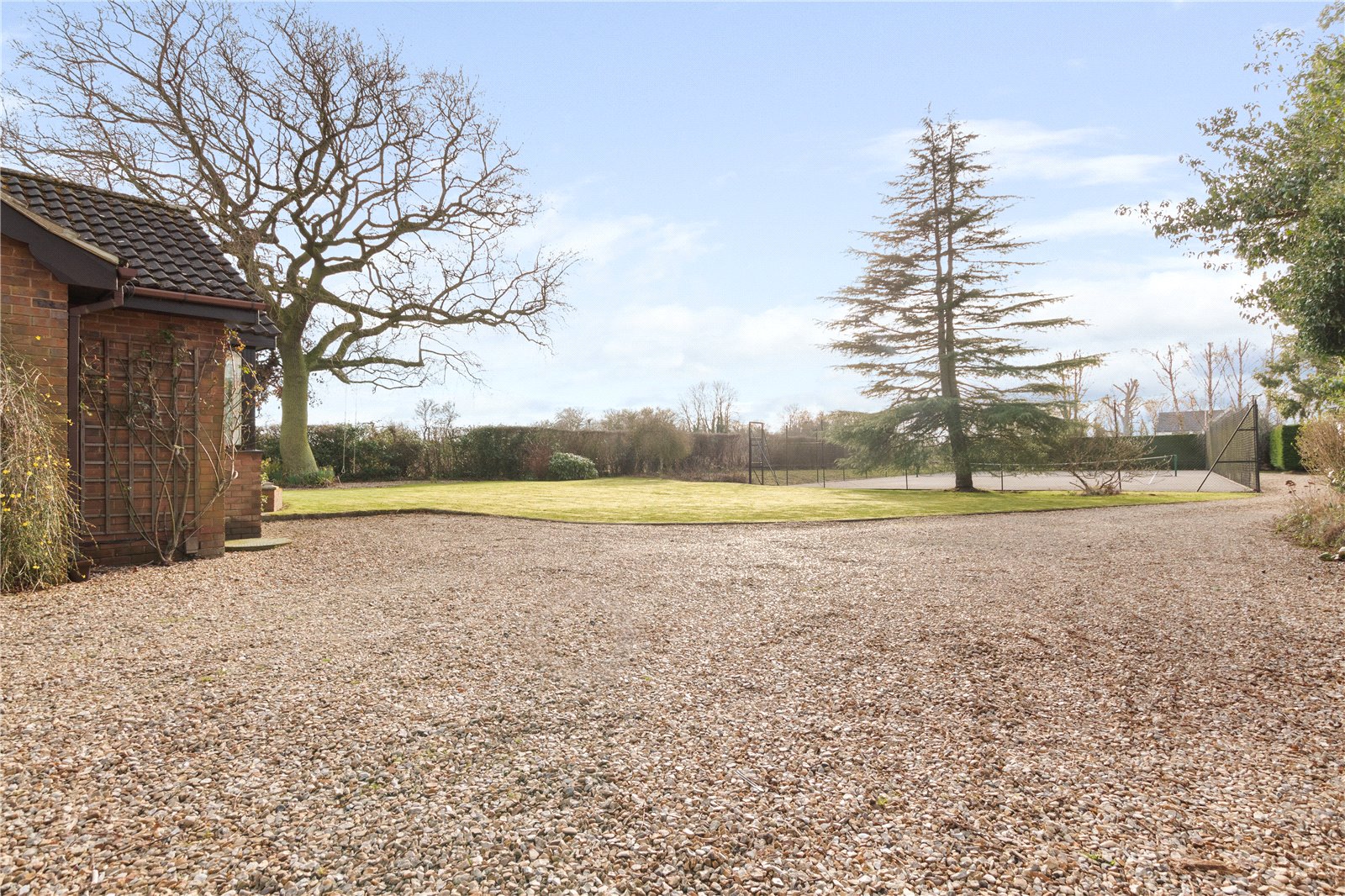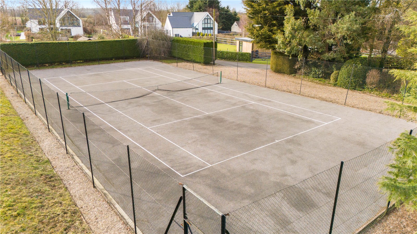This individual four-bedroom detached bungalow sits on a circa three-quarter acre plot, featuring a spacious sitting room, open-plan kitchen/dining area, and a bright sunroom. The generous outdoor space includes a private tennis court and beautifully maintained gardens.