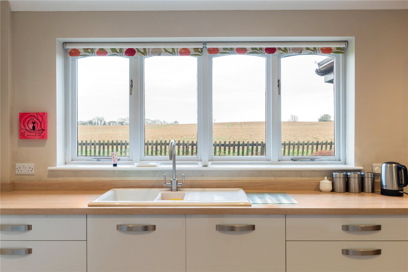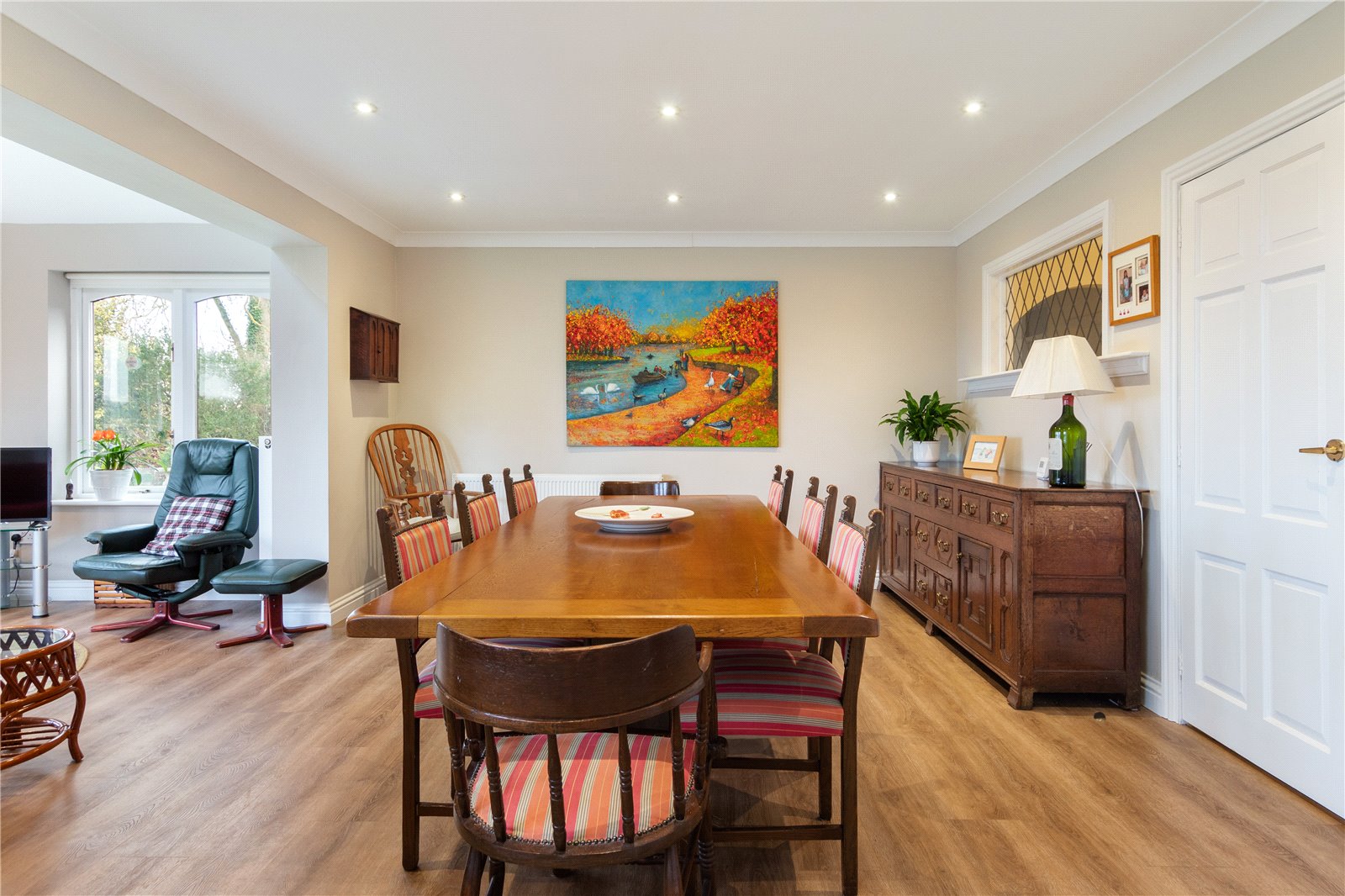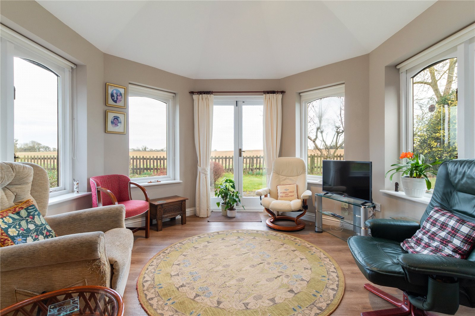 This individual four-bedroom detached bungalow sits on a circa three-quarter acre plot, featuring a spacious sitting room, open-plan kitchen/dining area, and a bright sunroom. The generous outdoor space includes a private tennis court and beautifully maintained gardens.