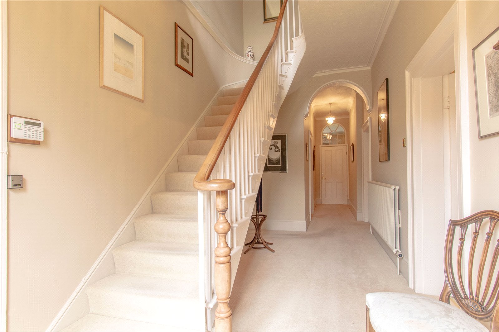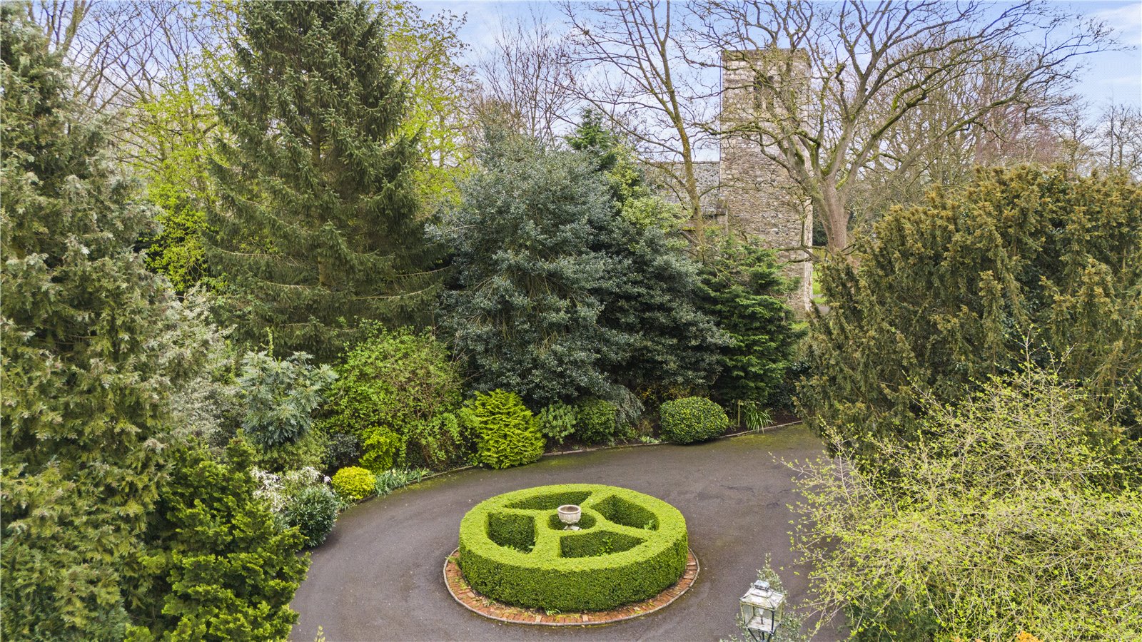 The opposite side garden between the drive to the tennis court drive and the rear garden is separated by high hedging there is an arched opening to give a walkway to the tennis court and there is a timber summer house is nestled within for enjoying the garden in all seasons looking over the lawn with the church in the background. There is also a patio from the informal side entrance porch. Attached to the main house next to the utility accessed externally is a boiler room/store and a separate w.c